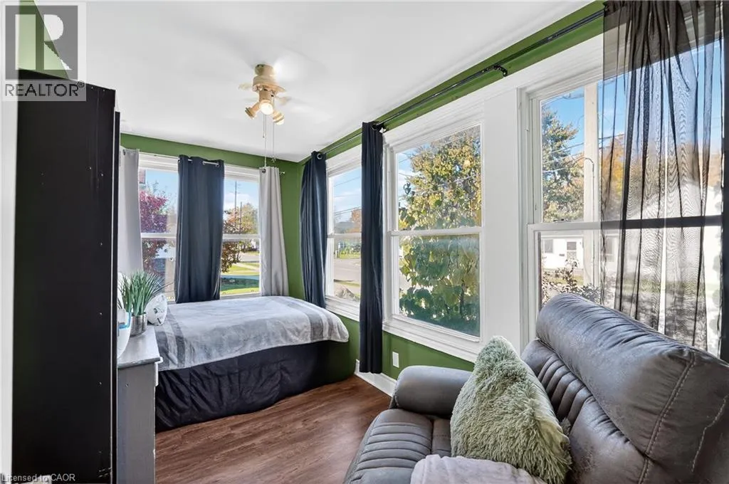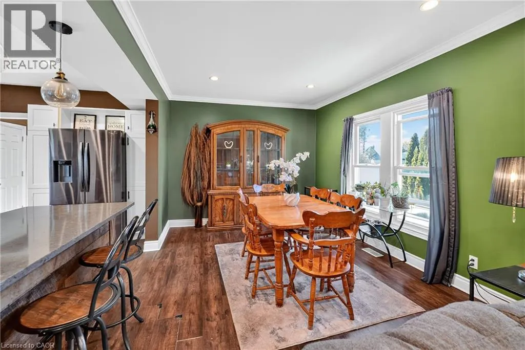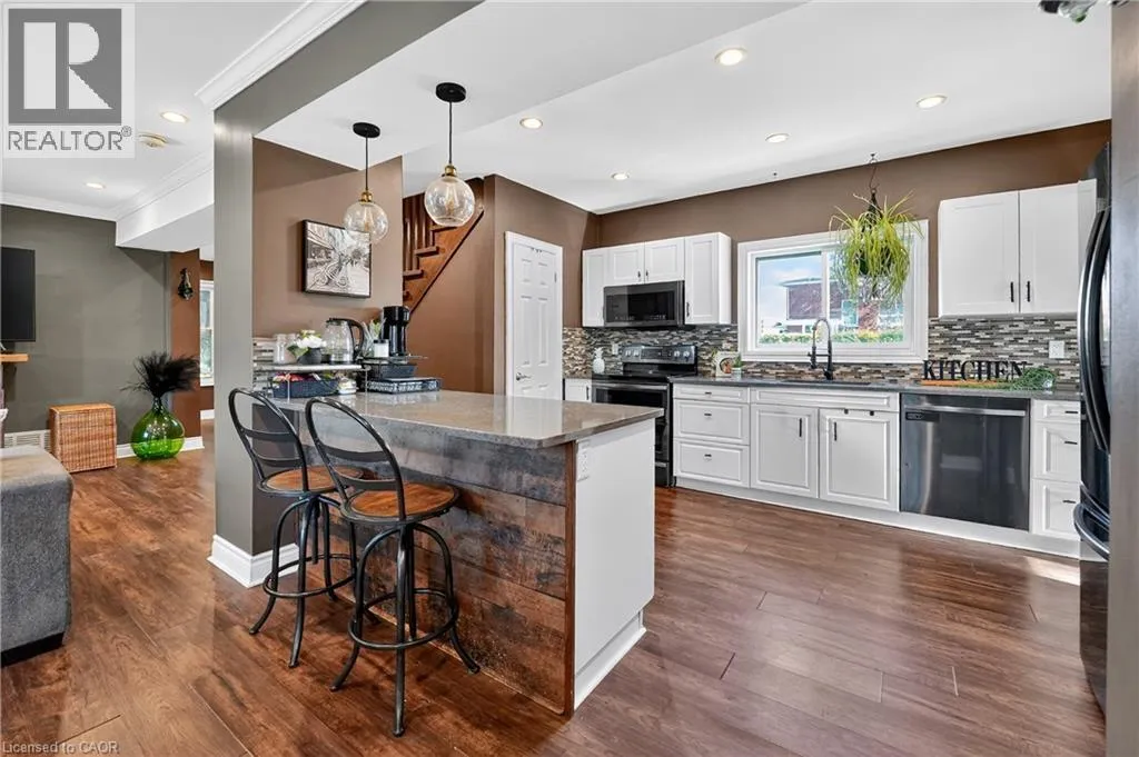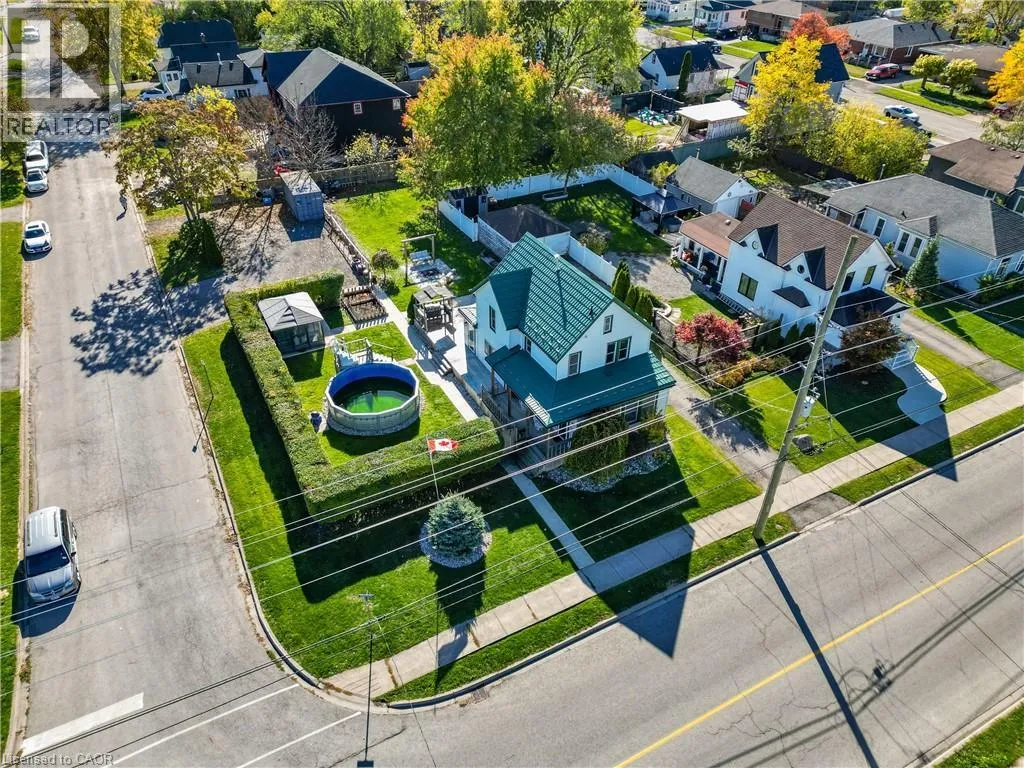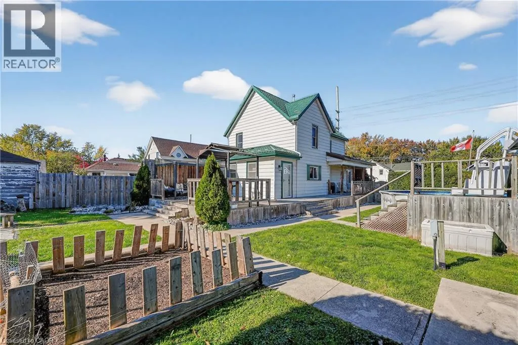 From QEW Niagara, follow signs for Ft Erie/Buffalo, Take Exit 2 for Bertie St/Niagara RR122/Thompson Rd, Left onto Thompson Rd/Niagara 122, Right onto Gilmore Rd. MODERN LIVING, SMALL-TOWN HEART ⦠261 Gilmore Road in Fort Erie sits on a large, L-SHAPED corner property that radiates curb appeal with its classic wrap-around porch and thoughtfully updated interior. RENOVATED in 2021, this 2-storey home strikes the ideal balance between modern convenience and timeless character, offering space for both relaxation and entertaining. Step through the welcoming foyer into a bright, OPEN CONCEPT living and dining area, where pot lights and LVP flooring create a warm and inviting flow. The L-shaped layout maximizes both light and space, leading into a stylish kitchen featuring a peninsula breakfast bar w/stone countertop, sleek black stainless steel appliances, and a large pantry â an everyday chefâs kitchen in both design and practicality. Just off the back MUDROOM, the MF laundry and 3-pc bath add everyday ease, while a main floor den offers flexibility as a third bedroom or home office. Upstairs, find two spacious bedrooms, including a spacious bedroom with LOFT ACCESS and another with a large closet, complemented by a modern 3-pc bath. The lower level provides ample storage, a cellar, and two crawl spaces for utilities. Step outside to your private, fully fenced BACKYARD OASIS, featuring an above-ground pool, hot tub, and hard-top gazebo on a wrap-around deck - perfect for summer evenings under the stars. A flagstone firepit and garden pond complete this SERENE RETREAT. With a U-shaped driveway accommodating up to six vehicles, practicality meets pleasure at every turn. Recent updates include metal roof & metal siding plus a 2021 furnace & A/C and for peace of mind. Ideally located near parks, the library, Fort Erie Racetrack, golf & country clubs, and the Peace Bridge, this home offers the best of small-town living with modern style and unbeatable convenience. CLICK ON MULTIMEDIA for video tour, drone photos, floor plans & more. (id:27476)