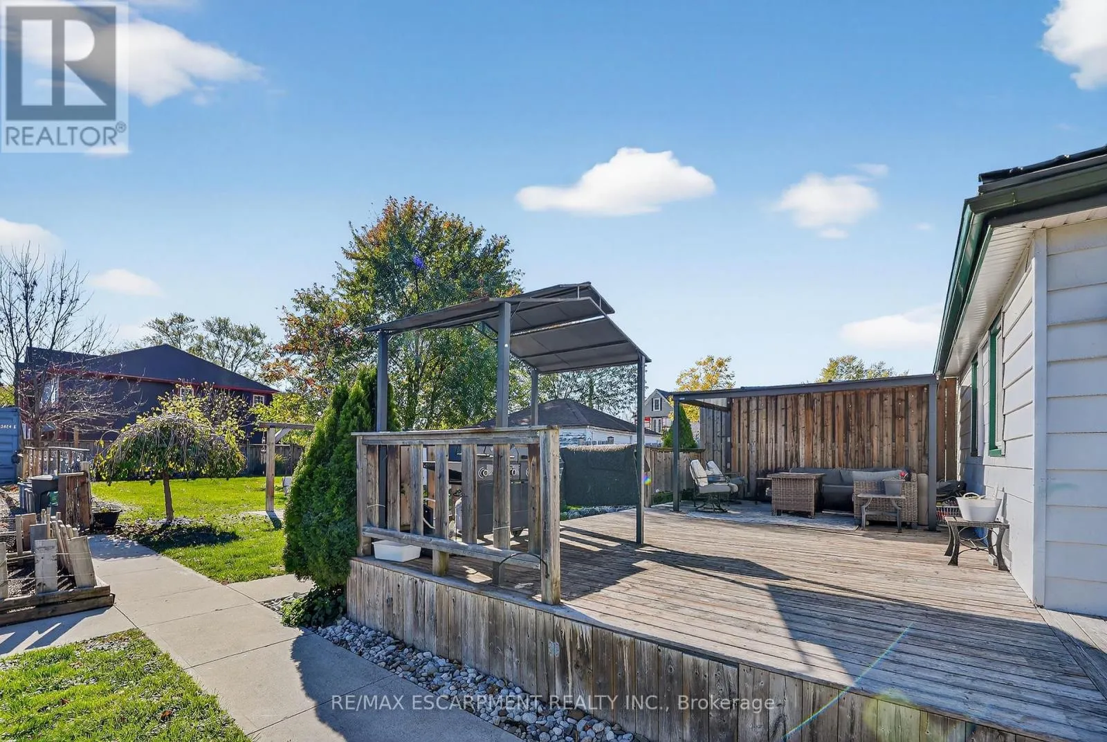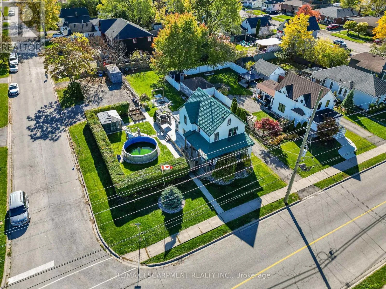 Cross Streets: Central Ave/Gilmore Rd. ** Directions: From QEW Niagara, follow signs for Ft Erie/Buffalo, Take Exit 2 for Bertie St/Niagara RR122/Thompson Rd, Left onto Thompson Rd/Niagara 122, Right onto Gilmore Rd. MODERN LIVING, SMALL-TOWN HEART ... 261 Gilmore Road in Fort Erie sits on a large, L-SHAPED corner property that radiates curb appeal with its classic wrap-around porch and thoughtfully updated interior. RENOVATED in 2021, this 2-storey home strikes the ideal balance between modern convenience and timeless character, offering space for both relaxation and entertaining. Step through the welcoming foyer into a bright, OPEN CONCEPT living and dining area, where pot lights and LVP flooring create a warm and inviting flow. The L-shaped layout maximizes both light and space, leading into a stylish kitchen featuring a peninsula breakfast bar w/stone countertop, sleek black stainless steel appliances, and a large pantry - an everyday chef's kitchen in both design and practicality. Just off the back MUDROOM, the MF laundry and 3-pc bath add everyday ease, while a main floor den offers flexibility as a third bedroom or home office. Upstairs, find two spacious bedrooms, including a spacious bedroom with LOFT ACCESS and another with a large closet, complemented by a modern 3-pc bath. The lower level provides ample storage, a cellar, and two crawl spaces for utilities. Step outside to your private, fully fenced BACKYARD OASIS, featuring an above-ground pool, hot tub, and hard-top gazebo on a wrap-around deck - perfect for summer evenings under the stars. A flagstone firepit and garden pond complete this SERENE RETREAT. With a U-shaped driveway accommodating up to six vehicles, practicality meets pleasure at every turn. Recent updates include metal roof & metal siding plus a 2021 furnace & A/C and for peace of mind. Ideally located near parks, the library, Fort Erie Racetrack, golf & country clubs, and the Peace Bridge, this home offers the best of small-town living with modern style and unbeatable convenience. CLICK ON MULTIMEDIA for video tour, drone photos, floor plans & more. (id:27476)