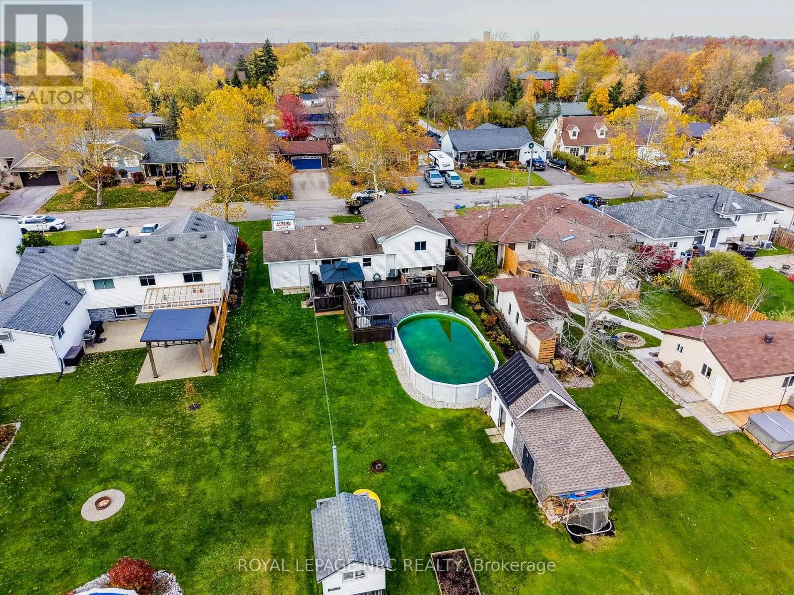 Cross Streets: Near: STEVENSVILLE RD. ** Directions: FOSTER TO CORAL. Welcome to this beautifully renovated four-level side split, perfectly situated on a nearly half-acre lot in the heart of quaint Stevensville. This property offers the best of both worlds - city convenience with a country feel. With full city services, no rear neighbors, a sprawling yard, you'll enjoy privacy and space while remaining just steps from local shops and the Stevensville Conservation Area.The bright, open-concept main floor features a stunning modern kitchen with a large L-shaped island, ideal for cooking and entertaining, and seamlessly flows into the spacious living and dining areas. Enjoy garage access from the main floor. Offering 3+1 bedrooms and 2 full bathrooms (both bathrooms updated and the lower 3 pc has heated floors and a linen closet), this home provides ample space for families or guests. The finished recreation room adds even more living space and is bright with oversized windows, while the lower level includes extra storage + cold cellar and extra rooms for all your needs. Step outside to your backyard oasis with expansive views, complete with a huge deck, relaxing hot tub, and above-ground pool-the perfect place to unwind or host summer gatherings. Located in the charming, quiet and close-knit community of Stevensville, this home is close to the QEW, the new hospital site, parks, and amenities. Experience the perfect balance of country tranquility and city convenience in this move-in ready home. Hot water heater owned. Renovations completed 2023. Check out video tour! (id:27476)