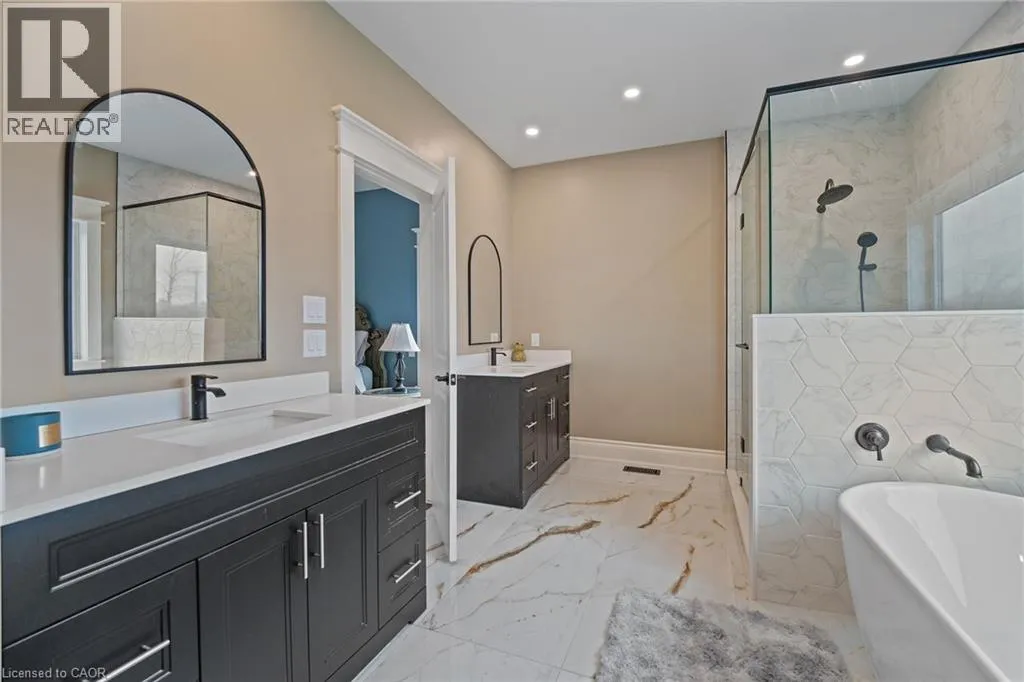 South on Sodom Rd, right on Netherby Rd Modern Country Living on 1 Acre - Just 3 Minutes to the QEW! Welcome to 3809 Netherby Road in Fort Erie - a newly completed (June 2024) custom-built home, offering 2,372 sqft of beautifully designed living space with 3 bedrooms, an office, and 2.5 bathrooms. Soaring 14' ceilings and an airy open-concept layout set the tone, with highlights like a double-door entry, engineered hardwood floors, 7 baseboards, and a stunning floor-to-ceiling stone cooking area. The kitchen features warm cabinetry, leathered granite counters, an undermount sink, and stainless steel appliances. The spacious primary suite includes a walk-in closet and a spa-like 5-piece ensuite with a soaker tub, glass shower, and double sinks. Outside, enjoy a deep, oversized deck, and detached double garage with 14' ceilings. Additional features include on-demand hot water, a 200-amp panel, HRV, A/C, a sump pump, and a fully insulated 8-foot basement with a bathroom rough-in. Serviced by septic, city water, and natural gas. Turnkey, stylish, and set in a peaceful rural location - just minutes to amenities, shopping, and major highways. (id:27476)