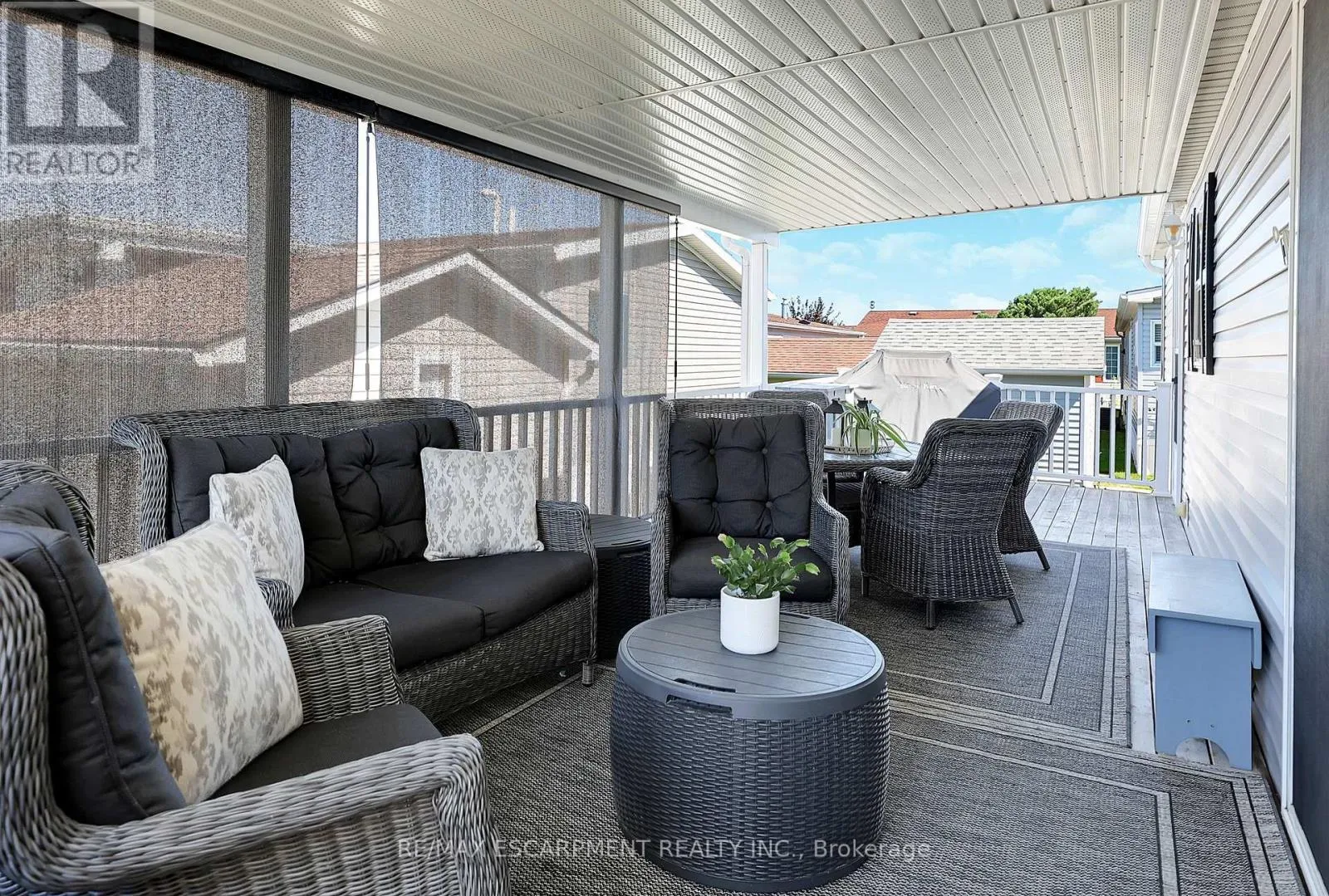 Cross Streets: Netherby Rd/Townline Rd. ** Directions: QEW Niagara - take exit 12, turn right to Netherby Rd, Left onto Townline Rd, on right side - go to Main Gate. CAREFREE LIVING IN EVERY SEASON ... Welcome to 280-3033 Townline Road (Trillium Trail), nestled in the heart of Stevensville's vibrant Black Creek Adult Lifestyle Gated Community, where comfort, convenience, and connection come together. This charming and well-maintained 3-bedroom, 2-bath, 1322 sq ft home offers an ideal blend of space and functionality, perfect for those looking to enjoy both a relaxed and active lifestyle. Step inside and be greeted by a spacious living room anchored by a cozy GAS FIREPLACE, ideal for gathering with friends or enjoying quiet evenings in. The adjacent dining area and well-appointed kitchen with gas stove and built-in microwave make meal prep and entertaining a breeze. Off the kitchen, you'll find a convenient laundry room with stackable washer/dryer and access to the COVERED REAR DECK - perfect for enjoying morning coffee or peaceful afternoons outdoors. Dining area also has access through sliding doors to the beautiful 29' x 9' deck with steps down to the garden shed with extra storage. The PRIMARY SUITE is a true retreat with a WALK-IN CLOSET and a private 3-piece ENSUITE with walk-in shower. A generous second bedroom and a third bedroom (currently used as an office) offer flexibility for guests or hobbies. Additional features include a large linen closet, Furnace (2019), Owned HWT (2016), and a COVERED FRONT PORCH. But what truly sets this home apart is the lifestyle it affords. As part of this welcoming community, you'll enjoy full access to top-tier amenities: indoor/outdoor pools, a sauna, clubhouse, shuffleboard, tennis/pickleball courts, fitness classes, and a dynamic social calendar. Monthly fees: $1093.14 ($850.00 land lease + $243.14 estimated taxes). Ready to downsize without compromise? This is the one! CLICK ON MULTIMEDIA for the full virtual tour, drone footage & more! (id:27476)