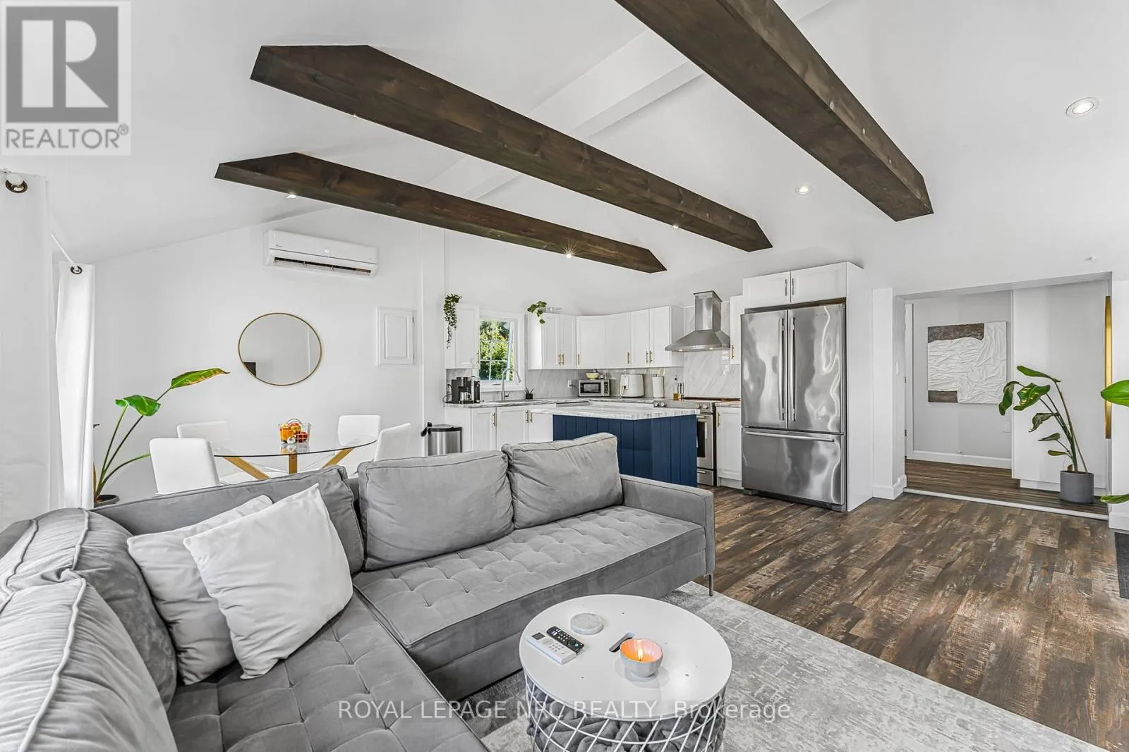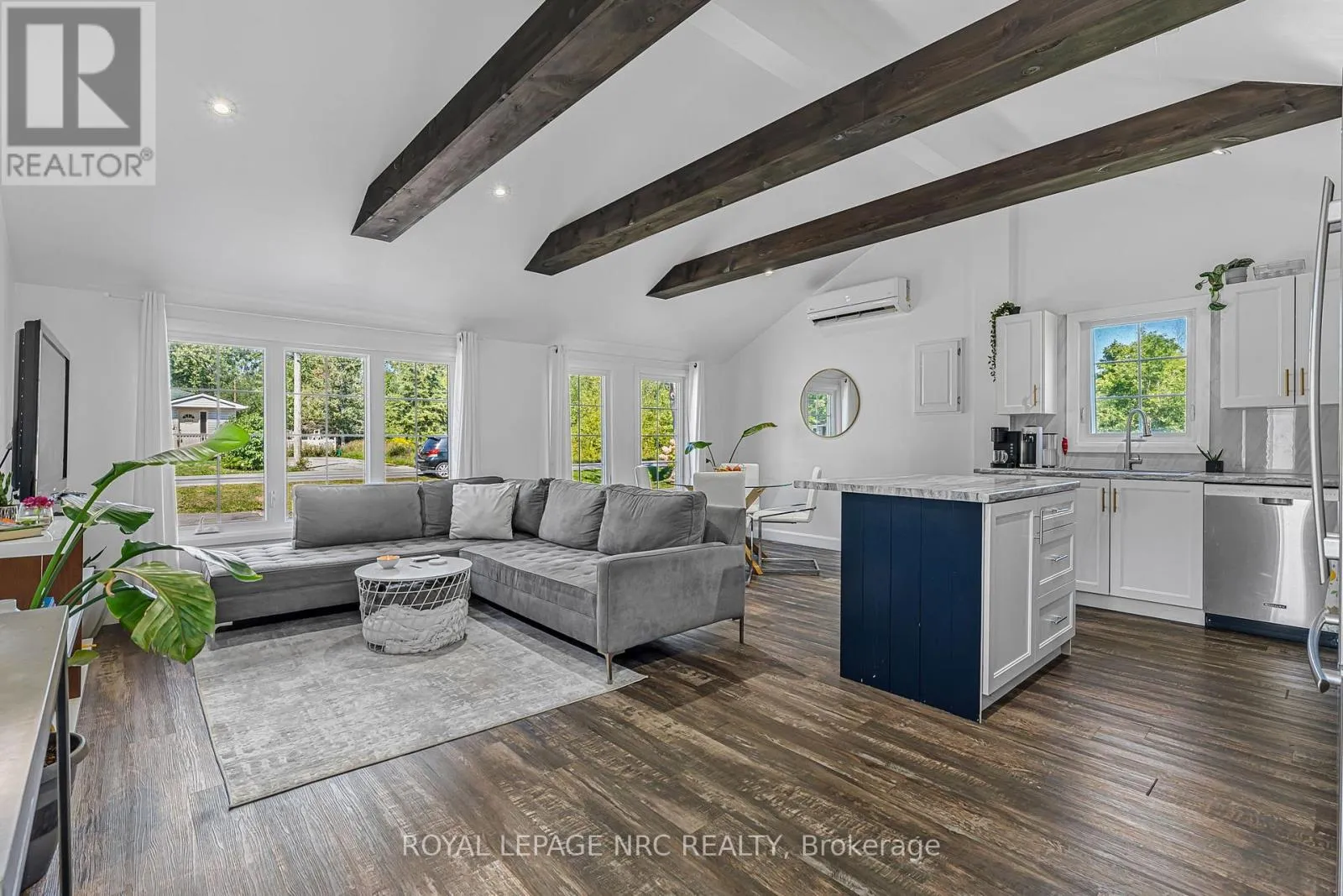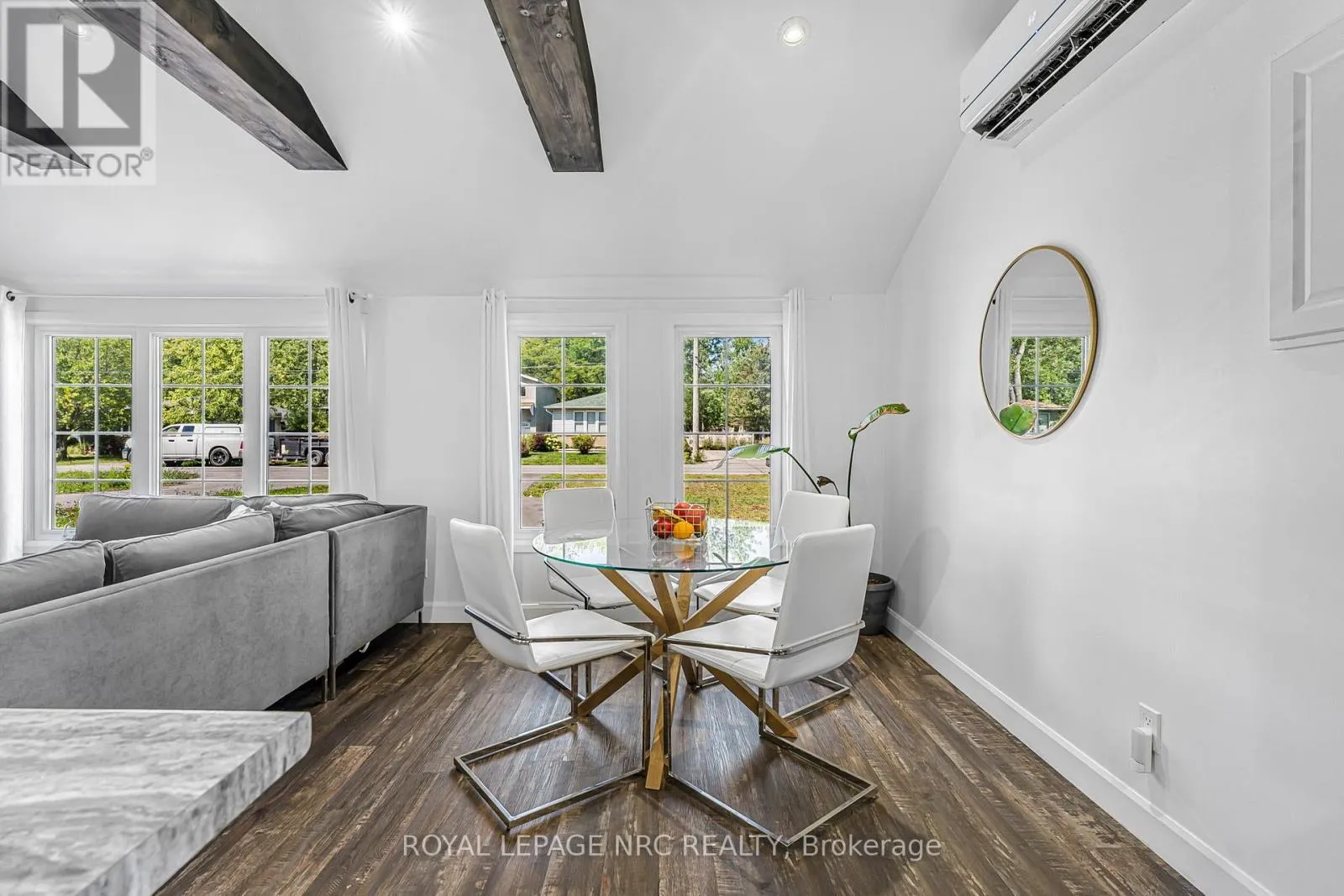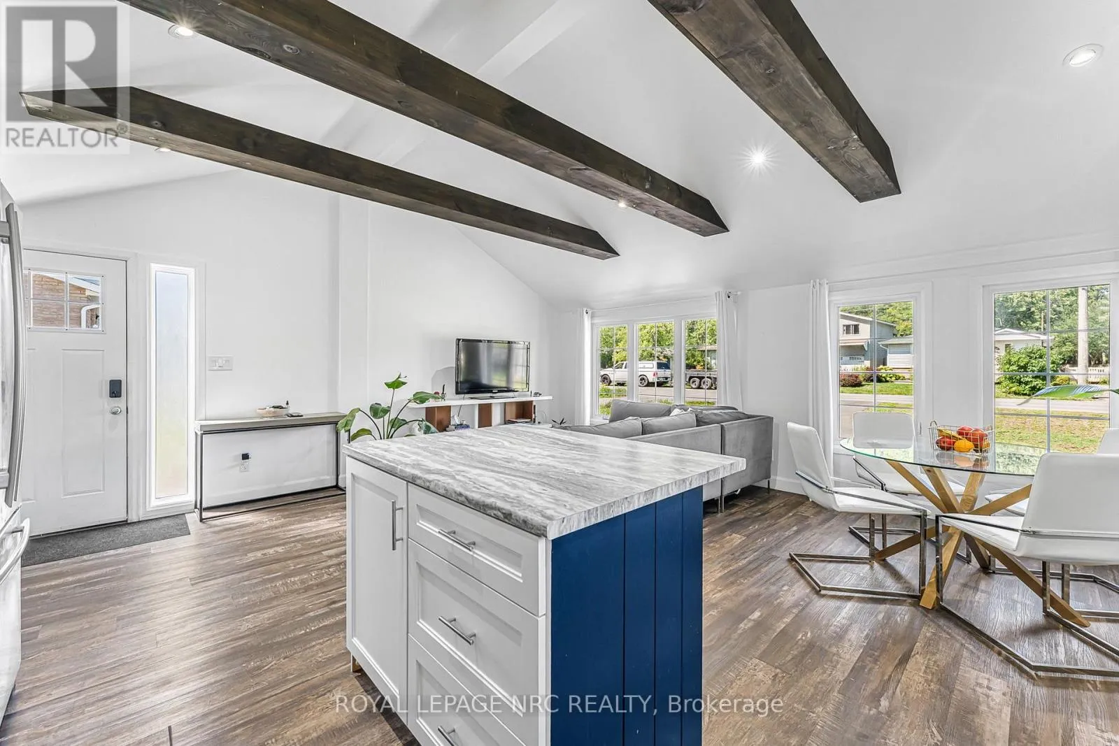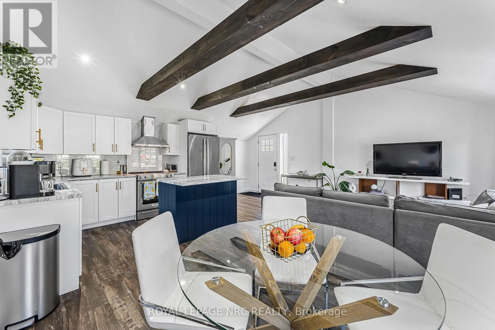 Highway 3 to Helena Street Welcome to 414 Washington, and adorable 2 bedroom bungalow that has been completely and tastefully renovated! Huge open concept kitchen, dining and living room space has high vaulted ceilings and wooden beams, which make it feel open and bright! Lots of cabinetry and a kitchen island, make it very functional and practical for entertaining, complete with newer stainless appliances. The master bedroom has a walk out to a deck with a view overlooking the east facing backyard. Convenient stacked laundry. Beautiful & stylish bathroom. All newer flooring throughout, newer windows and 2 newer Arctic Series high efficient heat pumps provide quiet and efficient heating and cooling! Brand new paved driveway! Added bonus feature is a 12x20 detached former garage with power, which provides lots of opportunity and potential uses. Workshop, workout area, office...or could be turned back into a detached garage. Located on a large 50x181 lot, moments from Fort Erie shopping, the Lake, Crescent Beach, the Friendship Trail an so much more, yet without the busy subdivision feel. An excellent opportunity for a first timer, or down-sizer. Not a thing to do! (id:27476)