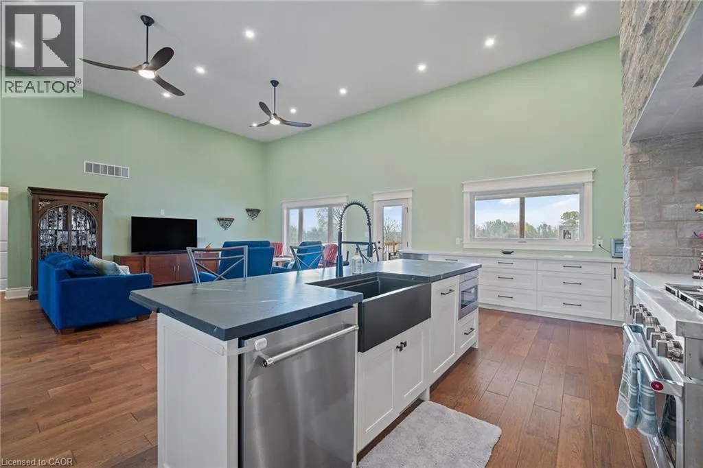 South on Sodom Rd, right on Netherby Rd Modern Country Living on 1 Acre - Just 3 Minutes to the QEW! Welcome to 3809 Netherby Road in Fort Erie - a newly completed (June 2024) custom-built bungalow, offering 2,372 sqft of beautifully designed living space with 3 bedrooms, an office, and 2.5 bathrooms. Soaring 14' ceilings and an airy open-concept layout set the tone, with highlights like a double-door entry, engineered hardwood floors, 7 baseboards, and a stunning floor-to-ceiling stone cooking area. The kitchen features warm cabinetry, leathered granite counters, an undermount sink, a built-in fridge, and stainless steel appliances. The spacious primary suite includes a walk-in closet and a spa-like 5-piece ensuite with a soaker tub, glass shower, and double sinks. Outside, enjoy a deep, oversized deck and a detached double garage with 14' ceilings. Additional features include on-demand hot water, a 200-amp panel, HRV, A/C, a sump pump, and a fully insulated 8-foot basement with a bathroom rough-in. Serviced by septic, city water, and natural gas. Turnkey, stylish, and set in a peaceful rural location - just minutes to amenities, shopping, and major highways. (id:27476)