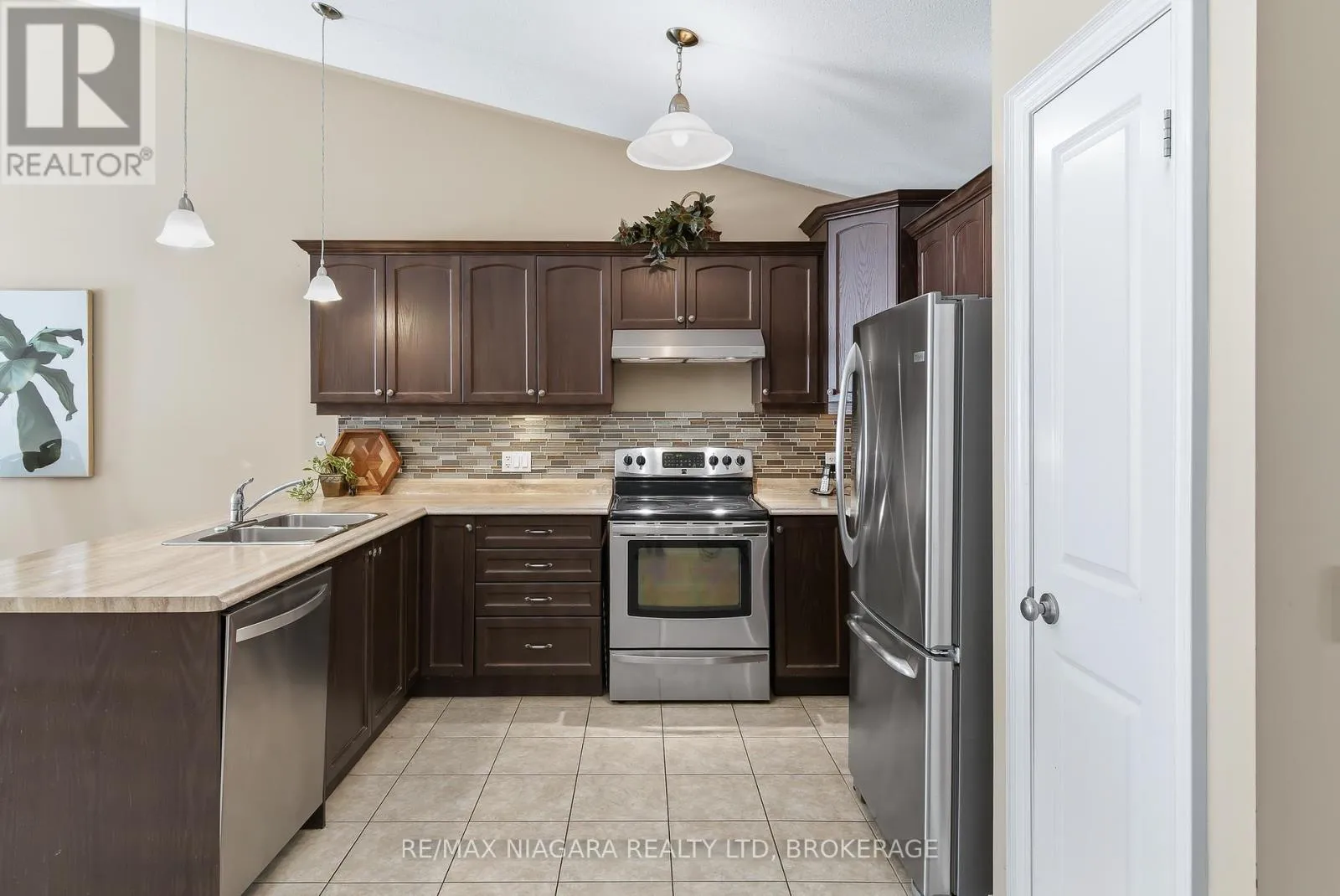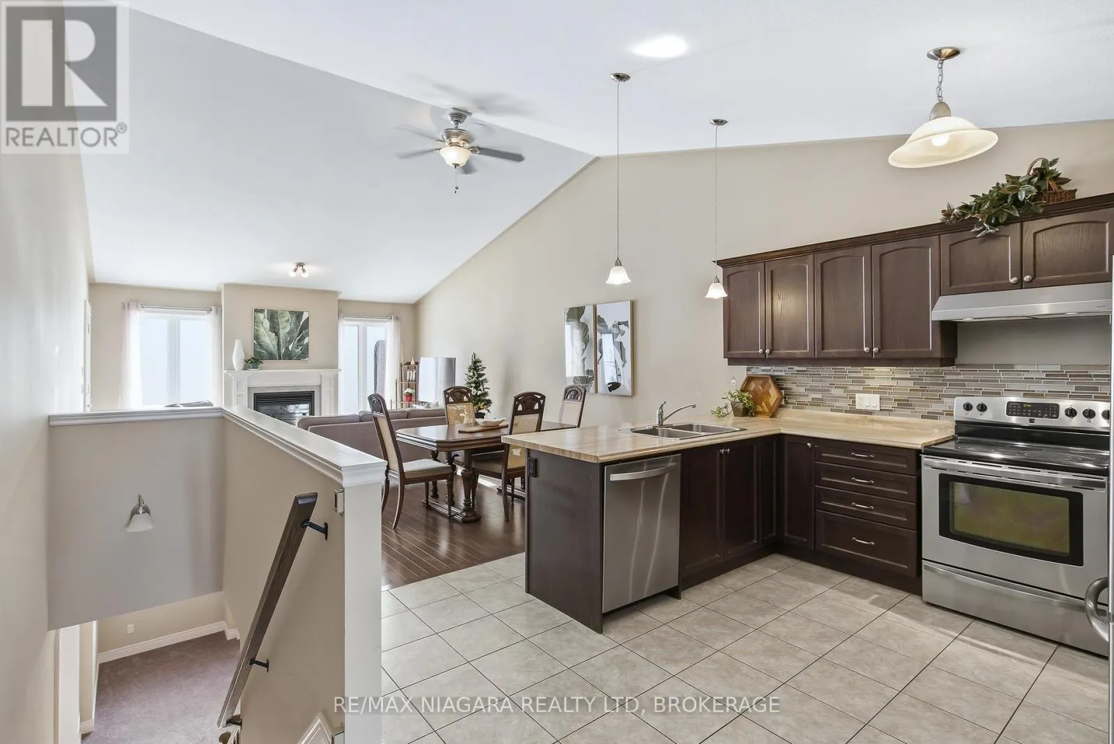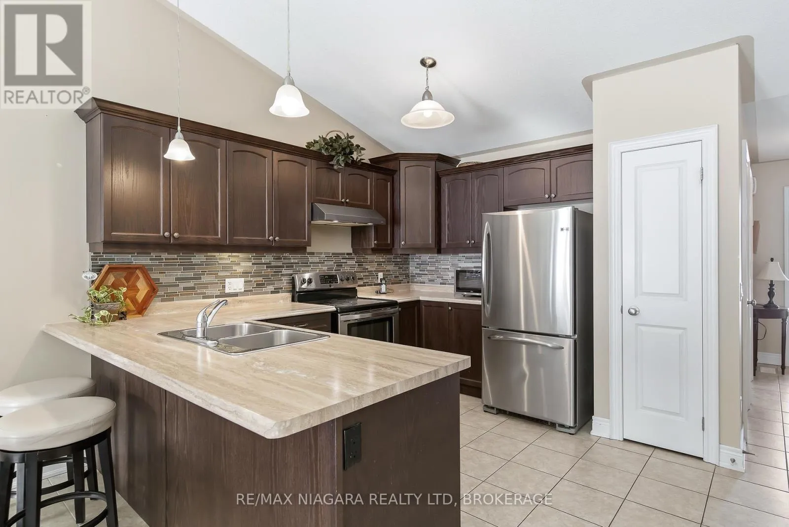 Cross Streets: West Main St and Stevensville Rd. ** Directions: West Main St to Old Mill Rd to Lower Coach Rd. Discover the perfect blend of small-town charm and modern convenience in this stunning 13-year-old, all-brick, freehold townhouse bungalow located in coveted Stevensville. This property offers a sprawling main floor layout, featuring two generous bedrooms, a 4pc bathroom, and an open-concept design that flows seamlessly into a massive great room, complete with soaring cathedral ceilings. The elegant engineered hardwood flooring enhances the inviting atmosphere, while the cozy gas fireplace adds warmth to the living space. With functional amenities like main floor laundry and generous closet space, everyday living is made easy. The versatile lower level boasts a large rec room, french doors into an additional office space, a full bath, and abundant storage options, ensuring room for all your needs. Both levels are equipped with a gas fireplace, creating a comfortable ambiance throughout the home. Step outside to your private backyard retreat with no rear neighbours, where a covered concrete patio awaits, perfect for relaxing or entertaining. Don't miss your chance to call this beautiful property home-nothing to do but move in!! (id:27476)