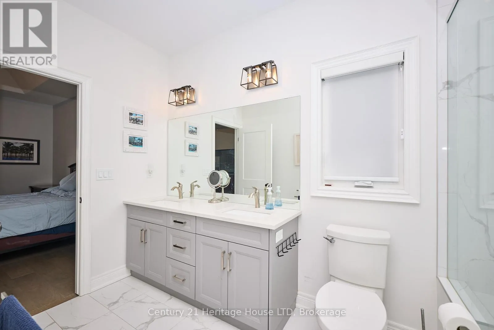 Cross Streets: Dominion Rd & Kraft Rd. ** Directions: From Dominion Rd, head south onto Kettle Court. This thoughtfully customized 1,382 sq. ft. bungalow blends elegance, functionality, and comfort in a quiet Fort Erie cul-de-sac just minutes from the lake and Friendship Trail. From the moment you step inside, you're welcomed by soaring vaulted ceilings in the great room, anchored by a striking feature wall with a built-in fireplace, custom shelving, and a walk-out to the back deck. Floor-to-ceiling windows line the rear wall, flooding the space with natural light and offering tranquil views of the beautifully landscaped backyard. The open-concept kitchen is ideal for both everyday living and entertaining, showcasing stainless steel appliances, quartz countertops, a built-in mini fridge, and ample cupboard space. Walk out to the expansive composite deck - partially covered for rainy days, with an open section for sun lovers. The backyard is fully fenced and includes a 1-year-old large 12-ft hot-water swim spa, garden shed, and armour stone lining the property for added charm. The spacious primary suite features a stunning ensuite bath with a spa-like feel and double vanity, and convenient access to the adjacent laundry area. Flooring throughout is luxury vinyl flooring, and pot lighting enhances the modern, airy atmosphere. The recently renovated lower level offers even more space, with a large rec room, a full bath, and two additional bedrooms - all with egress windows and large closets. A double-car garage and generous driveway complete this exceptional offering. Located minutes from uptown Fort Erie amenities, waterfront trails, and the QEW, this home offers peaceful living without sacrificing convenience. A must-see for those seeking a turnkey property with refined finishes and thoughtful design throughout. See listing agent for a list of improvements completed in 2024. (id:27476)