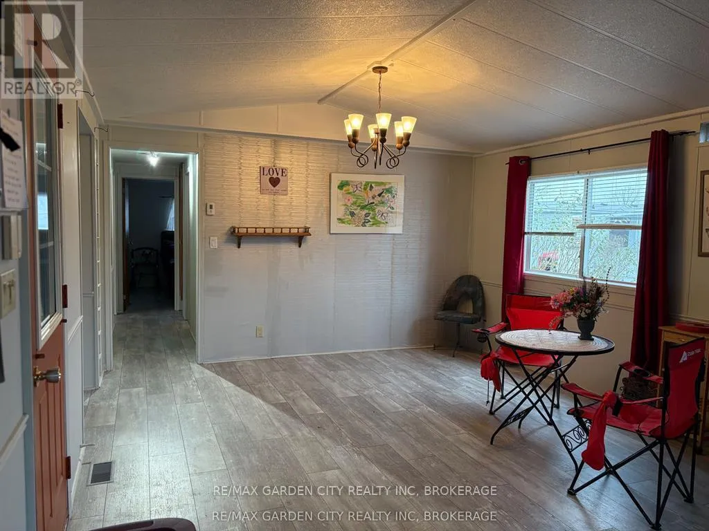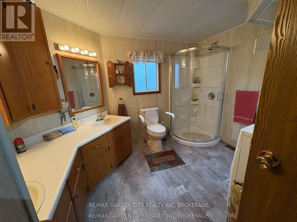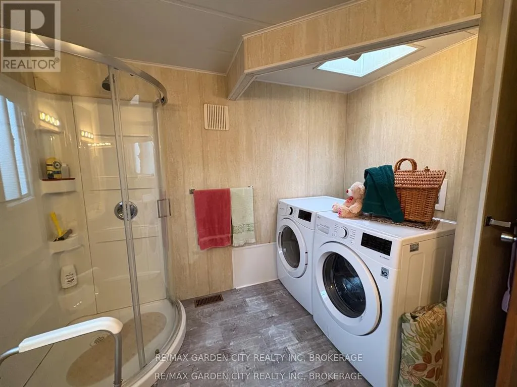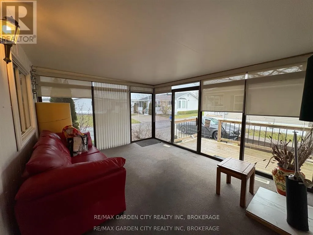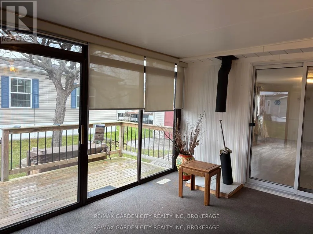 Cross Streets: Netherby Road. ** Directions: Netherby to Townline. Corner unit bungalow in Black Creek adult living community. One bdrm, one bath and sun room. Open concept kitchen/dining area. Spacious living room. Bedroom has built-in closets.3 piece bath with sky light. Laundry area with washer & dryer. Cozy sun room with floor to ceiling glass to enjoy the morning sun. Double car interlock driveway and garden shed with hydro. Experience a unique lifestyle with community living that offers a fantastic club house with indoor and outdoor pools, sauna, shuffle board, tennis courts and weekly activities: Tai Chi, water aerobic, dancing classes, bingo, etc. Land lease and property tax paid monthly ($825 land lease /$112.56 property tax). Also available for rent. (id:27476)