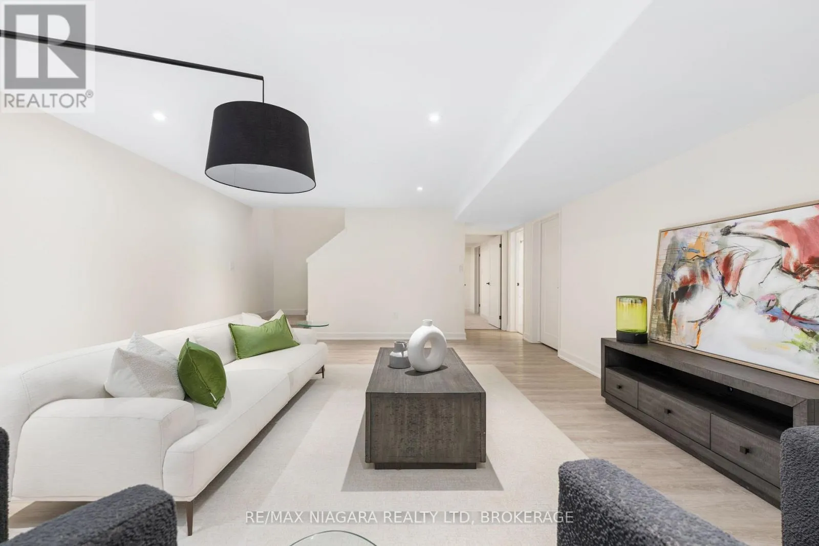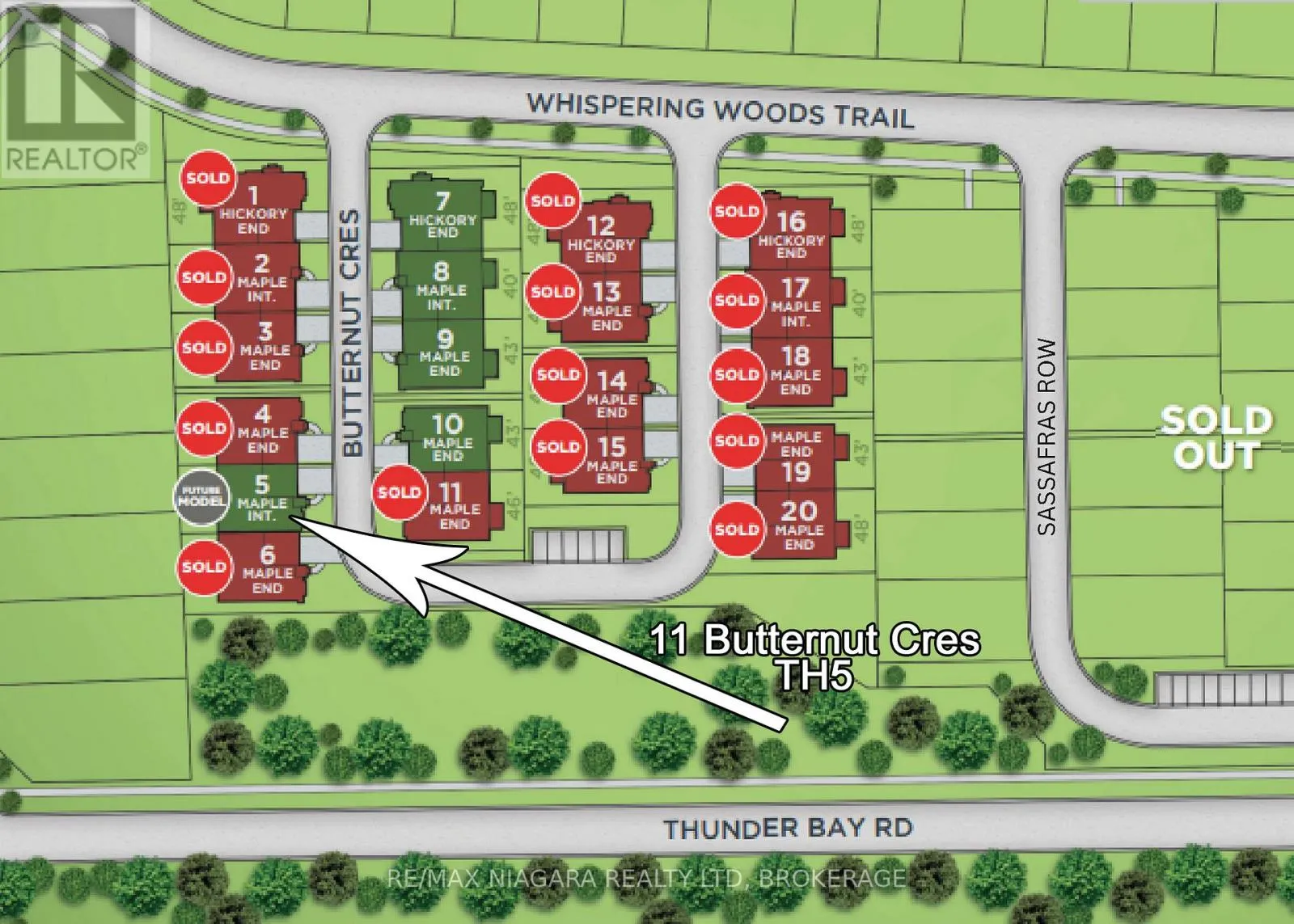 Cross Streets: Whispering Woods Trail. ** Directions: Prospect Pt Rd N to Whispering Woods Trail. The Oaks at Six Mile Creek in Ridgeway is one of Niagara Peninsula's most sought-after adult-oriented communities. Nestled against forested conservation lands, the Oaks by Blythwood Homes development presents a rare opportunity to enjoy a gracious and fulfilling lifestyle. This Maple Interior freehold townhome with 2205 sq ft of finished living space has 3 bedrooms, 3 bathrooms and offers bright open spaces for entertaining and relaxing. Luxurious features and finishes include 10ft vaulted ceilings, great room fireplace, a primary bedroom with ensuite and walk-in closet, a kitchen island with quartz counters and a 3-seat breakfast bar, and patio doors to the covered deck. The finished basement allows for extra guest space with a rec room, bedroom with a walk-in closet, 4pc bathroom and a utility/storage room. Exterior features include lush plantings on the front and rear yards with privacy screen, fully irrigated front lawn and flower beds, fully sodded lots in the front and rear, a poured concrete walkway at the front and paver stone double-wide driveway leading to the 2-car garage. The Townhomes at the Oaks are condominiums, meaning that living here will give you freedom from yard maintenance, irrigation, snow removal and the ability to travel without worry about what's happening to your home. It's a short walk to the shores of Lake Erie, or historic downtown Ridgeways shops, restaurants and services by way of the Friendship Trail and a couple minute drive to Crystal Beach's sand, shops and restaurants. (id:27476)