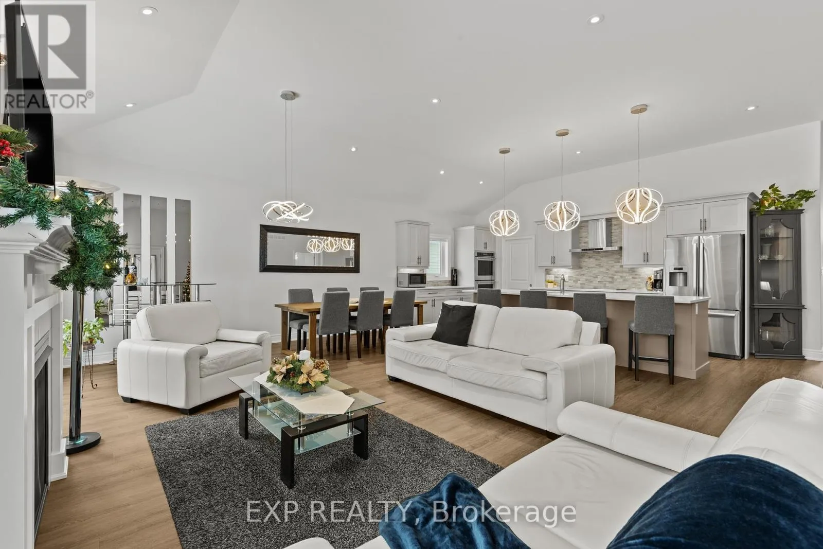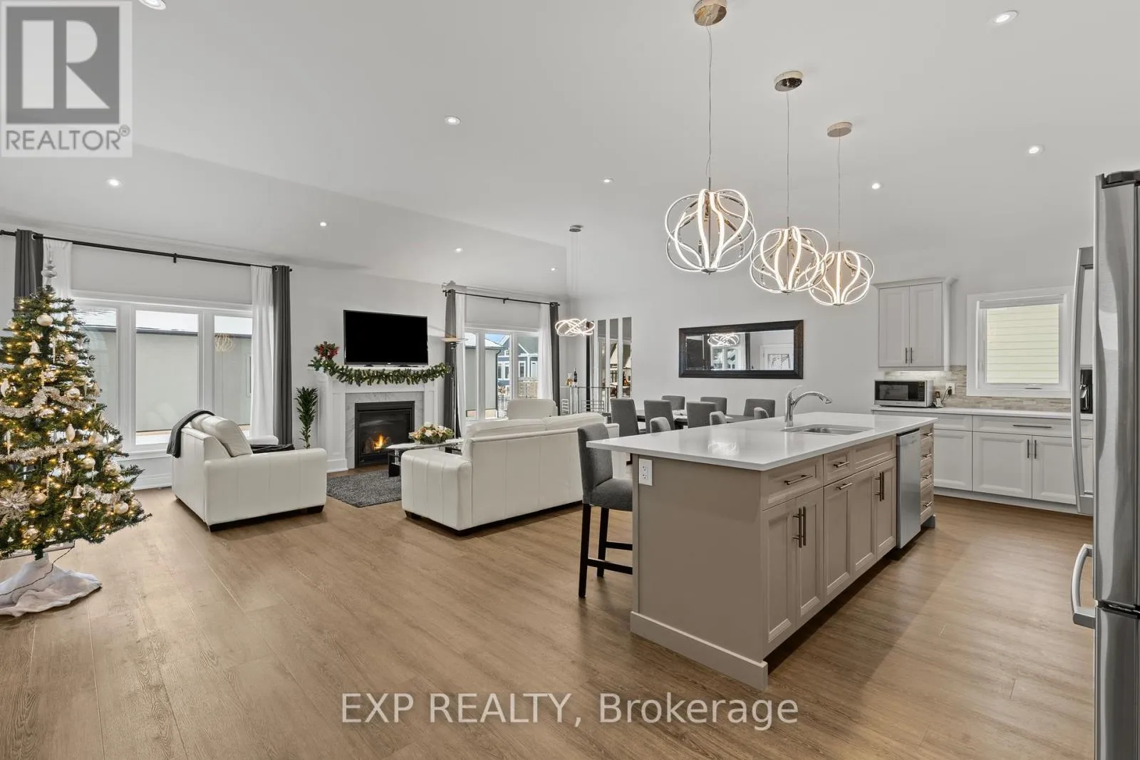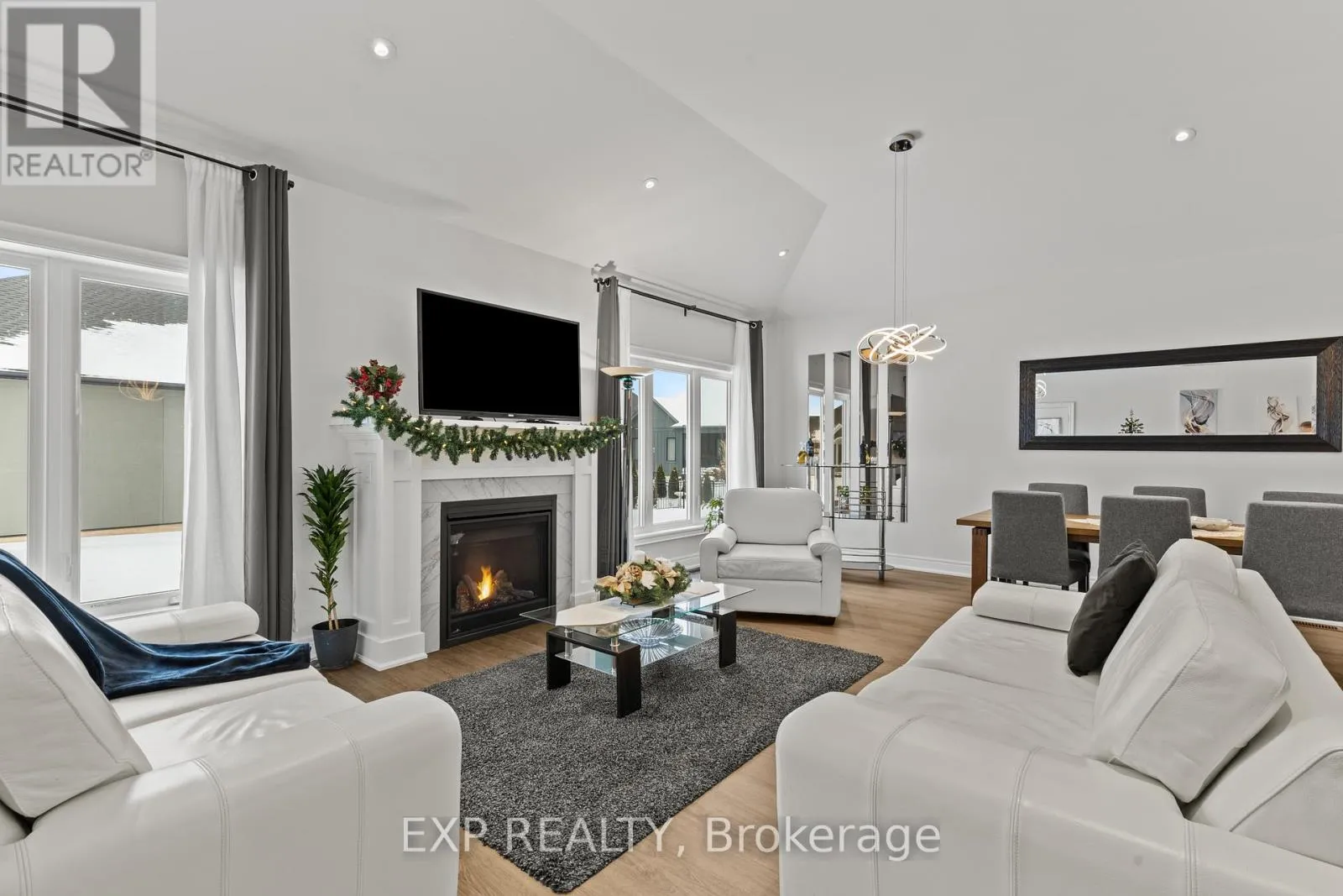Cross Streets: Prospect Point Road N. ** Directions: From Gorham Road turn left onto Dominion Road, then turn right onto Prospect Point Road and left onto Whispering Woods Trail. Prepare to fall in love with this exceptional luxury bungalow in one of Ridgeway's most prestigious neighbourhoods. Featuring a 98-foot-wide frontage, two-car garage with double-wide driveway, and over 3,000 sqft of finished living space, this home offers outstanding curb appeal, privacy, and presence rarely found in today's market. Step inside to soaring 11-foot ceilings, an extra-wide hallway, refined craftsmanship, and elegant natural tones, creating a bright, sophisticated, and welcoming atmosphere. The sun-filled open-concept living room, centered around a stylish gas fireplace, opens into a refined dining area and flows seamlessly to the covered porch, perfect for entertaining, relaxing evenings, or enjoying your morning coffee. The gorgeous kitchen truly impressive, featuring high-end stainless-steel appliances, quartz countertops, spacious island, built-in double oven, generous cabinetry, and a walk-in pantry. The primary suite is a serene retreat with 9-foot ceilings, plush carpeting, a walk-in closet, and spa-like ensuite with soaker tub, custom design walk-in shower, and double vanity with quartz finishes.The second bedroom with an adjoining bathroom, completes this thoughtfully designed main level. The main-floor laundry provides direct access to the attached double-car garage. The fully finished lower level is designed as a complete in-law suite with a separate entrance and could easily generate income. It features a spacious open-concept family room, modern kitchen with quartz countertops and island, ample storage, two generous bedrooms, dining area, and a stylish 4-piece bathroom. Large egress windows bring in abundant natural light, making the space bright, welcoming, and ideal for extended family, guests, or income potential. Set in a safe, upscale community within walking distance to shops and Ridgeway's charming downtown, and just minutes from beaches, trails, and parks. This home offers elegance, space, and effortless luxury living at its finest. (id:27476)