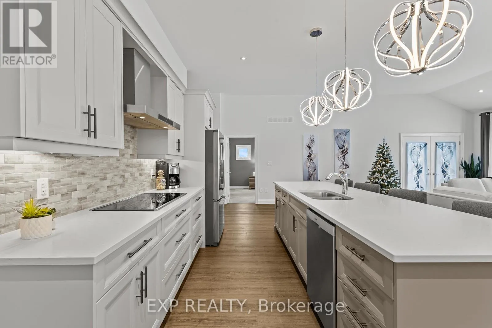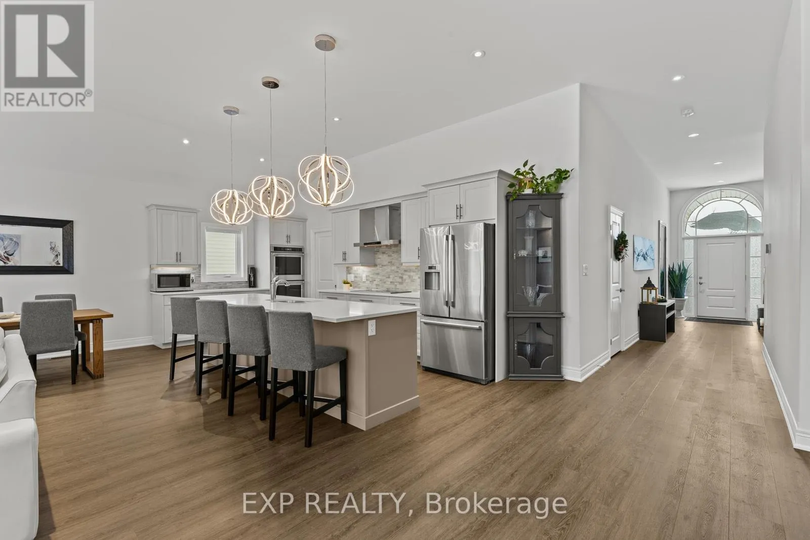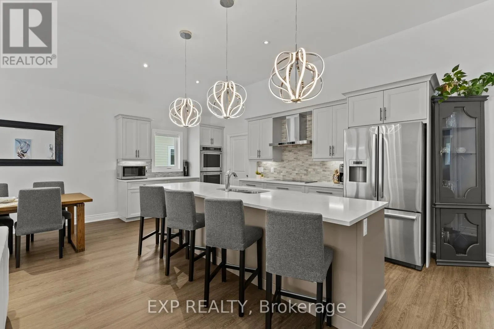 Cross Streets: Prospect Point Road N. ** Directions: From Gorham Road turn left onto Dominion Road, then turn right onto Prospect Point Road and left onto Whispering Woods Trail. Prepare to fall in love with this exceptional luxury bungalow in one of Ridgeway's most prestigious neighbourhoods. Featuring a 98-foot-wide frontage, two-car garage with double-wide driveway, and over 3,000 sqft of finished living space, this home offers outstanding curb appeal, privacy, and presence rarely found in today's market. Step inside to soaring 11-foot ceilings, an extra-wide hallway, refined craftsmanship, and elegant natural tones, creating a bright, sophisticated, and welcoming atmosphere. The sun-filled open-concept living room, centered around a stylish gas fireplace, opens into a refined dining area and flows seamlessly to the covered porch, perfect for entertaining, relaxing evenings, or enjoying your morning coffee. The gorgeous kitchen truly impressive, featuring high-end stainless-steel appliances, quartz countertops, spacious island, built-in double oven, generous cabinetry, and a walk-in pantry. The primary suite is a serene retreat with 9-foot ceilings, plush carpeting, a walk-in closet, and spa-like ensuite with soaker tub, custom design walk-in shower, and double vanity with quartz finishes.The second bedroom with an adjoining bathroom, completes this thoughtfully designed main level. The main-floor laundry provides direct access to the attached double-car garage. The fully finished lower level is designed as a complete in-law suite with a separate entrance and could easily generate income. It features a spacious open-concept family room, modern kitchen with quartz countertops and island, ample storage, two generous bedrooms, dining area, and a stylish 4-piece bathroom. Large egress windows bring in abundant natural light, making the space bright, welcoming, and ideal for extended family, guests, or income potential. Set in a safe, upscale community within walking distance to shops and Ridgeway's charming downtown, and just minutes from beaches, trails, and parks. This home offers elegance, space, and effortless luxury living at its finest. (id:27476)