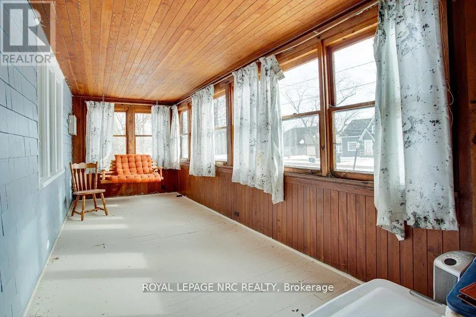 Ridge Rd to Thunder Bay Rd. Burleigh Rd N to Young Ave Classic bungalow cottage in the Thunder Bay Area of Ridgeway, only moments away from Lake Erie, Bernard Beach and Crystal Beach! This property has been owned and enjoyed by the same family for many years. Currently set up with 2 bedrooms and 1 bath, although the 1576 square footage (including porches) allow for changes to that. Loads of character for anyone searching for that cottage vibe. Loads of original wood work throughout the interior, cedar shake exterior and the highlight, which is a stone mantle/chimney, which would be ideal for a gas fireplace. The house will require work, although it has a good roof and what appears to be a solid foundation. Although it has been lived in year round for years, it is best described as semi-winterized as it would require a better heating system (currently heated with a free standing gas stove) and improved insulation, windows, etc. Lovely front porch offers awesome potential. Additionally, the 186 lot offers not 1, but 2 severance opportunities to create separate building lots. Buyer to satisfy themselves with the Town of Fort Erie regarding severance process. Detached garage will also require some work but appears to be repairable. This is an awesome opportunity for a contractor, builder, or anyone interested in having a charming home with lots of possibilities. (id:27476)