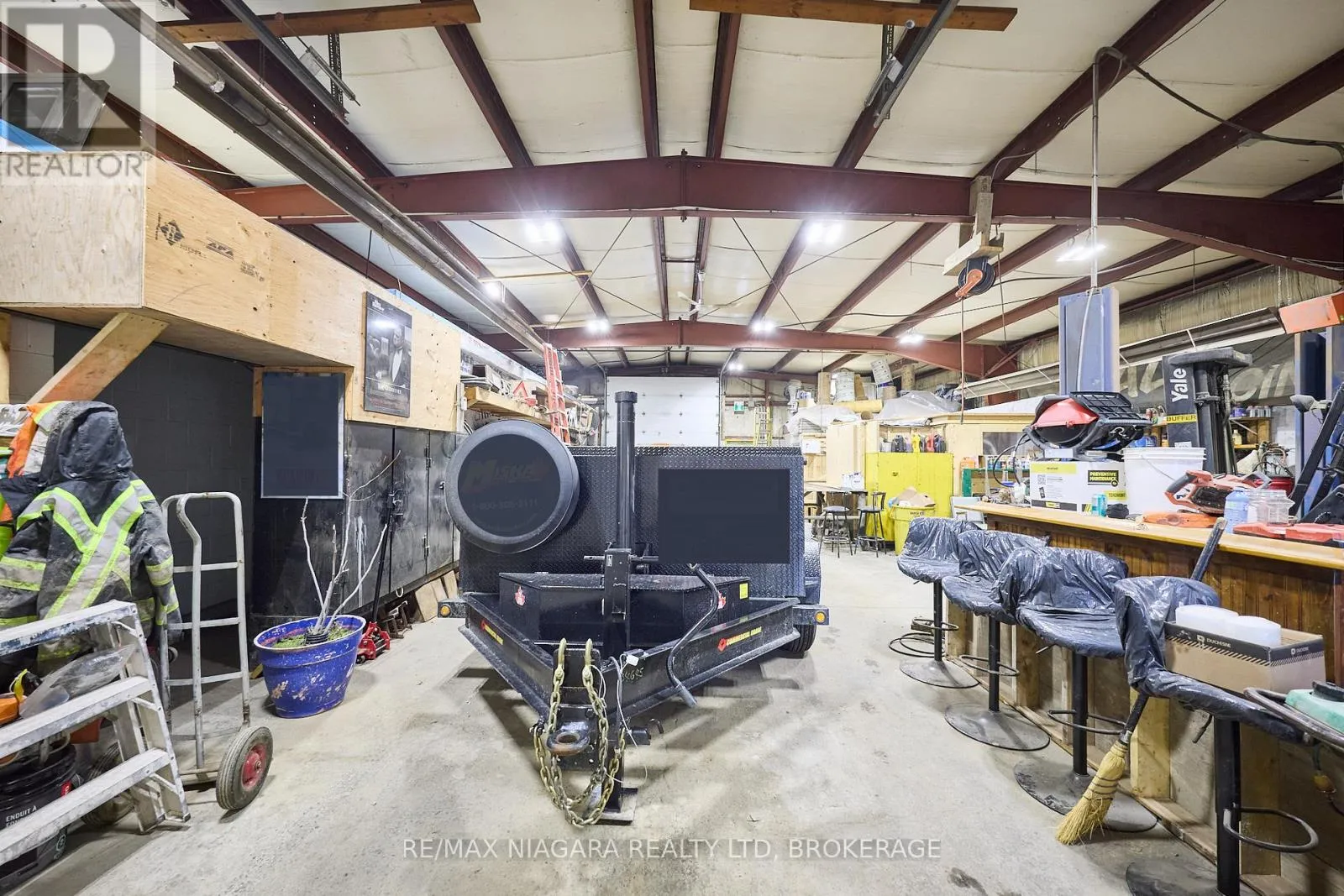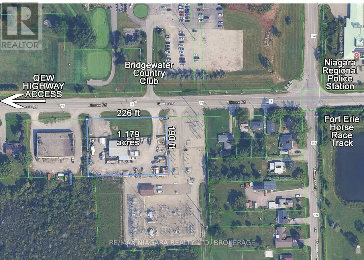 Cross Streets: Thompson Rd. ** Directions: Take Thompson Rd and turn west onto Gilmore Rd. Located across from the Bridgewater County Club Golf Course driveway. Situated on a 1.179-acre lot with 266 feet of frontage, this versatile industrial-style property features a heated workshop spanning over 3,100 square feet. The building includes multiple bay doors for easy vehicle and equipment access, a dedicated office space, a storage room, and a convenient 2-piece bathroom-making it ideal for a variety of commercial or light industrial operations. The fully fenced yard offers abundant space for parking, outdoor storage, and equipment staging. A gated entry and security system provide added privacy and peace of mind. Zoned Urban Entertainment Centre (UEC), the property supports a wide range of commercial, industrial, and residential uses, offering future development potential or owner/operator flexibility. Prime location directly across from Bridgewater Country Club and just minutes from the Fort Erie Racetrack, Niagara Regional Police Station, and local amenities. Only 2 km to the QEW Highway access and truck stops-an ideal hub for regional logistics or trade-based business. (id:27476)
