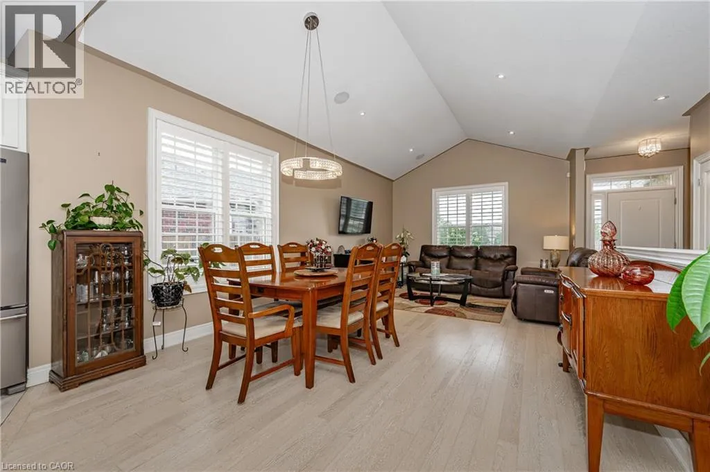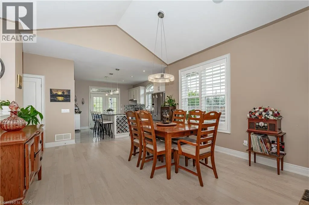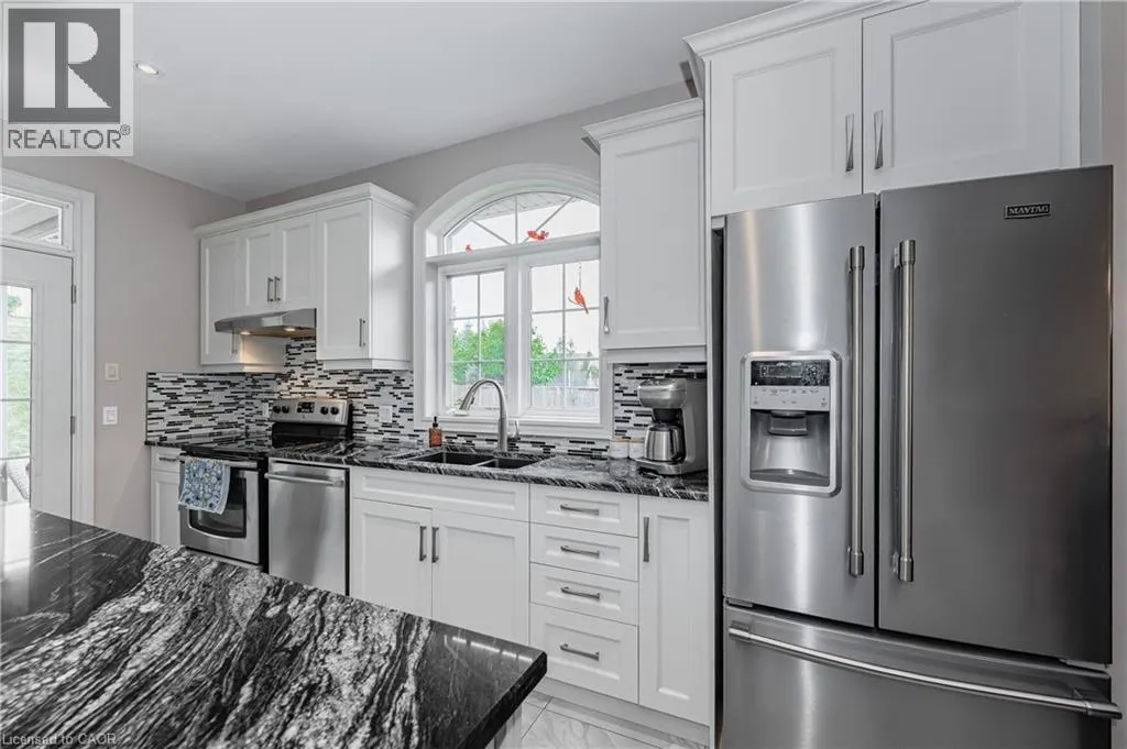 Old Mill to Lower Coach Road Welcome to 3985 Lower Coach Road, a beautifully maintained open-concept bungalow set on a rare oversized reverse pie-shaped lot in one of Stevensville's most desirable neighbourhoods. Built in 2017, this 4-bedroom, 3-bathroom home blends modern finishes with a functional layout suited to a wide range of lifestyles. The main floor features engineered hardwood, custom California shutters, a built-in speaker system, and an open-concept living and dining area. The kitchen offers granite countertops, a large 8-foot island with a built-in wine rack, a granite sink, 24-inch tile floors, and a spacious pantry. French doors lead to a full-length deck (2019) overlooking a deep, fully fenced backyard with no rear neighbours. This rare lot provides exceptional privacy, mature perennial gardens, two large sheds, and a double side gate ideal for trailer or boat access. The main floor includes two bedrooms, a second full 4-piece bathroom, and convenient main-floor laundry. The primary suite offers a private 3-piece ensuite and a walk-in closet. An attached 2-car insulated garage with an insulated automatic door and a double-wide driveway allows parking for up to six vehicles. The fully finished basement expands the living space with two additional large bedrooms, a 3-piece bathroom, and a generous rec room with a cozy gas fireplace. A large storage room adds practicality. With thoughtful details throughout, a private backyard setting, and a well-designed layout, this home is move-in ready and ideal for families, downsizers, or anyone looking for space and quality in Stevensville. (id:27476)