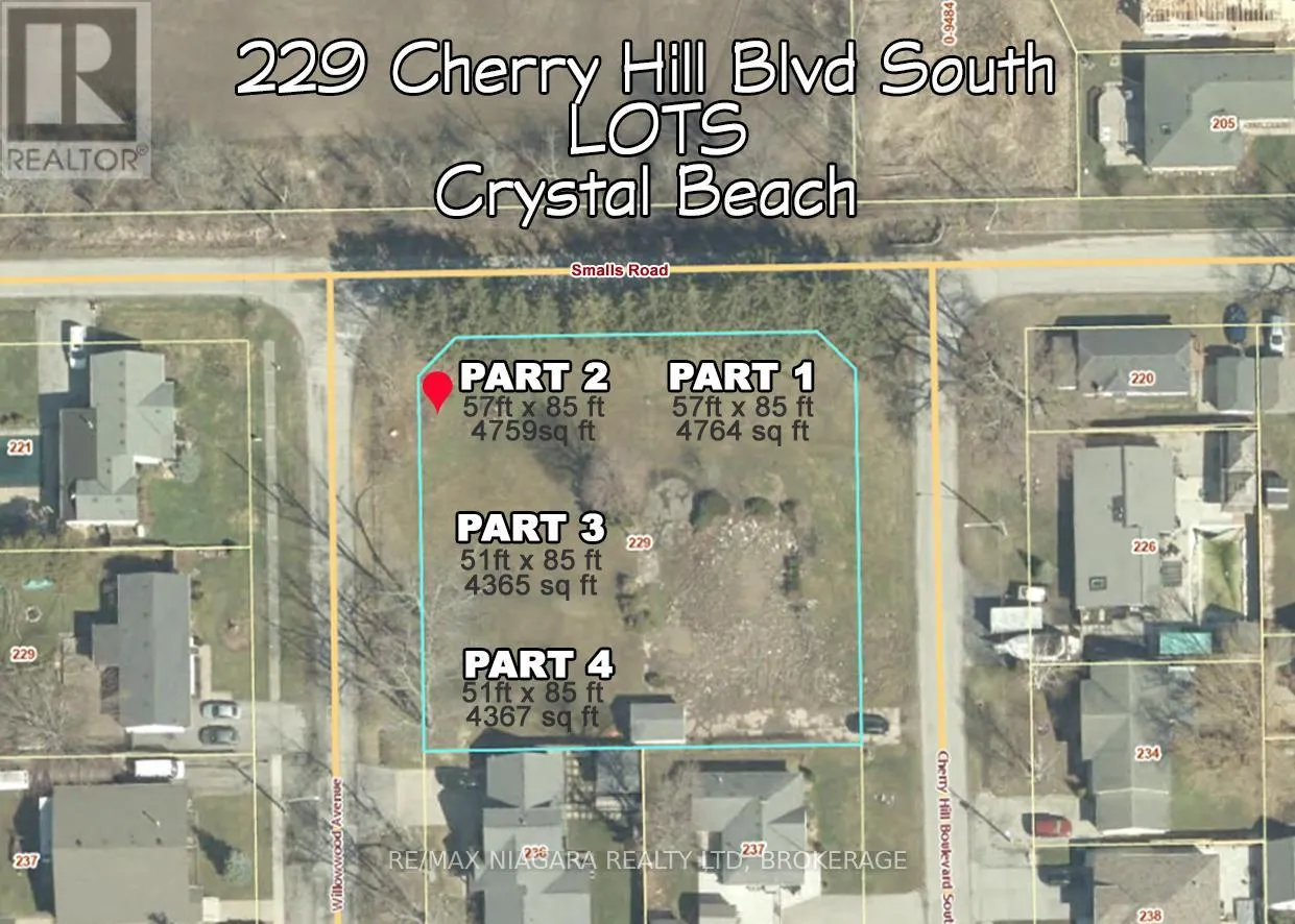 Cross Streets: Lot is on the corner of Smalls Rd & Willowwood Ave. ** Directions: Take Smalls Rd past Cherry Hill Blvd South and turn south on Willowwood Ave. Lot will front onto Willowwood Ave. Discover the charm of coastal living with this 57 ft x 85 ft residential building lot, nestled in a peaceful and sought-after pocket of Crystal Beach. Whether you're envisioning a year-round residence, a vacation escape, or a modern short-term rental, this is your chance to bring your vision to life-just a 10-minute walk from Lake Erie's stunning beaches and Crystal Beach's lively strip of shops, cafés, and restaurants. This Smalls Rd corner location which will front onto Willowwood Ave, offers a relaxed lifestyle surrounded by nature and convenience. You're close to boat launches, boat clubs, golf courses, and the boutiques and services of Downtown Ridgeway. Commuters and cross-border travelers will appreciate the easy 20-minute access to both the QEW and Peace Bridge, offering quick connections to Niagara Falls, Toronto, and Buffalo, New York. A UNIQUE OPPORTUNITY: There is also the option to purchase any combination of up to six available lots on this corner block, which is ideal for builders, investors, or families looking to create a multi-home compound. Whether you secure one or several, this is a rare chance to shape the future of a thriving community that blends Lake Erie living with modern convenience. A rare opportunity in one of Niagara's most exciting beachside communities - don't miss out! (id:27476)