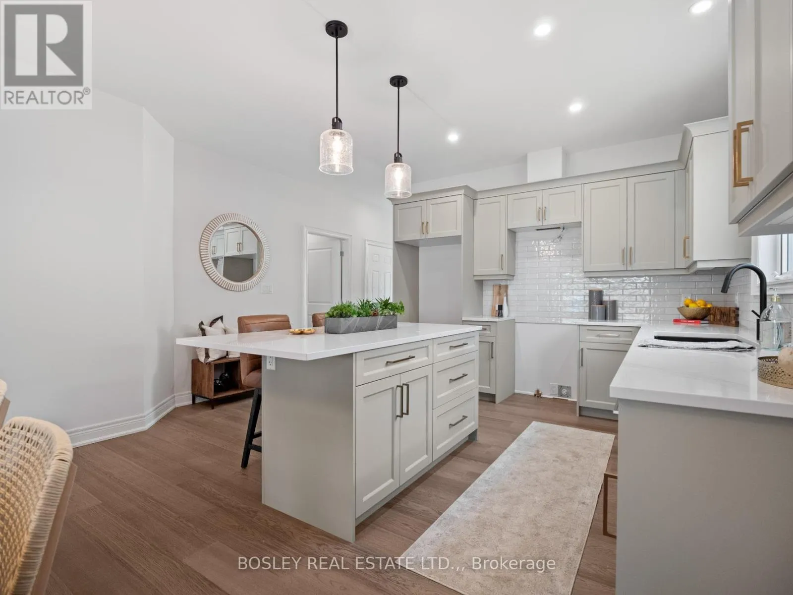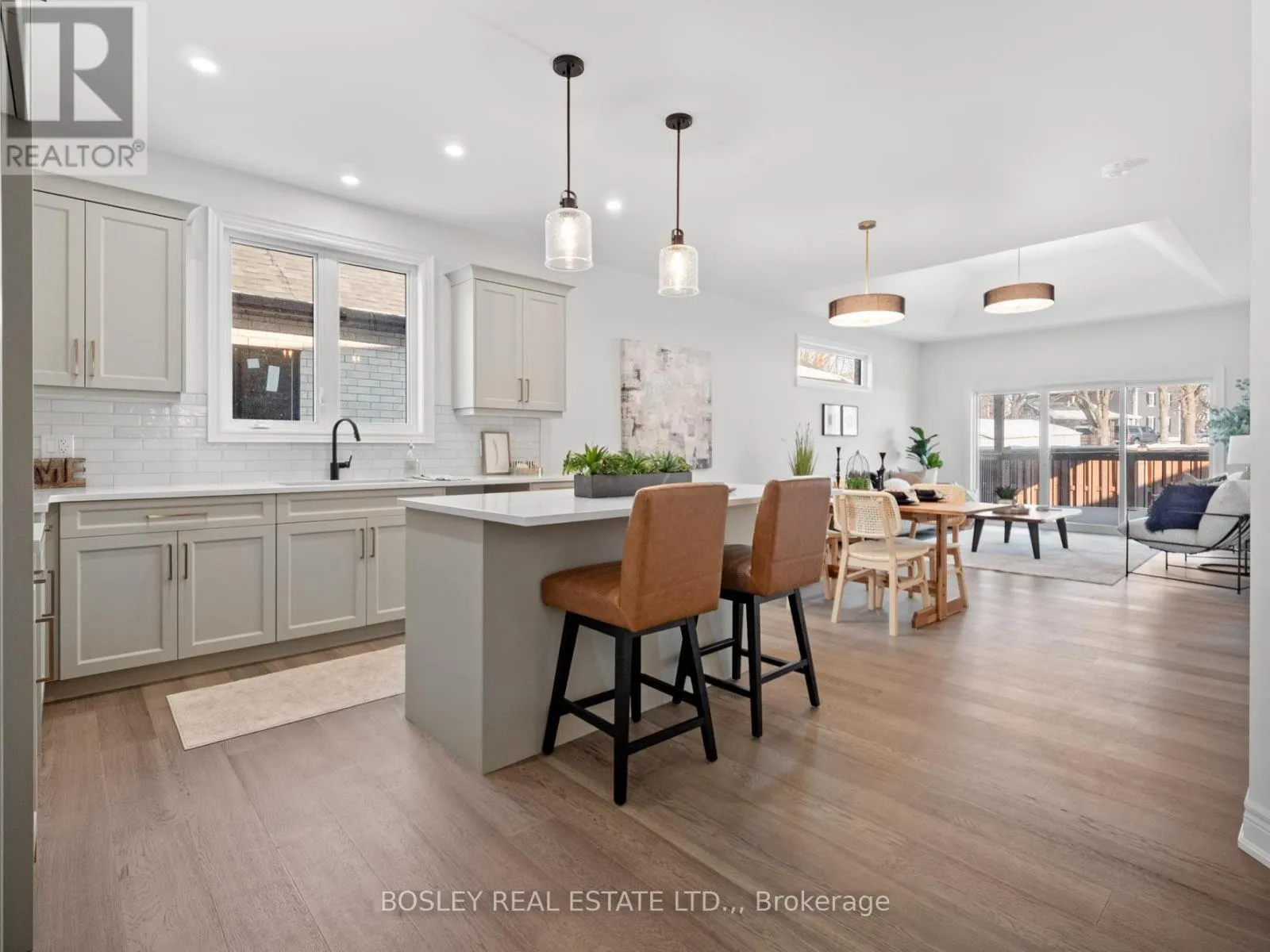 Cross Streets: Ridge Road. ** Directions: Royal Ridge. Just completed and move-in ready, this stunning freehold end-unit bungalow townhome showcases timeless, stylish finishes throughout. Finished on both levels, it offers approximately 2,200 sq. ft. of thoughtfully designed living space. The main level features engineered hardwood flooring in the principal living areas, complemented by elegant tile in the bathrooms and main-floor laundry room. The kitchen includes a central island, quartz countertops, ample cabinetry, tiled backsplash, undercabinet lighting, prep space, and a convenient walk-in pantry. Enjoy the seamless flow into the bright dining and living area, filled with natural light. The living room is highlighted by a tray ceiling for added character and sliding patio doors leading to a covered deck with four pot lights. The fully finished lower level adds exceptional value, offering a spacious recreation room, an additional bedroom with a large window, and a three-piece bathroom. Outside, the home features a distinguished exterior of brick, stone, and stucco, along with an exposed aggregate concrete driveway leading to the attached garage. Built by a trusted local builder using skilled local trades, this home delivers quality, comfort, and style-making life at Royal Ridge truly exceptional. (id:27476)