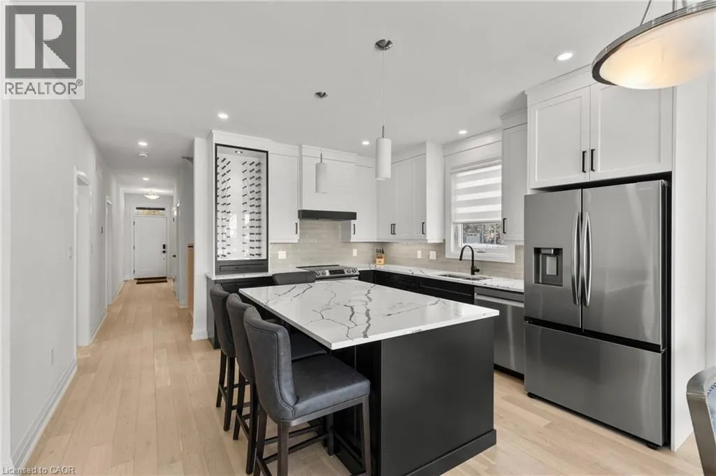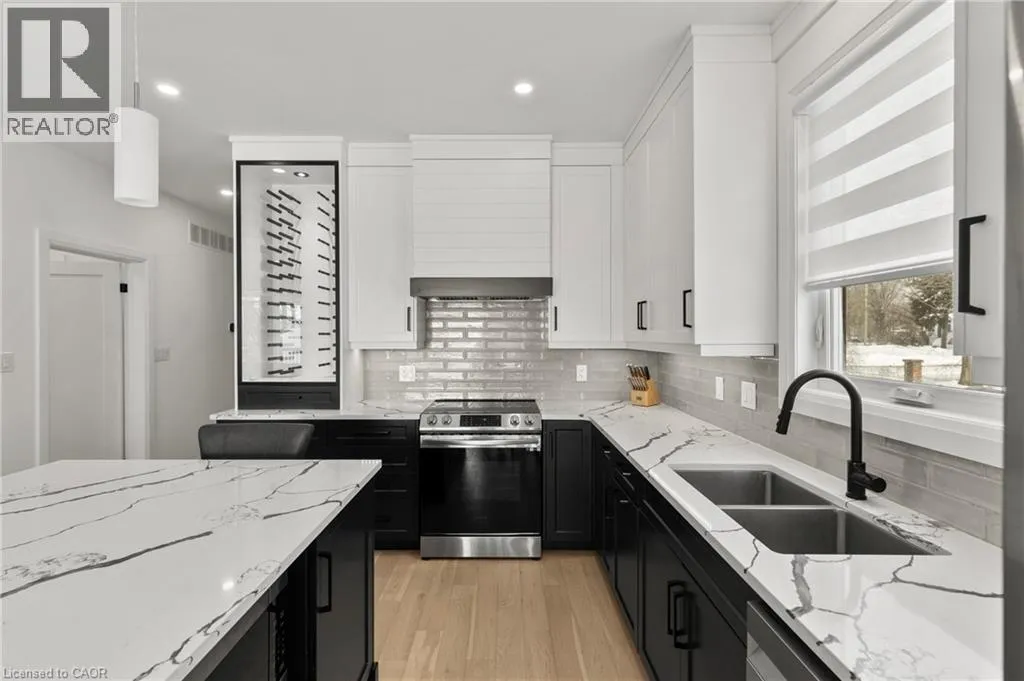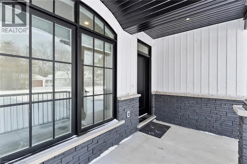 Take ON-406 S to Holloway Bay Rd N. Take Sherkston Rd to Point Abino Rd N in Fort Erie. Take Michener Rd and Ridgeway Rd to Ryan Ave in Crystal Beach. Experience effortless lakeside living in this beautifully designed bungaloft, where modern style meets relaxed comfort just steps from the Lake Erie waterfront. The classic black-and-white exterior with board-and-batten detailing makes a striking first impression, enhanced by an attached garage and inviting covered front porch. Inside, white oak hardwood floors and abundant natural light create a warm, airy feel throughout the open-concept living space. The designer kitchen is a true showpiece, featuring floor-to-ceiling cabinetry, stone countertops, and a statement wine fridge. Expansive patio doors lead directly to the back deck, with stairs connecting to the upper balconyâideal for seamless indoor-outdoor entertaining. Unwind in the inviting living room with a cozy gas fireplace, or take the gathering outside. The thoughtfully designed layout offers four bedrooms and 2.5 bathrooms, including a serene primary suite with a sleek ensuite. The loft level is a standout, offering two additional bedrooms, a full bathroom, and access to an expansive terraceâperfect for hosting under the stars, enjoying lake breezes, or taking in peaceful evening views. With multiple outdoor living spaces, lake views from the rear, and an unfinished basement ready for your vision, this home delivers a refined yet relaxed lifestyle just moments from the water. (id:27476)