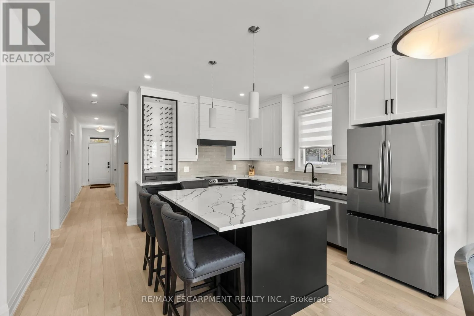 Cross Streets: Ridgeway Rd. ** Directions: Take ON-406 S to Holloway Bay Rd N. Take Sherkston Rd to PointAbino Rd N in Fort Erie. Take Michener Rd and Ridgeway Rd toRyan Ave in Crystal Beach. Experience effortless lakeside living in this beautifully designed bungaloft, where modern style meets relaxed comfort just steps from the Lake Erie waterfront. The classic black-and-white exterior with board-and-batten detailing makes a striking first impression, enhanced by an attached garage and inviting covered front porch. Inside, white oak hardwood floors and abundant natural light create a warm, airy feel throughout the open-concept living space. The designer kitchen is a true showpiece, featuring floor-to-ceiling cabinetry, stone countertops, and a statement wine fridge. Expansive patio doors lead directly to the back deck, with stairs connecting to the upper balcony-ideal for seamless indoor-outdoor entertaining. Unwind in the inviting living room with a cozy gas fireplace, or take the gathering outside. The thoughtfully designed layout offers four bedrooms and 2.5 bathrooms, including a serene primary suite with a sleek ensuite. The loft level is a standout, offering two additional bedrooms, a full bathroom, and access to an expansive terrace-perfect for hosting under the stars, enjoying lake breezes, or taking in peaceful evening views. With multiple outdoor living spaces, lake views from the rear, and an unfinished basement ready for your vision, this home delivers a refined yet relaxed lifestyle just moments from the water. (id:27476)