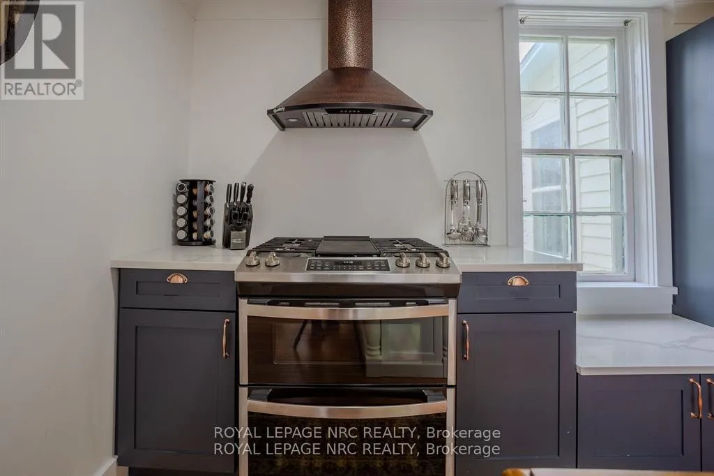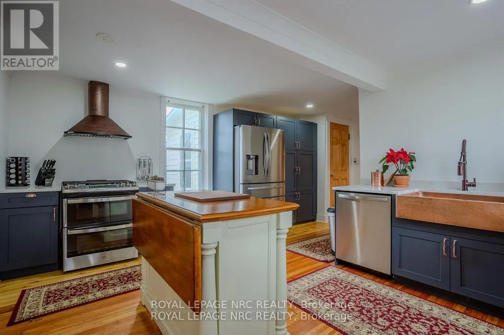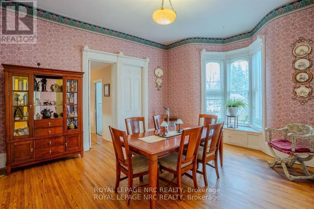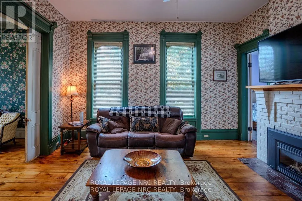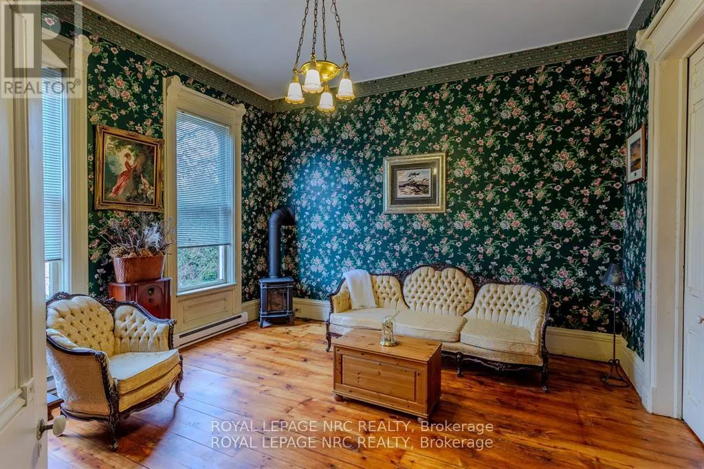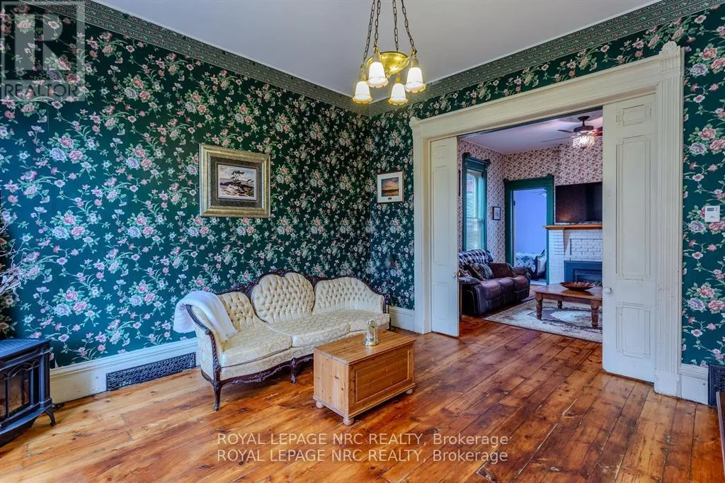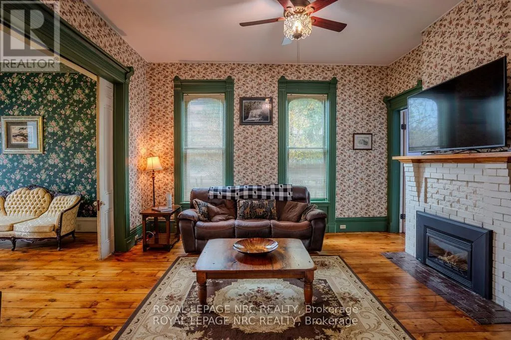 Dominion Road to Ridge Road N Located in the charming village of Ridgeway, 348 Ridge Road North offers a rare opportunity to own a historic gem. Built in the 1880s, this Second Empire-style home features a striking mansard roof and decorative dormers, blending timeless architecture with modern comfort. With over 2,800 square feet, the home offers six bedrooms and 2.5 bathrooms, including a main-floor primary bedroom and an updated main-floor bathroom with custom shower. The west-facing porch is the perfect place to relax and take in beautiful sunset views.Inside, original character details are thoughtfully paired with modern updates. The main floor features two parlours, a formal dining room, and a secondary dining area, ideal for everyday living or entertaining. High ceilings, large windows, original wood staircases, detailed trim, and two gas fireplaces-one with its original mantle-enhance the home's historic appeal. The renovated kitchen includes custom cabinetry, quartz countertops, and a copper sink, while central air ensures year-round comfort. Upstairs, five additional bedrooms and another 1.5-bath layout provide flexible space for family, guests, or a home office. Fresh paint and restored floors brighten many rooms throughout. Outside, a private rear deck, garden, and orchard create a welcoming space for entertaining, complemented by a workshop and ample storage. Recent updates include a concrete driveway, natural gas generator, and metal roof. Zoned CMU-4 for mixed use for a wide variety of options. Buyers are encouraged to verify permitted uses and zoning. Located in walkable downtown Ridgeway, this home is close to shops, dining, and community events, with the shores of Lake Erie just a short drive away-offering the perfect blend of small-town charm and lakeside living. (id:27476)