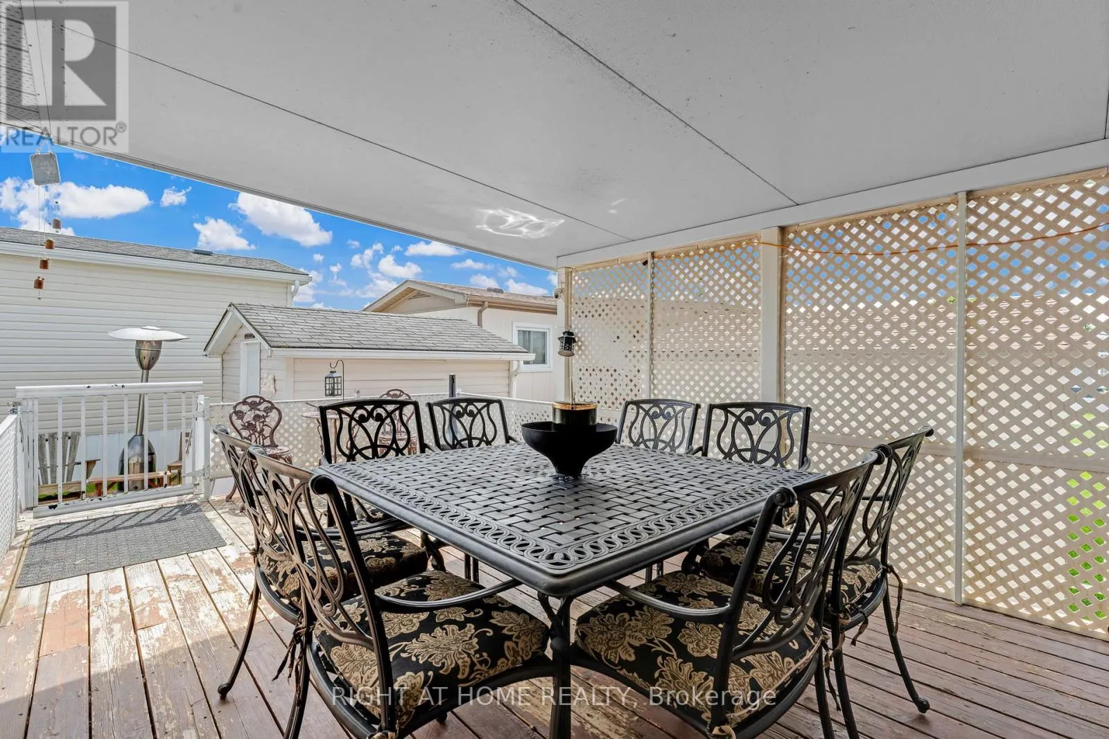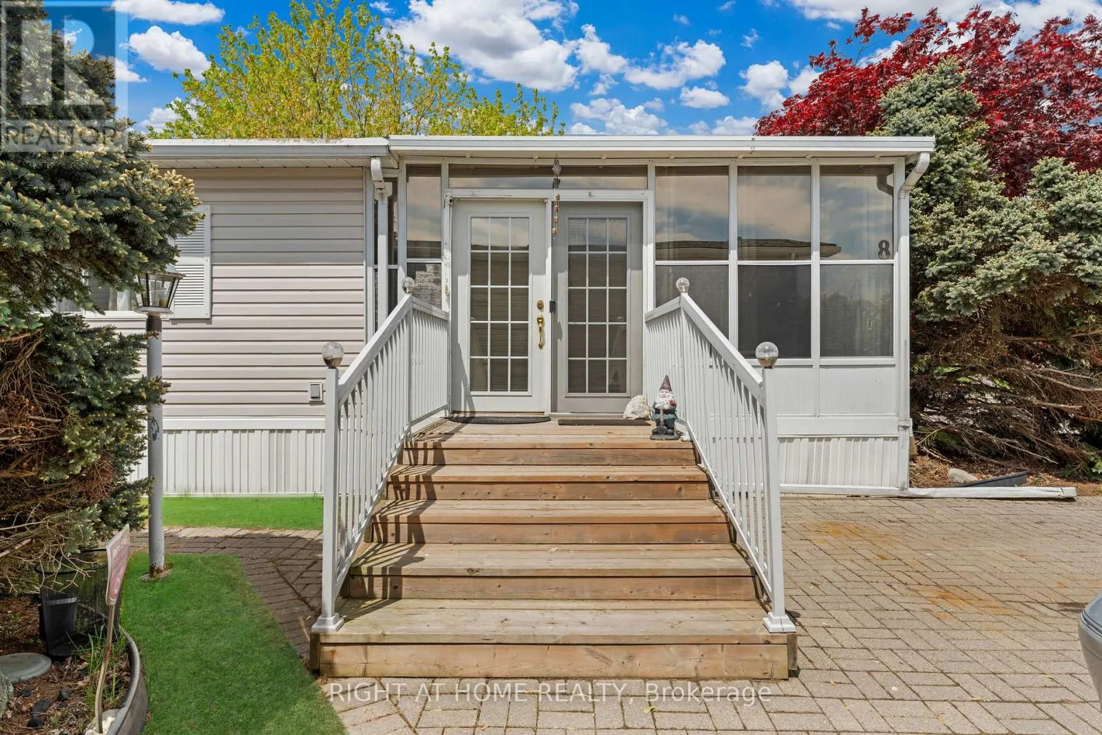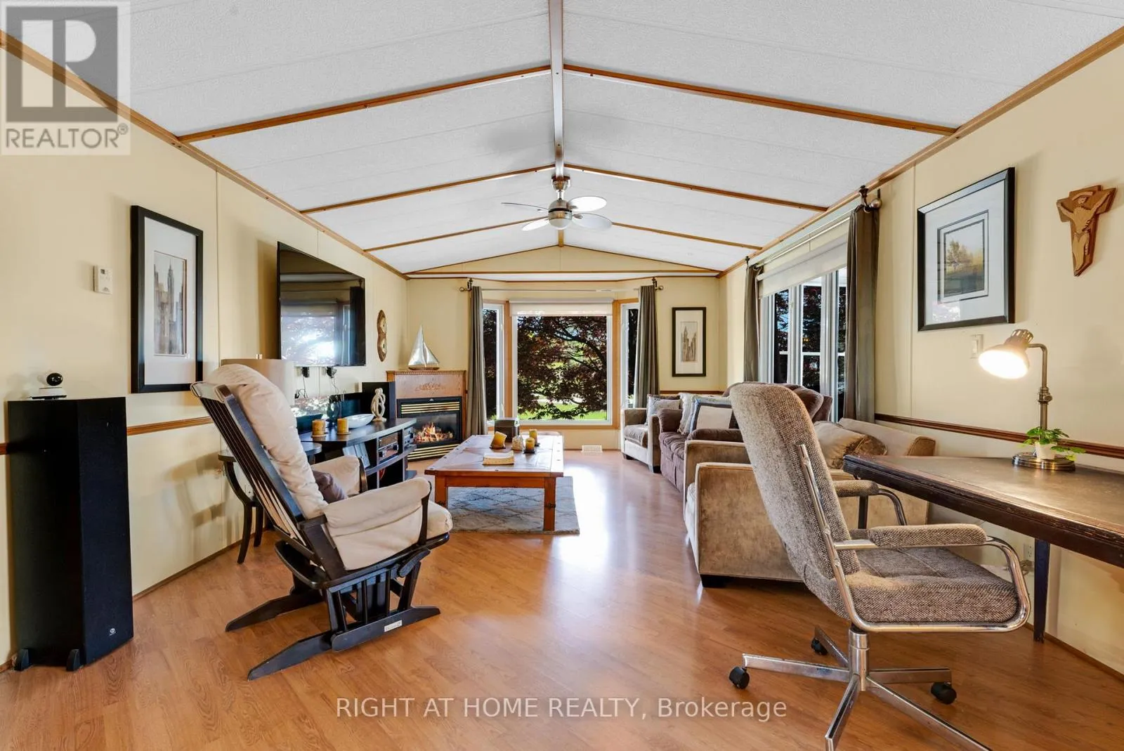 Q.E.W. to Netherby south to Townline, Enter Black Creek Trail Fall in love with this bright, open-concept and beautifully maintained 1,220 sq ft bungalow located in the sought-after Black Creek Adult Community in scenic Stevensville. Designed for comfort and easy entertaining, the home also offers a spacious 180 sq ft sunroom and a partially covered 17' x 11' deck/terrace overlooking a manicured side yard - perfect for morning coffee or gatherings with family and friends.Inside, a formal dining room provides an inviting hosting space, while the light-filled kitchen and family room feature soaring cathedral ceilings and a cozy gas fireplace that adds warmth and charm. The conveniently placed laundry area sits just off the kitchen for everyday functionality.The hallway leads to generous storage and utility space, a versatile den, a bright office/bedroom with walk-out to the deck, a spacious primary bedroom, and a large 5-piece bathroom complete with a relaxing jetted tub.A double paving stone driveway offers two private parking spaces, and a powered 10' x 10' shed provides extra room for tools, hobbies, or seasonal storage.Enjoy an active and social lifestyle only steps away with access to the community centre, indoor and outdoor pools, indoor whirlpool spa, tennis courts, shuffleboard, saunas, library, gym equipment, golf and walking trails. Activities include yoga, aerobics, line dancing, tai-chi and more.Conveniently located just a short drive to Niagara Falls, Crystal Beach, Niagara Safari and nature parks. Experience enjoyable, peaceful & carefree living! book your private showing today! Estimated Monthly fee of $789.37 that covers Land-Lease and Taxes. (id:27476)