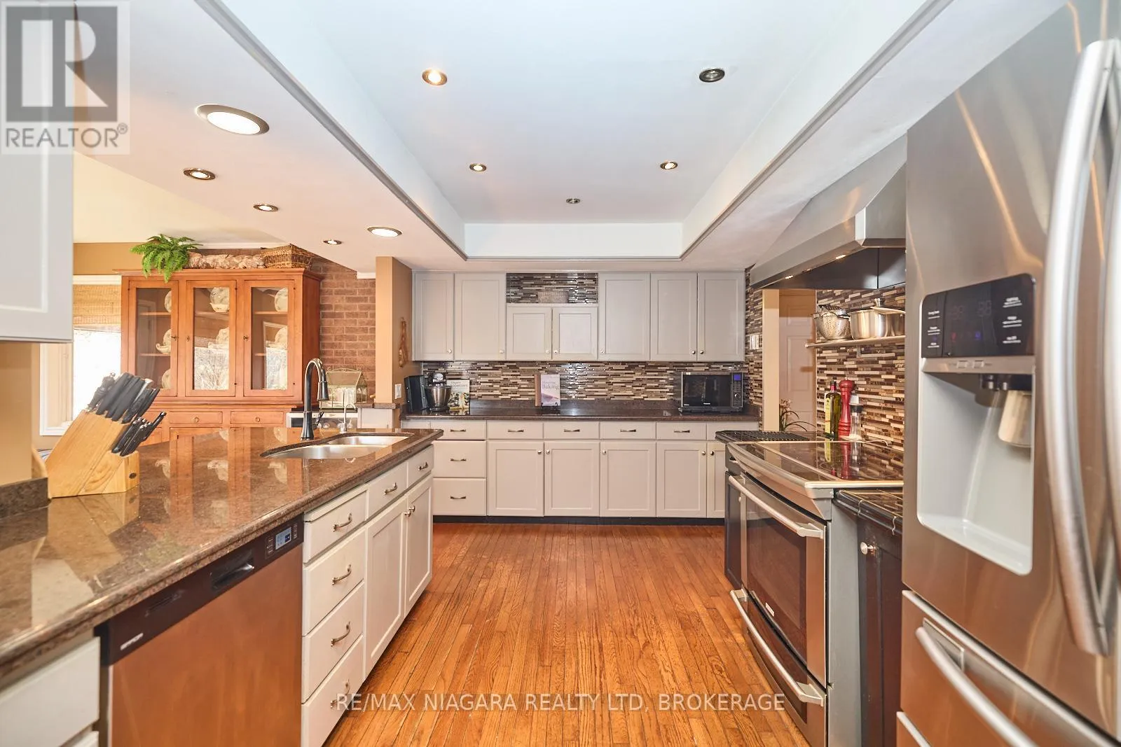 Cross Streets: Garrison Rd / Hwy#3. ** Directions: Take Garrison Rd / Hwy#3 and turn north on Pettit Rd. Set on an expansive 125x225 ft lot with no rear neighbours, 1121 Pettit Rd offers privacy, versatility, and beautifully upgraded living just minutes from shopping, services, schools and recreation - with easy access to the QEW to Toronto and Peace Bridge to Buffalo. This thoughtfully renovated home blends timeless character with modern comfort. Inside, vaulted ceilings and abundant natural light create a bright, airy atmosphere. The living room is anchored by a stunning custom wood and brick fireplace surround and exposed beams, adding warmth and architectural charm. The main floor features a formal dining room, a dedicated office space, and a beautifully updated kitchen with peninsula and 2-seat breakfast bar, providing flexibility for everyday living, entertaining, and working from home. The welcoming foyer leads through the kitchen to the light-filled family room with secondary dining area and double doors leading to the backyard. A bedroom with an adjoining 3-piece ensuite allows for convenient main-floor living, while an additional 3-piece bathroom, mudroom with garage access, and laundry room add practicality. Upstairs are two spacious bedrooms, including one with ensuite privilege to a 4-piece bathroom featuring a relaxing soaker tub and built-in towel storage. The finished basement enhances the home's versatility with a second kitchen, large rec room, den, and potential for a fourth bedroom - ideal for multi-generational living, guests, or in-law capability. Outdoors, the landscaped yard feels like a private retreat. Mature trees, winding garden paths, and lush greenery attract birds and wildlife, creating a peaceful setting. Enjoy summer days by the above-ground pool, relax on the covered patio, or gather with family and friends in the expansive backyard with gazebo and sheds. Offering space, flexibility, and elegant upgrades inside and out, this is a rare opportunity to enjoy tranquil living without sacrificing convenience. (id:27476)