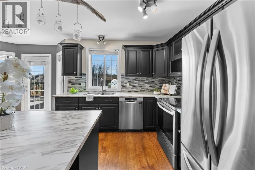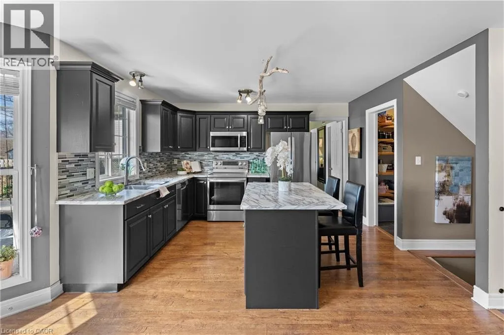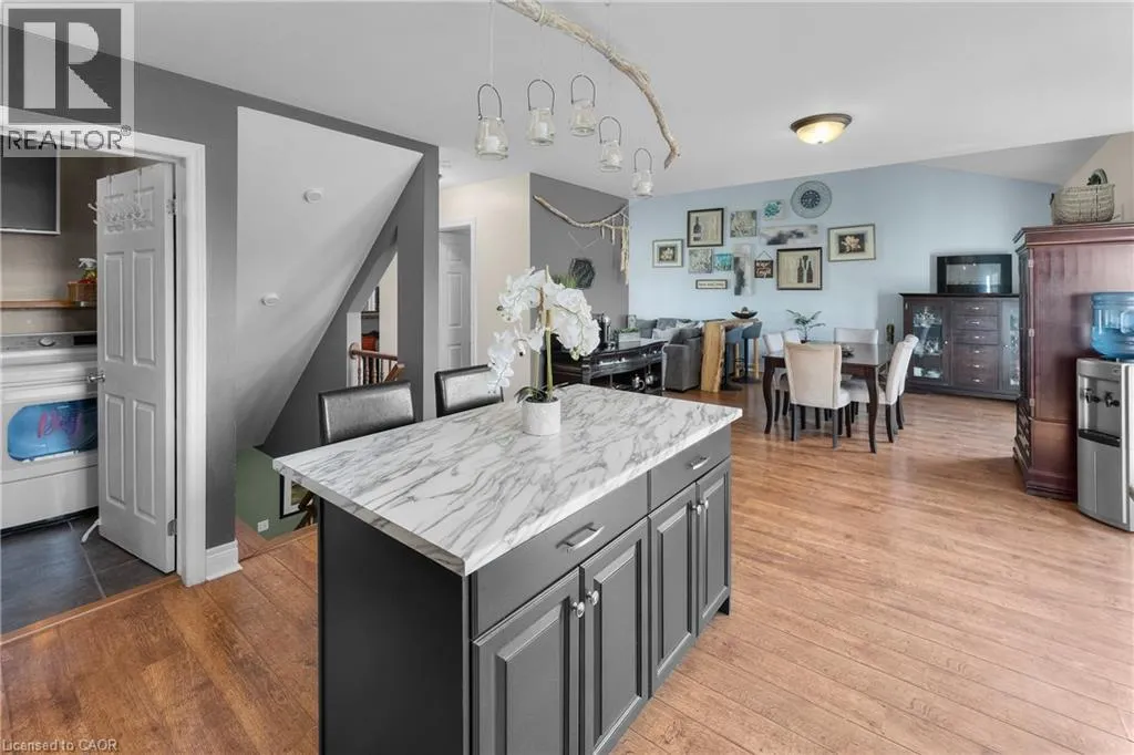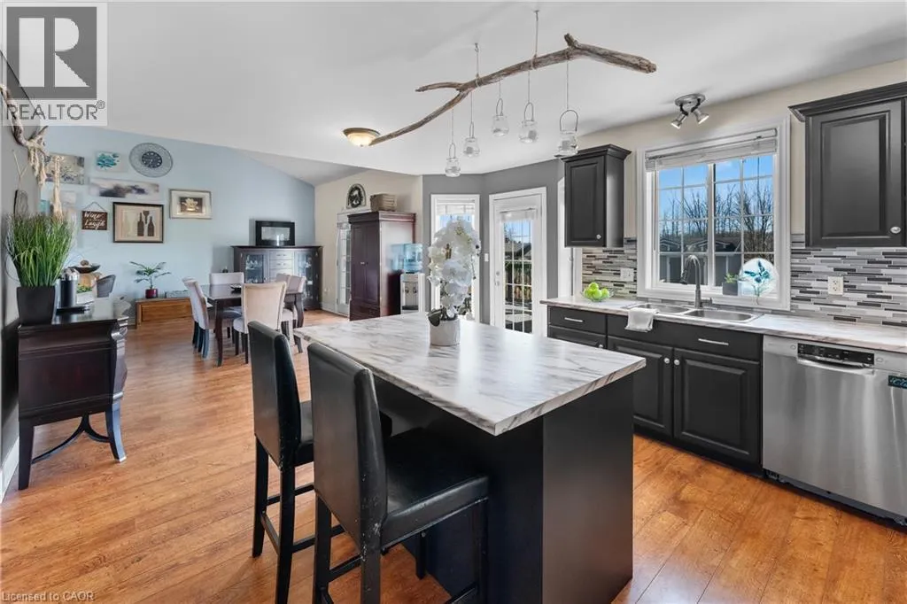 Welcome to this well-maintained two-storey home located on a quiet cul-de-sac with no rear neighbours in the Lakeshore neighbourhood of Fort Erie.The main floor features gorgeous vaulted ceilings coupled with a bright, functional layout with open-concept living and dining areas complimented by a spacious kitchen with plenty of cabinetry and workspace. Main floor laundry and a walk-in pantry add everyday convenience to this perfect family home. The primary bedroom is conveniently located on the main level and includes a walk-in closet, 4-piece ensuite and walk-out access to the backyard. Upstairs, you'll find two additional bedrooms, a full bathroom and an open loft with potential to convert into an additional bedroom.The finished basement offers excellent opportunity for multigenerational living with a large rec room featuring a gas fireplace, a kitchenette, a 2-piece bathroom and a bonus room ideal for guests, office space, or flexible living. The backyard faces southwest making it perfect to watch sunsets over the pond. There are 3 walkouts to the deck, making this serene, mature backyard the perfect summer oasis. A private gate offers direct access to a scenic walking trail, creating the perfect setting for peaceful evening walks and beautiful views right from your own backyard. Close to parks, everyday amenities and just minutes from the Peace Bridge, this home offers a great combination of privacy, space and convenience in Fort Erie. (id:27476)