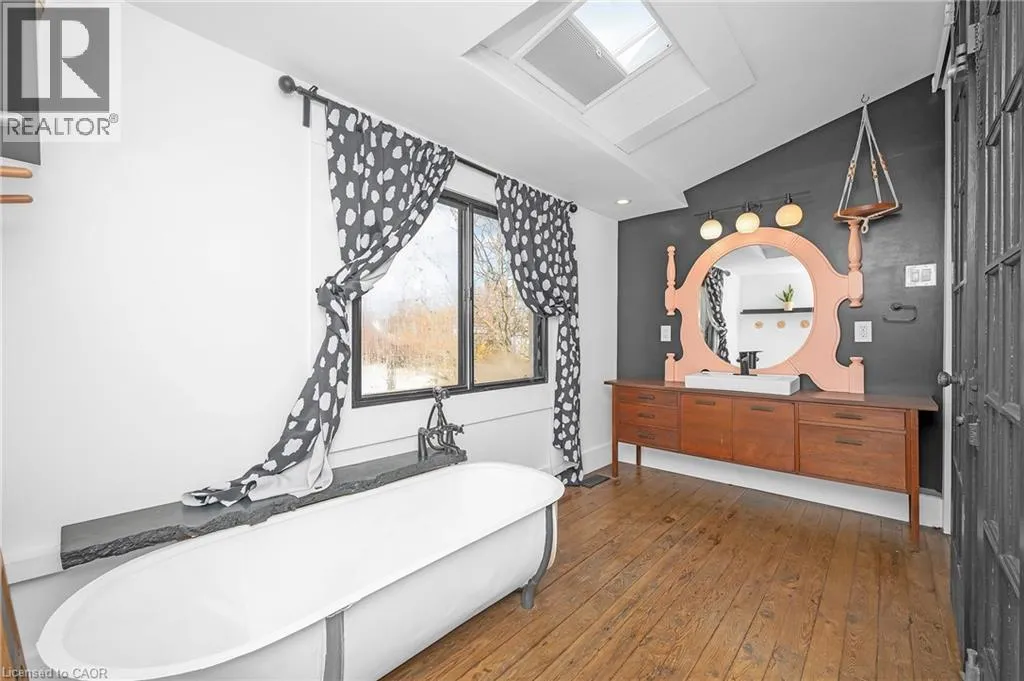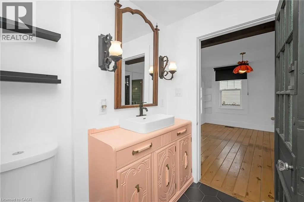 Central Ave to Gilmore Road Charming 3-bed, 2-bath detached home in central Fort Erie. Well updated while preserving lots of character throughout-could be great as a starter home or rental or small family looking for affordable housing. The inviting main level features a cozy kitchen, convenient main-floor laundry, and comfortable living spaces, while the entire upper level serves as a private primary retreat with a well-appointed 3-piece ensuite and a spacious walk-in closet. Outside, enjoy the fenced yard ideal for pets or entertaining or relaxing, along with two dedicated parking spots out front. NOTEABLE UPDATES: Furnace/AC Combo w warranty (2021), Roof (Approx. 2019), LG Washer/Dryer (2022) (id:27476)