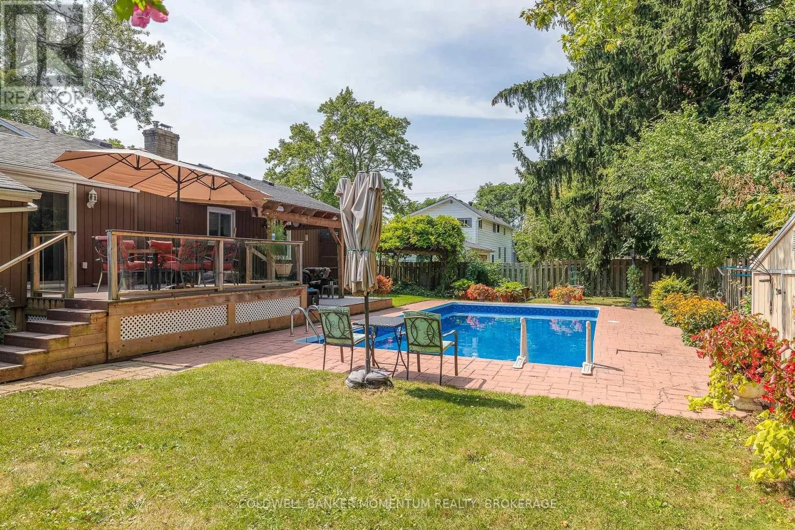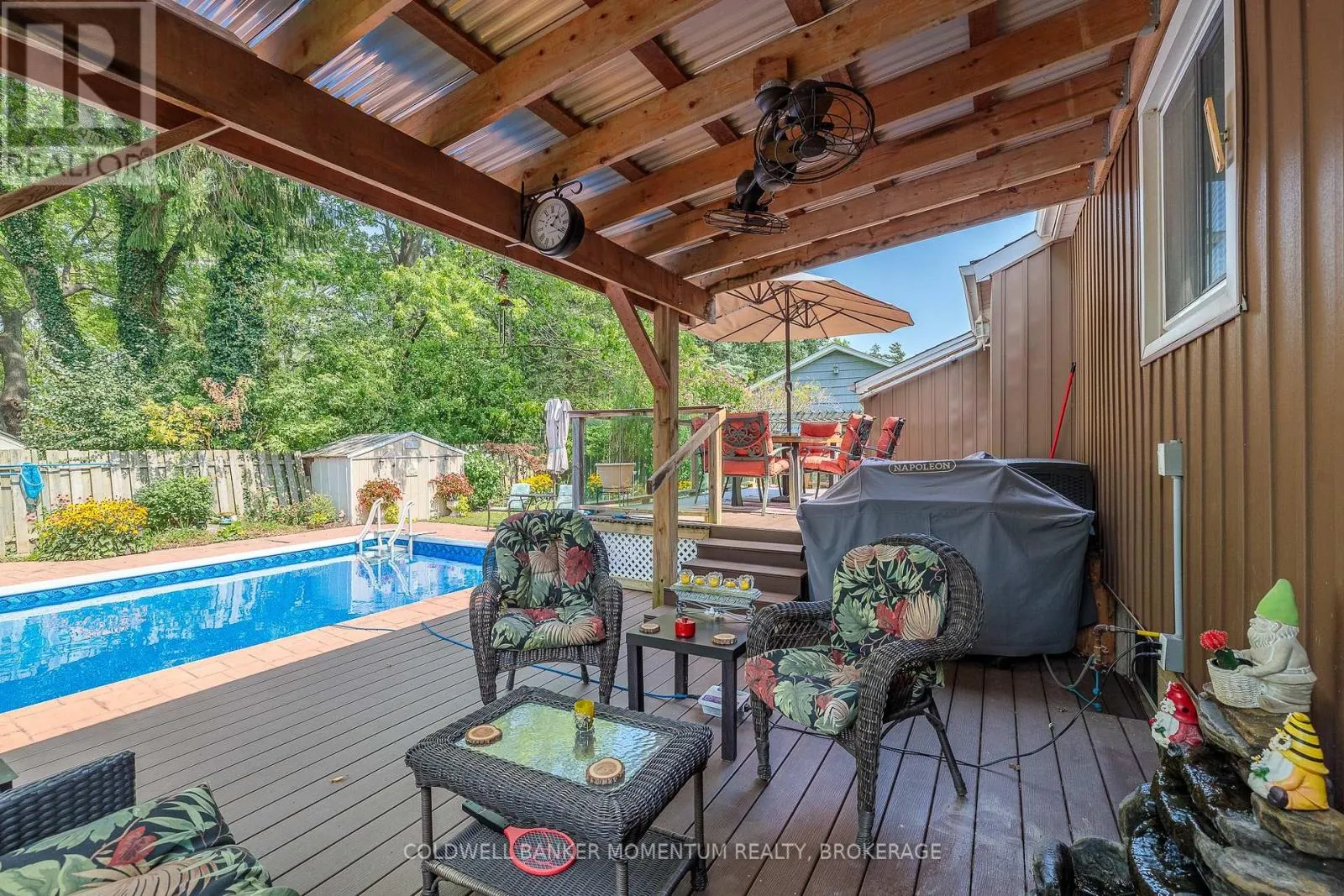 Cross Streets: Ridge Road N. ** Directions: Ridge Road North to Hazel St. Location! Location! this charming home features a inground pool and attached garage is located in the heart of historical downtown Ridgeway. Just a couple of blocks to banks, trendy eatiers, quaint shops, pharmacies etc. If you are looking for a walkable lifestyle this location cant be beat as it is also just a few minutes from Lake Erie and our beautiful Crystal Beach that offers even more delightful restaurants and unique stores. Enter into a bright Sun Room with a tray ceiling that opens up to a two tiered carefree trex deck that overlooks the pool. The lower deck is covered with a fan and sun shade. Enjoy many happy days with family and friends, whether its just lounging in the pool or enjoying drinks and BBQ with a natural gas hookup. The kitchen has a breakfast bar, newer gas range, skylight and tiled backsplash. The living room is spacious with a wood burning fireplace, hardwood floors and built in shelves. The master bedroom is spacious with ample closet space. There are two other bedrooms and an updated bathroom with a Jacuzzi tub on the main floor. New flooring recently installed in the two larger bedrooms. The basement is partially finished and is currently set up with a rec room area, bonus room and newer bathroom with a walk in shower and a large laundry storage area. Bonus cat house to remain, cat accesses it from the basement window. Pool liner 2024, battery operated pool vacuum 2025. All appliances included even the gas BBQ. (id:27476)