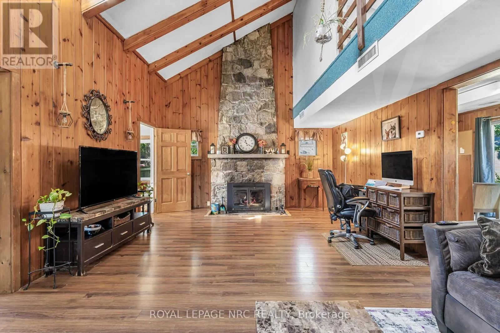Cross Streets: Rebstock & Ridgeway. ** Directions: West of Ridgeway Road. Welcome to 3902 Rebstock Road in Crystal Beach. A charming 1.5-storey home with endless potential, set on one of the larger lots in the area. Offering 1,260 sq. ft. of living space on a rare 146' x 106' irregular shaped lot, this property combines character, space, and opportunity - just minutes from the sandy shores of Lake Erie. Inside, the home features a soaring vaulted ceiling and an impressive stone wood-burning fireplace that serves as the focal point of the living room. The kitchen and dining area offer plenty of natural light and functionality, while the three bedrooms and two bathrooms provide comfortable living accommodations. Its unique layout and rustic cabin-style charm set the stage for your personal touches. Outside, the property really shines. Enjoy the convenience of a detached garage with an attached workshop, parking for six or more vehicles, and a fully fenced yard with space for gardens, entertaining, or future expansion. Recent improvements include vinyl siding, updated windows, and a new roof (2016), along with a newer central A/C (2021) and tankless hot water system. Located in a quiet corner of Crystal Beach, you're just minutes from local shops, restaurants, and beach access, with quick connections to Ridgeway and Fort Erie amenities. Whether you're looking for a year-round home, or a home away from home, this property offers exceptional value and opportunity. Don't miss out. Book your private showing today. (id:27476)