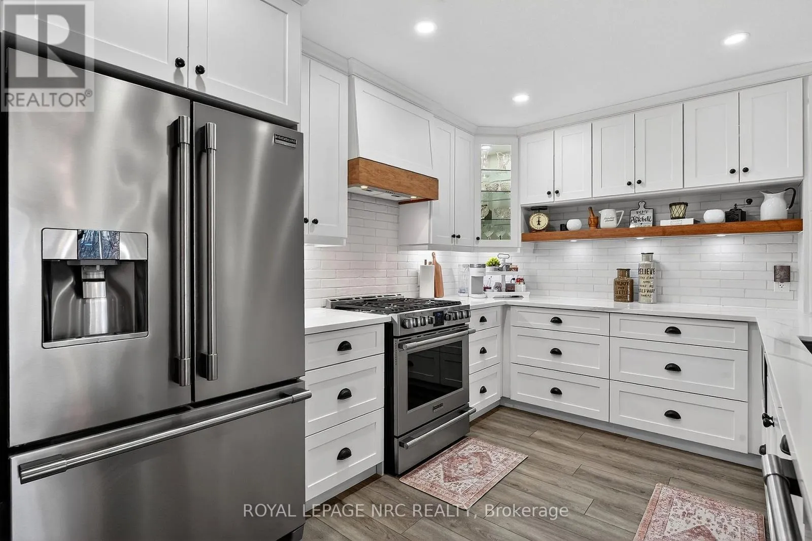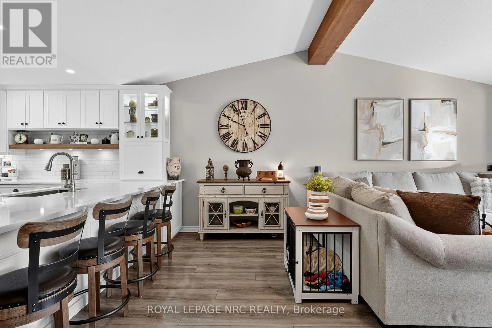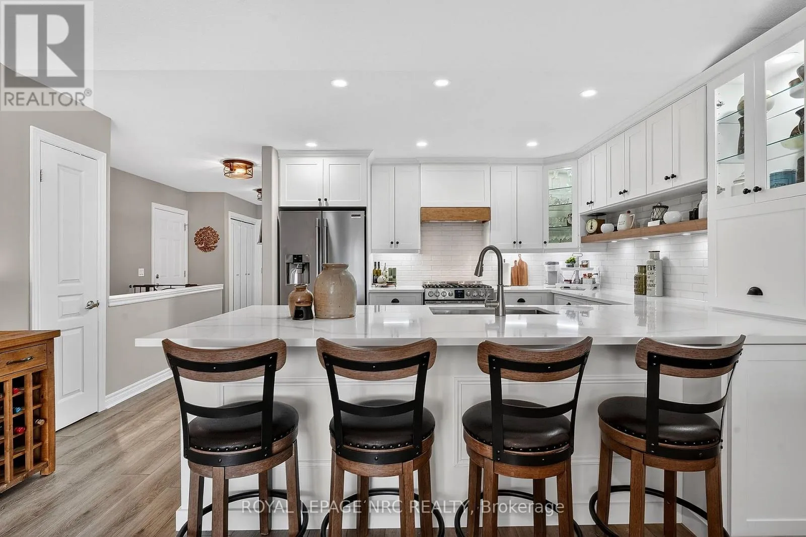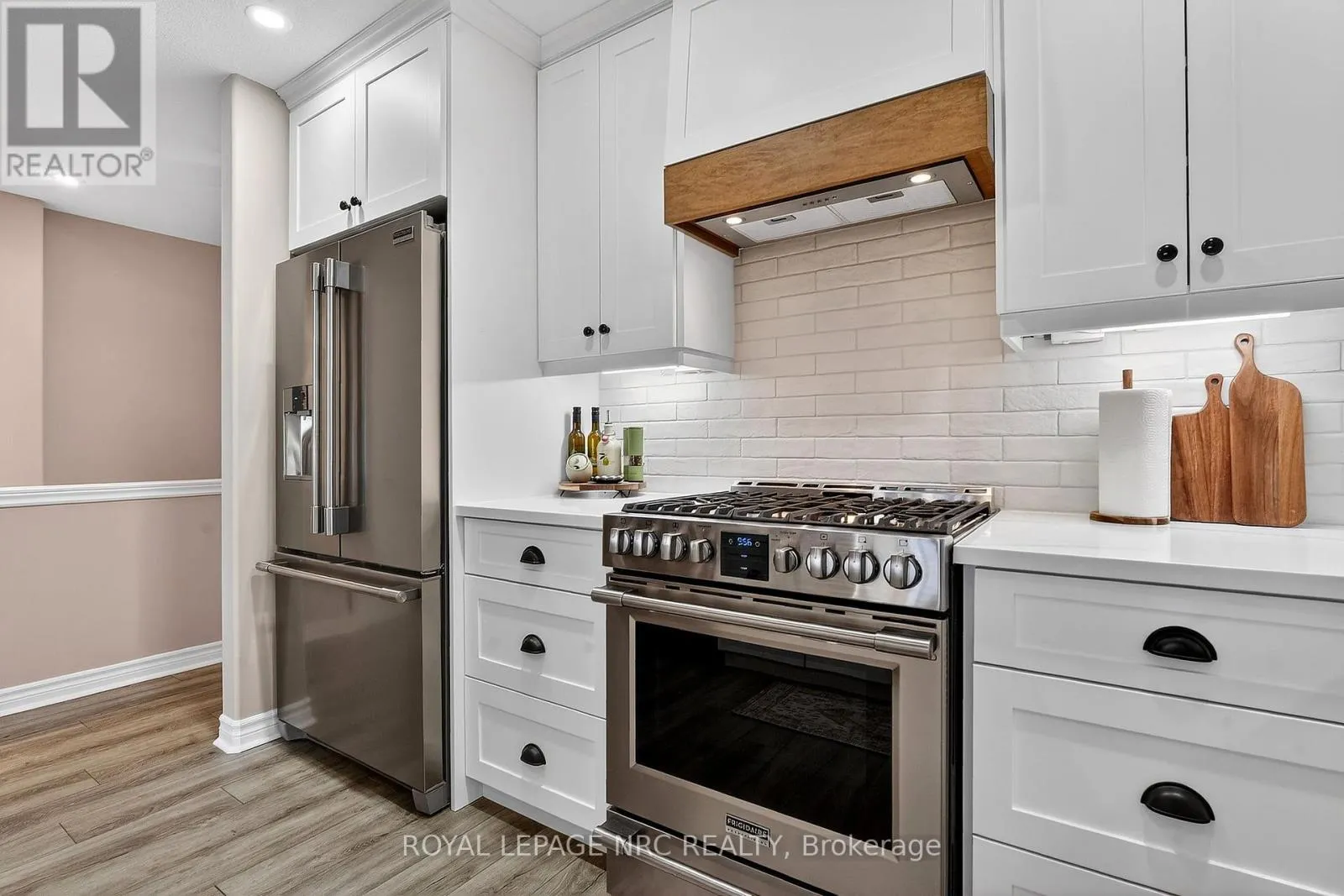Cross Streets: Dominion & Helena. ** Directions: North on Albert from Dominion. Say hello to 9 - 660 Albert Street. This is what retirement is supposed to look like. A beautifully finished bungalow townhouse where the lawn gets cut, the snow gets shoveled, the eavestroughs get cleaned, and you have absolutely nothing to do about it. That's not a selling feature - it's the whole point. Inside, the brand new kitchen is a showstopper - white cabinetry, wood accents, clean lines, the kind of finish that makes you want to cook. Vaulted ceilings with a new faux wood beam, main-floor primary bedroom, main-floor laundry, and an additional room most units in this complex simply don't have. The fully finished basement adds nearly 1,000 more square feet of living space - family room, third bedroom, office, and a bar area. Out back, the oversized private deck looks out over a greenspace buffer with a stormwater pond beyond it. Trees, water, and only wildlife as rear neighbours staring back at you. Quietly spectacular. Condo fees cover water, building insurance, roof, windows, doors, pest control, and full outdoor maintenance. You're not paying for a gym you'll never use. You're getting a life with a shorter to-do list. Book your private showing today. (id:27476)