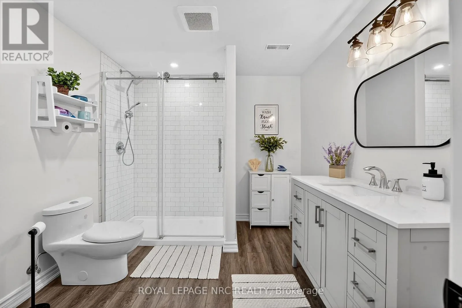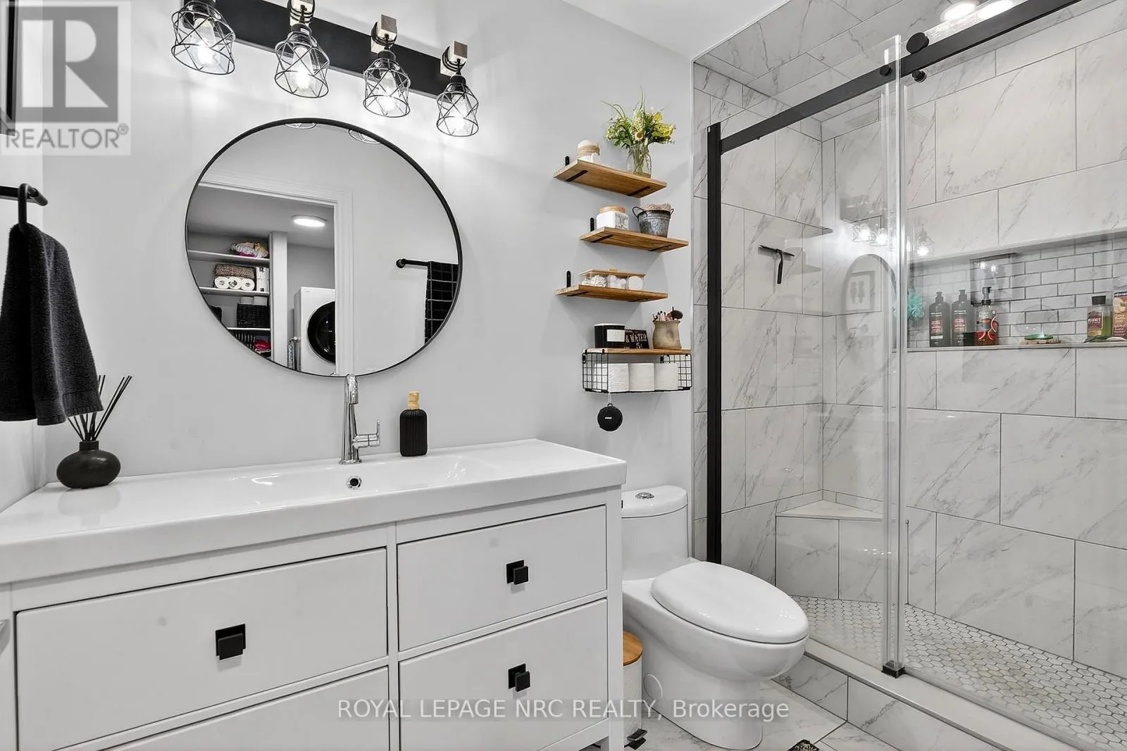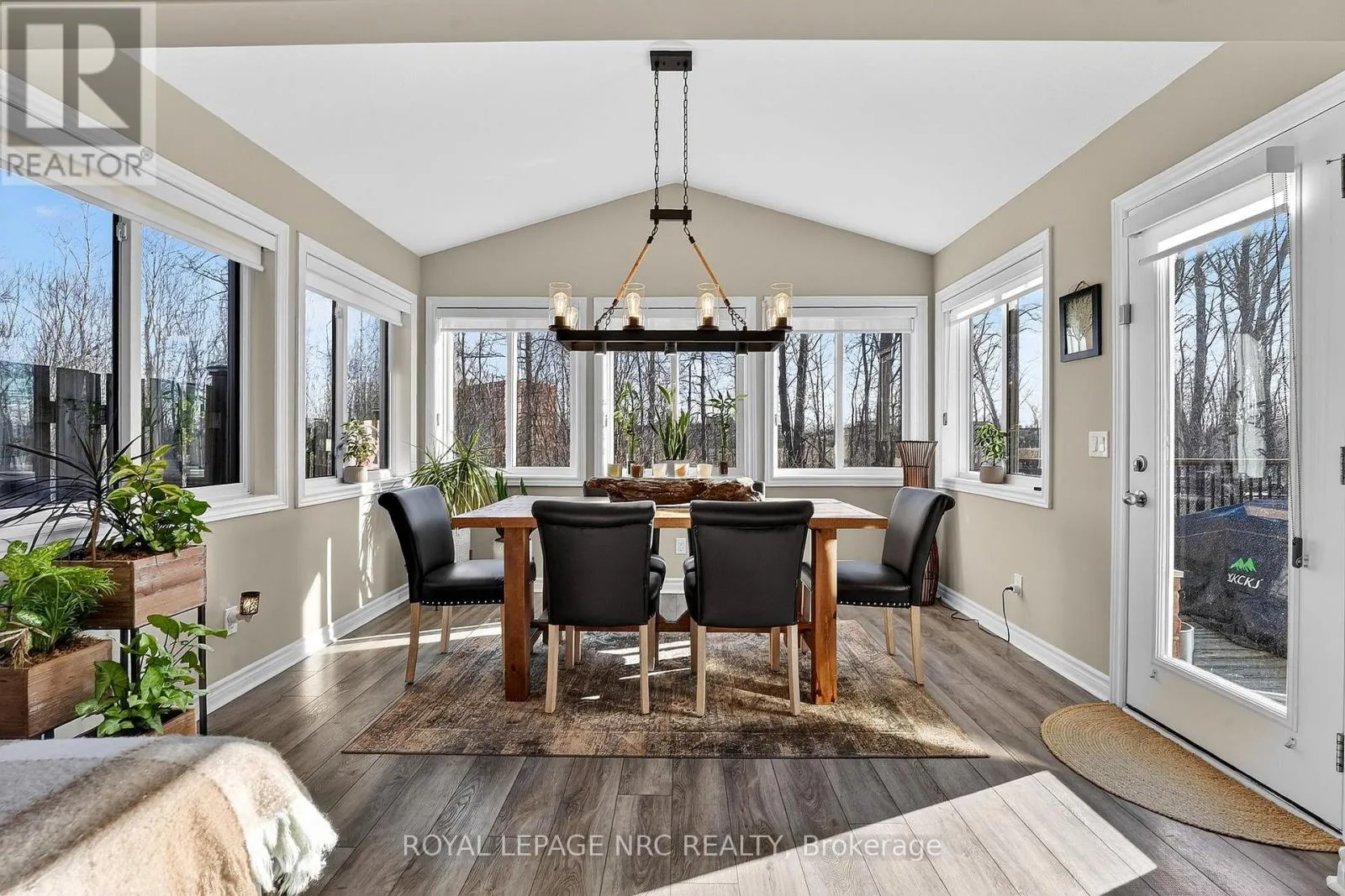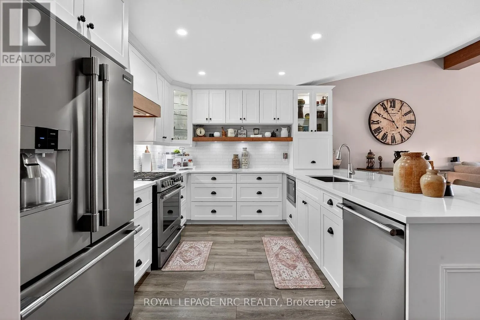 Cross Streets: Dominion & Helena. ** Directions: North on Albert from Dominion. Say hello to 9 - 660 Albert Street. This is what retirement is supposed to look like. A beautifully finished bungalow townhouse where the lawn gets cut, the snow gets shoveled, the eavestroughs get cleaned, and you have absolutely nothing to do about it. That's not a selling feature - it's the whole point. Inside, the brand new kitchen is a showstopper - white cabinetry, wood accents, clean lines, the kind of finish that makes you want to cook. Vaulted ceilings with a new faux wood beam, main-floor primary bedroom, main-floor laundry, and an additional room most units in this complex simply don't have. The fully finished basement adds nearly 1,000 more square feet of living space - family room, third bedroom, office, and a bar area. Out back, the oversized private deck looks out over a greenspace buffer with a stormwater pond beyond it. Trees, water, and only wildlife as rear neighbours staring back at you. Quietly spectacular. Condo fees cover water, building insurance, roof, windows, doors, pest control, and full outdoor maintenance. You're not paying for a gym you'll never use. You're getting a life with a shorter to-do list. Book your private showing today. (id:27476)