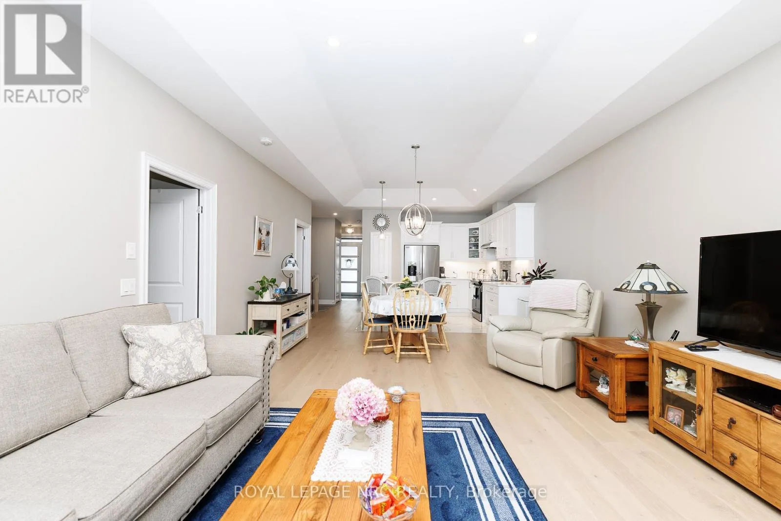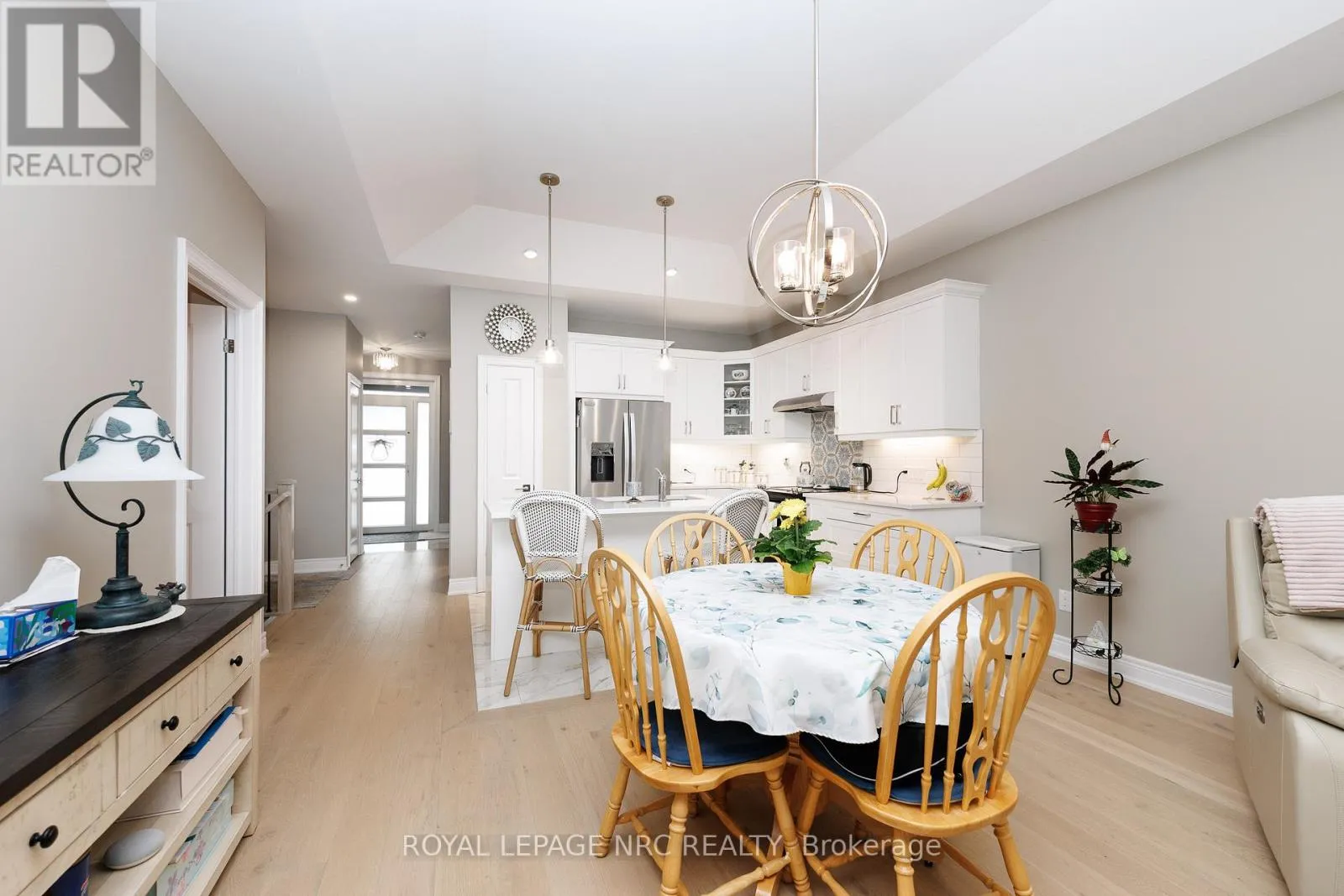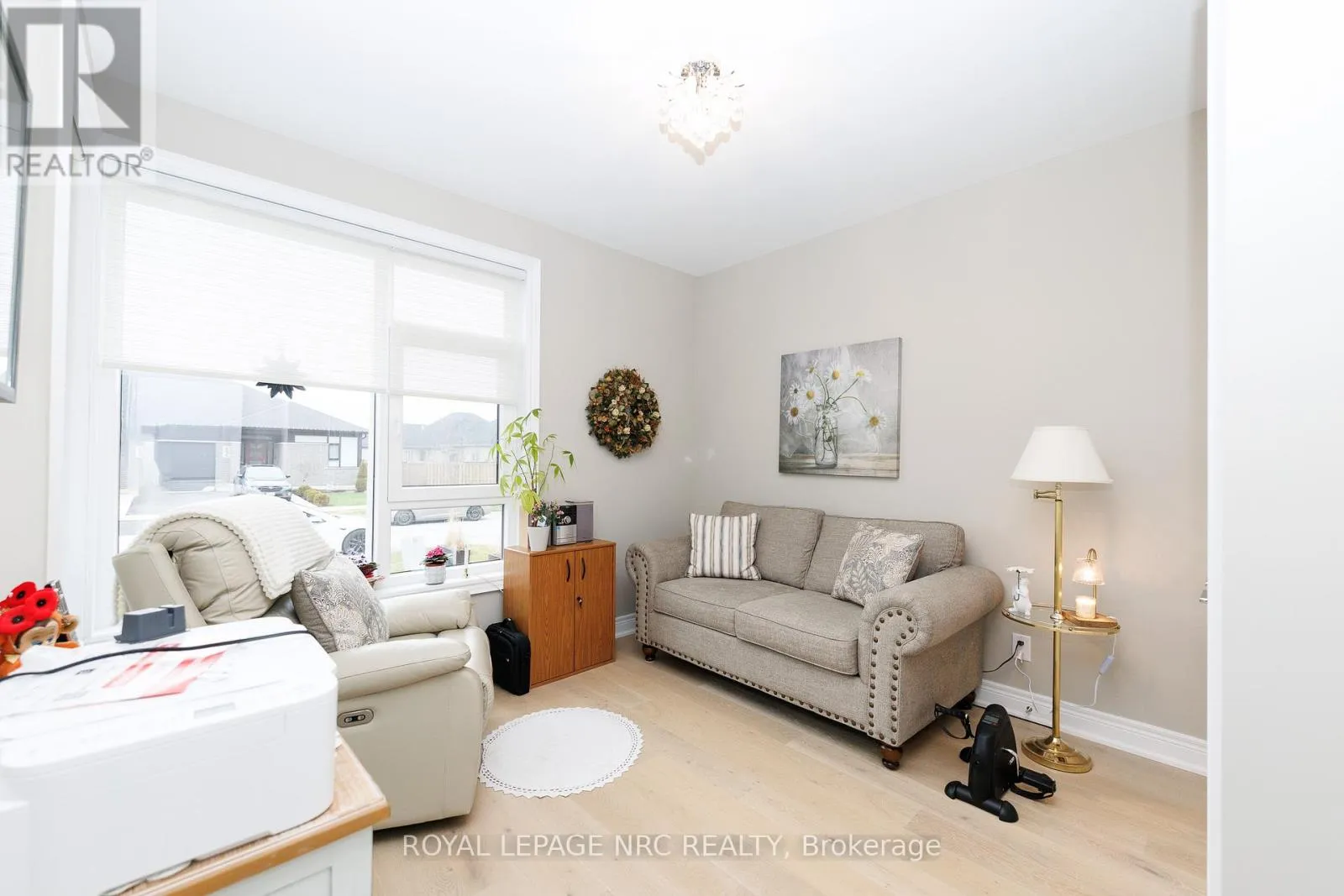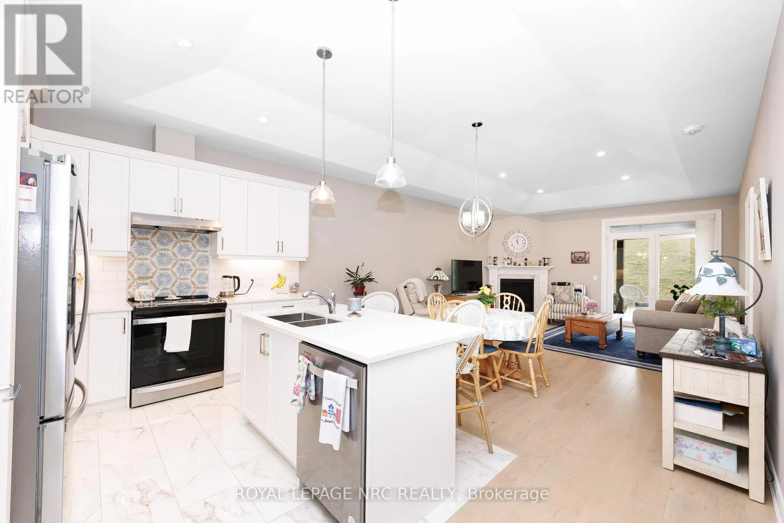 Cross Streets: West Main St. ** Directions: Old Mill Rd to Village Creek Dr. Welcome to this beautifully maintained 4-year-old freehold bungalow townhouse in the sought-after Towns of Village Creek Estates with no rear neighbors for added privacy. This home features 2 spacious bedrooms and 2 full bathrooms, along with the convenience of main floor laundry. The bright, open-concept layout is enhanced by 9' ceilings and an elegant tray ceiling in the main living area. The modern kitchen is sure to impress with ample custom cabinets, quartz countertops, stylish backsplash, under-cabinet lighting, and a functional breakfast bar island-ideal for both everyday living and entertaining. The spacious great room boasts a cozy gas fireplace and a garden door that leads to a covered patio. Retreat to the primary bedroom featuring a large walk-in closet and a private ensuite complete with double vanity and a tiled glass shower. A second bedroom and additional full bathroom provide flexibility for guests or a home office. The unfinished basement offers incredible potential, already framed for a recreation room and bedroom, with a 3-piece bathroom rough-in and a 4 ft acrylic shower in place-making it easy to customize to your needs. Located in a quiet, friendly neighborhood, this home is within walking distance to the Stevensville Conservation Area and local shops, with quick access to the QEW for commuters. Experience peaceful living in the heart of Stevensville's Village Creek Estates-this is one you won't want to miss! (id:27476)