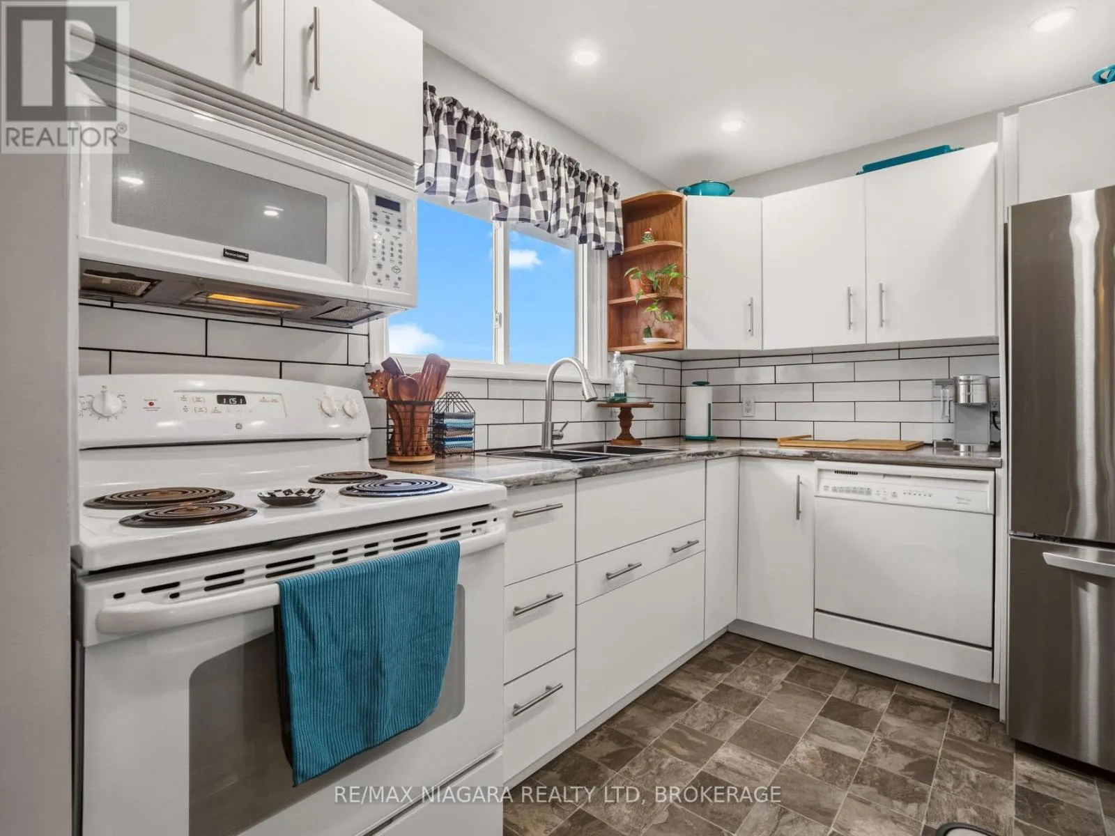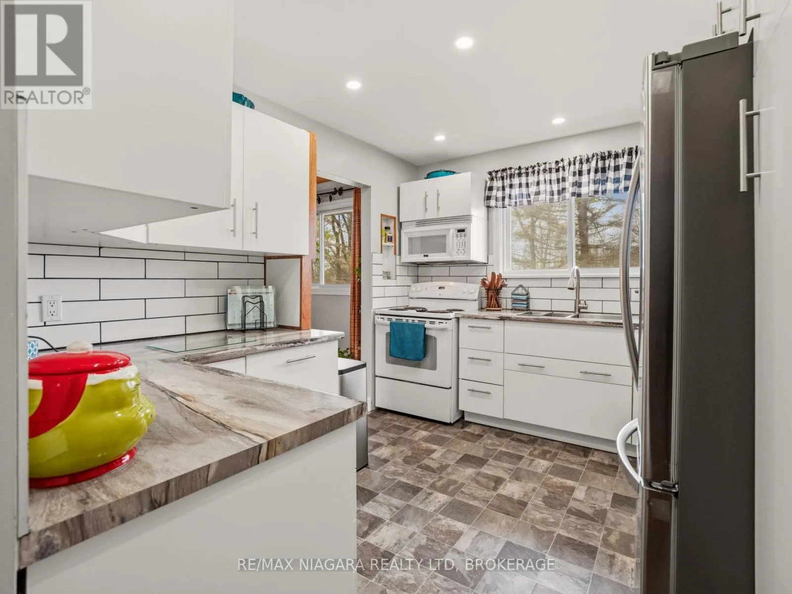 Cross Streets: GARRISON. ** Directions: GARRISON TO RIDGE ROAD NORTH. Discover the perfect balance of rural tranquility and modern convenience, ideally situated just minutes from Crystal Beach and the scenic Lake Erie shoreline, with easy access to the Queen Elizabeth Way and Highway 3 for effortless commuting. This inviting property offers privacy, space, and thoughtful updates, making it an exceptional opportunity for comfortable year-round living. The main level features a tastefully updated kitchen, seamlessly connected to a bright combined living and dining area-ideal for both everyday living and entertaining. Three well-proportioned bedrooms and a full bathroom complete this level, offering functional and welcoming accommodations. The fully finished lower level expands the home's versatility with a spacious family room anchored by a cozy wood-burning stove. Additional highlights include a laundry area, convenient two-piece bathroom, an enclosed three-season sunroom, and a dedicated workshop with two separate entrances. With its layout and private access, the lower level presents excellent potential for an in-law suite or a home-based business setup. Outdoors, the property continues to impress with an oversized driveway accommodating 6-8 vehicles, a 30-amp RV plug, multiple storage sheds, covered front porch, three season room off the back of the recreation room and a beautifully treed lot providing both shade and seclusion. With no rear neighbors, you can enjoy enhanced privacy and peaceful surroundings. Extensive upgrades ensure long-term value and peace of mind, including 50-year fiberglass shingles (2013), a new septic system and weeping field (2019), a fully renovated kitchen with new refrigerator (2021), new lower-level windows (2021), a high-efficiency furnace and central air system (2022), and a new washer and dryer (2023).This property presents a rare opportunity to enjoy serene living with flexible use potential, all while remaining close to key amenities and major transportation routes. (id:27476)