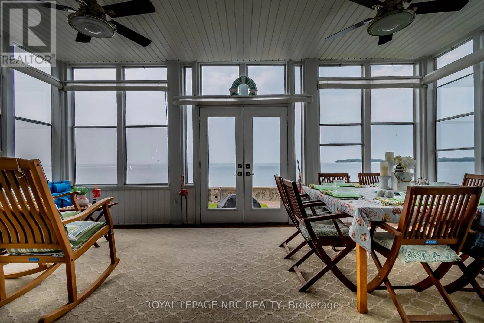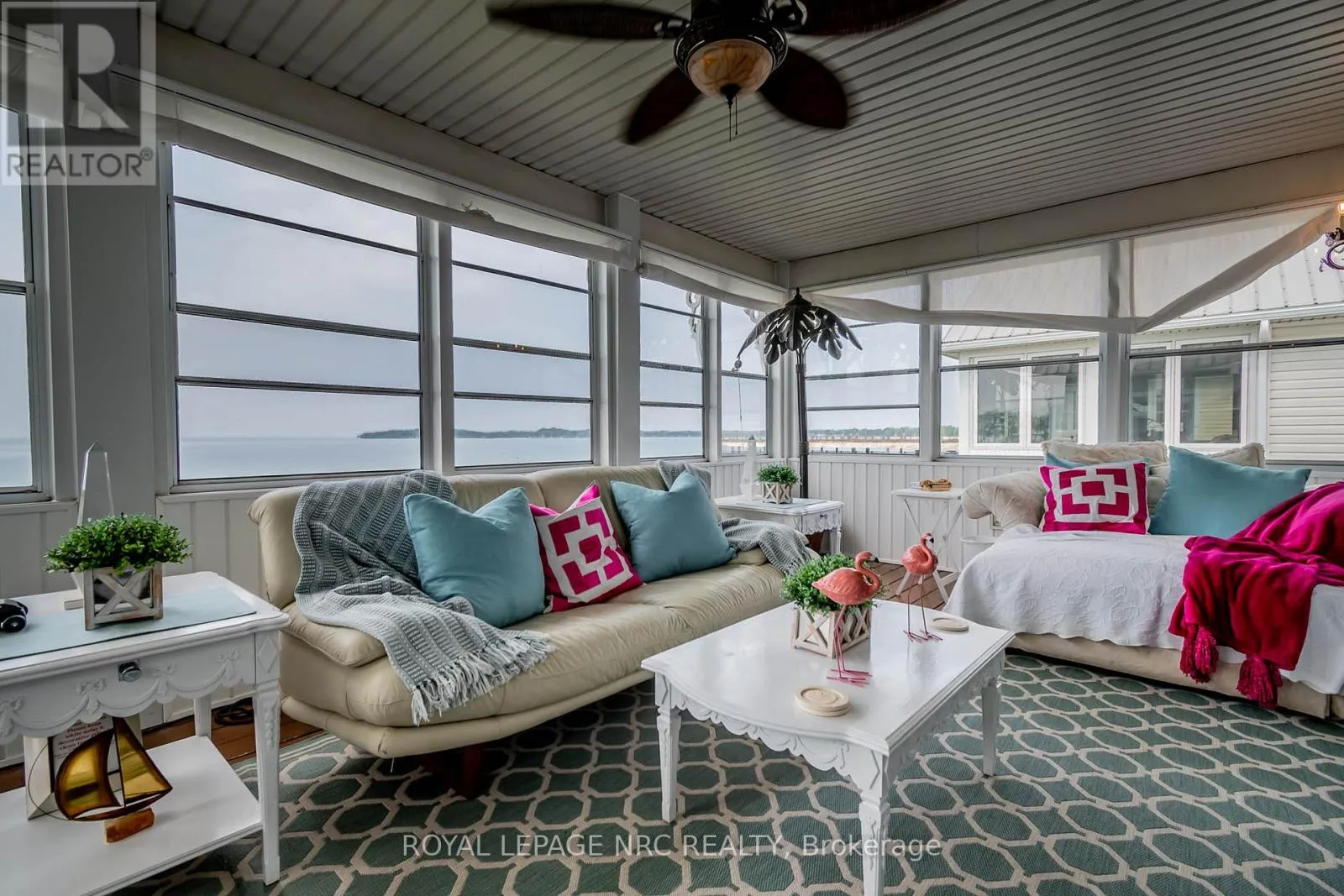 Cross Streets: Mariners Lane. ** Directions: QEW towards FORT ERIE to exit 16 Sodom Rd. Turn Right to follow road through to Crystal Beach Tennis & Yacht Club. Private Gated Community. Once through gate Left on Nantuckett, Left on Mariners Lane, Right on Promenade Way. OFFERING FULLY FURNISHED (some exclusions apply - see Schedule C), LUXURIOUS LAKEFRONT LIVING at 23 Promenade Way, nestled within the prestigious Crystal Beach Tennis & Yacht Club on the shores of Lake Erie. This beautifully upgraded two-storey resort home boasts magnificent water views throughout. The open-concept main floor features a gourmet kitchen with built-in appliances, granite countertops, and enhanced cabinetry. Perfect for entertaining or relaxing, the great room flows seamlessly into a three-season sun porch, ideal for enjoying morning coffee or breathtaking sunsets. A convenient main floor laundry and 2-piece bath add to the ease of living. Upstairs, find two spacious bedrooms, including a primary suite with its own enclosed sunroom offering serene sunrise views and the soothing sounds of the lake. The finished basement provides two versatile bonus rooms (currently bedrooms), a 3-piece bathroom, and ample storage. Outside, enjoy a charming front porch, a second-floor balcony, a low-maintenance exterior with 2019 hardboard siding and updated roof rivets, and an outdoor shower. A private beach is easily accessible via your included golf cart. The property also features an interlock driveway and patio with a gas BBQ hook-up. Recent upgrades include, AC July 2025, 2020 furnace and 2019 interior paint. this is an exceptional opportunity to own waterfront property on Canada's South Coast. Explore the governing documents at cbtyc.com and take the multimedia tour. Don't delay book your private viewing today. (id:27476)