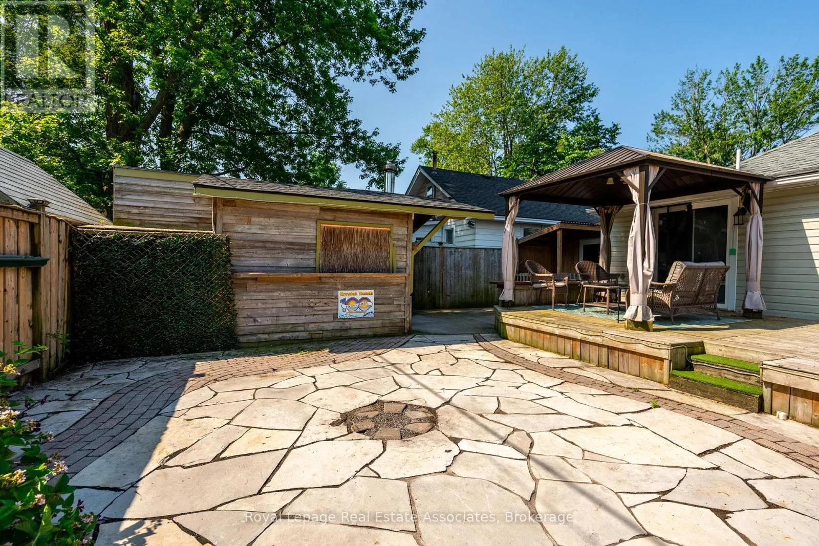 Ridgeway Rd / Brewster Rd Welcome to Crystal Beach Living! This charming 2-bedroom, 1-bath bungalow is located just a 10-minute walk to the shores of Crystal Beach and the vibrant Erie Road strip. Thoughtfully updated with stylish finishes, hardwood floors, and an open-concept layout, the home offers both comfort and character in every corner. Step outside to your fully landscaped backyard oasis, complete with a "Finnish" outdoor shower, fully insulated Tiki bar and fully insulated guest Bunkie with electrical rough-in, and multiple lounge areas perfect for summer entertaining or peaceful relaxation. Whether you're a first-time buyer, downsizer, or investor, this property checks all the boxes. Just 20 minutes to Niagara Falls and 10 minutes to the U.S. border, this home is ideally situated in a town designed for tourism, making it a fantastic income-generating opportunity or a low-maintenance vacation home. Turnkey. Incredible location. Excellent investment potential. Don't miss your chance to live or invest in one of Niagara's most sought-after beach towns! Basement insulation updated '21, roof '16, eavestroughs '21, Bunkie '21, Bunkie roof '24, washer & dryer '22, microwave '24, fridge '24, furnace '17, water heater '20. (id:27476)