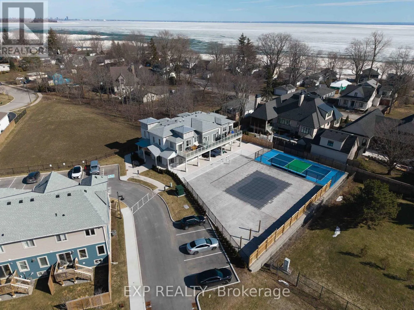 Cross Streets: Ryan Avenue. ** Directions: Ridge Road to Ryan Avenue to Shores Lane. Welcome to easy coastal living steps from Crystal Beach! This stunning 2-year-old condo offers the perfect blend of modern comfort and a relaxed lakeside lifestyle. Start your mornings with a walk along the beach and end your evenings watching spectacular sunsets from your private balcony. Inside, the bright and spacious layout features 9-foot ceilings, large sun-filled windows, and premium upgrades throughout, including a cozy electric fireplace that adds warmth and style to the living space. The open-concept design creates an inviting atmosphere that's perfect for both relaxing and entertaining. This move-in-ready home is ideal for downsizers, retirees, or anyone looking to enjoy a peaceful lifestyle near the water without sacrificing convenience. Same-floor laundry makes everyday living effortless, while the balcony off the dining area provides the perfect place to unwind. Residents also enjoy access to fantastic amenities, including a new clubhouse with a fireplace (which can be used as an office space or for parties), an in-ground outdoor pool with loungers, and pickleball courts (2025), making it feel like a private resort. Located just 20 minutes from the Peace Bridge and QEW, this property offers easy access for commuters or weekend escapes. Don't miss your chance to own a beautiful condo in one of Crystal Beach's most desirable communities - where every day feels like a vacation. (id:27476)