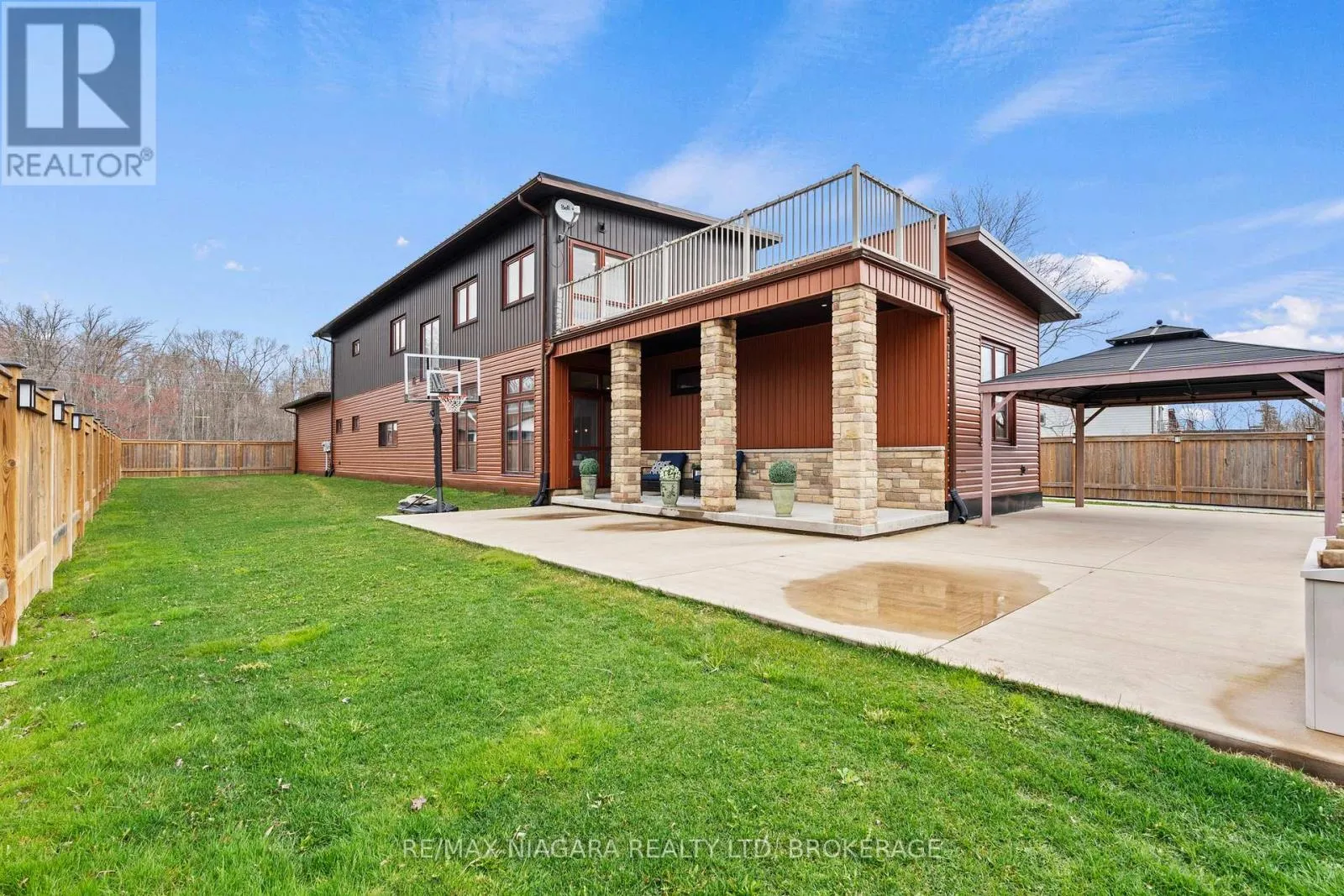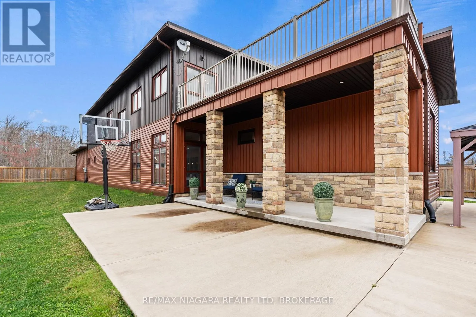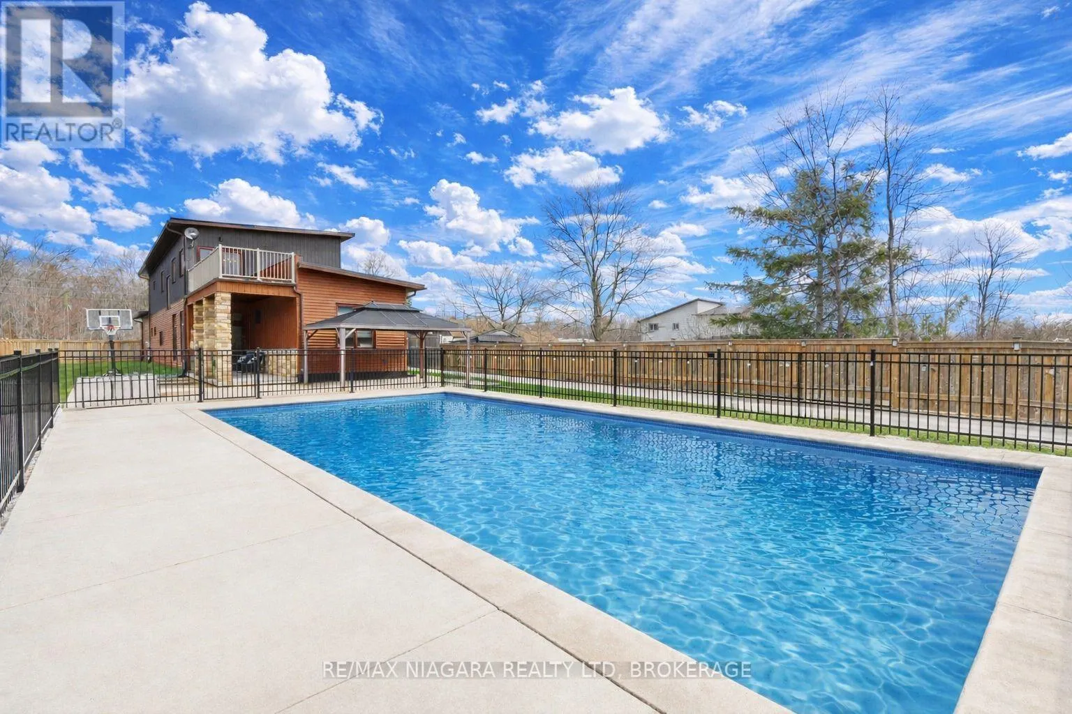 From Hwy 3 to Rosehill Dr., right onto Dominion Rd. You'll never need to go to Muskoka or Florida again with a backyard like this. Featuring a 3-year-old inground heated pool, complete privacy backing onto forest, this is one of those rare, one-in-a-million properties that just doesn't come along often.Custom built in 2021, Scandinavian-inspired 2-storey offering just over 3,200 sq ft on just under an acre, and located steps from the Friendship Trail, a short walk to Lake Erie, and minutes to beaches, schools, and shopping.The layout is super functional, especially with a main floor bedroom that has its own full ensuite - perfect for guests, in-laws, or anyone who wants to avoid stairs.The main floor is bright and open with 10 ft ceilings, oversized Euro windows, and 8 ft custom doors throughout. The kitchen is loaded with black stainless appliances, induction cooktop, dual ovens, walk-in pantry, pot filler, apron sink, and a large quartz island that flows right into a dining space built for big family gatherings. There's also a great room with a gas fireplace and walkout to the backyard, plus laundry, a powder room, and inside access to the garage.Upstairs offers three additional bedrooms, two with balconies, along with a large landing and a primary suite with a spa-style ensuite featuring a double shower.Heating is handled by a Viessmann in-floor system running throughout the entire home and garage, with forced air as a backup option.Outside, the yard is fully fenced, there's a newer concrete patio, and the oversized asphalt driveway runs deep into the property giving you tons of space.If you're looking for something cookie-cutter, this isn't it - this is privacy, lifestyle, and a setup that actually delivers. (id:27476)