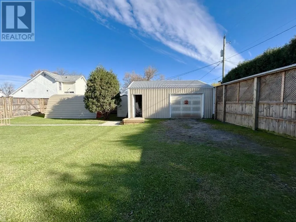 Between Minnie Ave & Williams Ave Excellent Location & Layout! East End bungalow with so much to offer! Convenient 1-level living with spacious entrance, eat-in kitchen (updated counter tops, hardware, backsplash, and flooring); 4 pce bathroom (updated in 2023); Primary bedroom can accommodate a king-sized bed and features his/her closets, 1 further bedroom, living room, and main floor laundry. Partial basement for utilities and storage. The backyard is amazing! Enjoy the rear deck and full privacy fencing (deck/fence: 2021/2022). The double garage, storage shed, and Quonset provide excellent work and storage space. Shingles (house: 2021), some windows (2017). F/A Gas and Central Air. Close to Riverwalk and all amenities. Move in ready for your enjoyment!! (id:27476)
