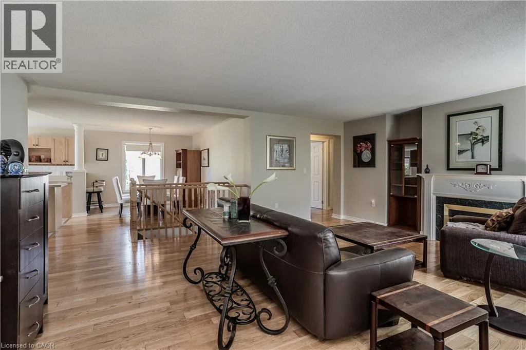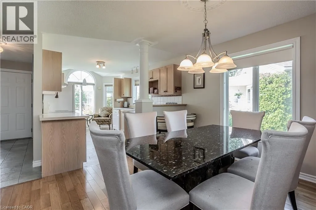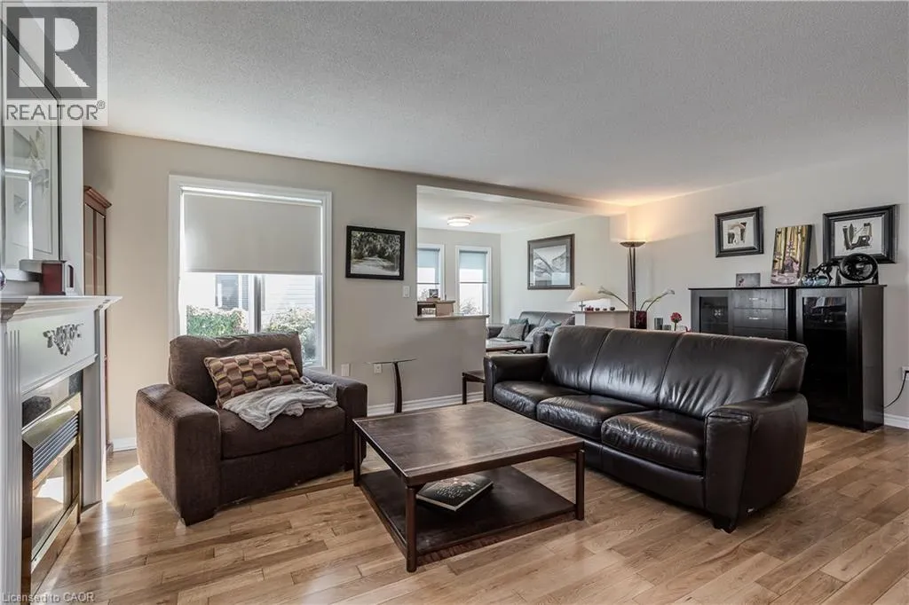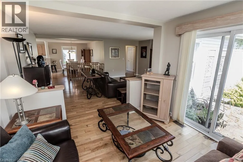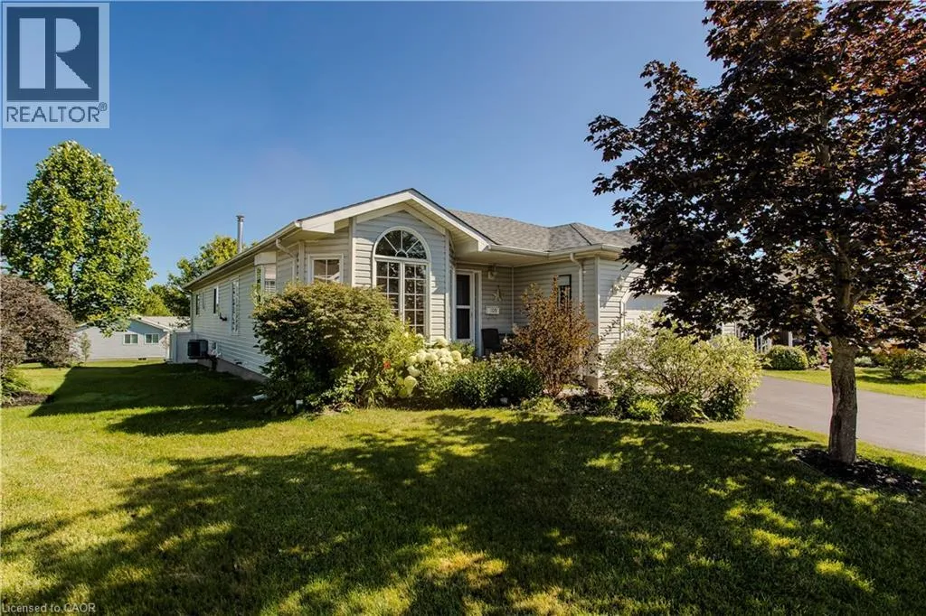 Hwy 6 to 8th Concession Rd W Welcome to this impeccably maintained bungalow nestled in the vibrant Antrim Glen 55+ community. Ideally situated on a quiet court with picturesque curb appeal. Featuring 2+1 beds 2 baths & a rare double car garage this true ground floor level bungalow is ideal for downsizers. Ideal open concept layout is flooded with natural light from the abundance of windows. The living room, adorned with a cozy fireplace (propane), invites relaxation with a versatile den/sitting area with walkout to the backyard patio. The open concept dining room is adjacent to the eat-in kitchen with ample counter and cabinet space. Main floor primary suite includes a 3pc ensuite & walk-in closet. Additional bedroom offers easy access to the 4pc bath with modified tub entry & convenient laundry on the main. Finished lower level boasts a recreation room, bedroom, workshop, and additional storage/utility spaces awaiting your personal touch. Embrace this opportunity for refined living in a supportive community with an inground pool, clubhouse, community events & more. Very reasonable Monthly Land lease of $950 + taxes of $217.38 (estimated). Don't delay on this turnkey gem! (id:27476)