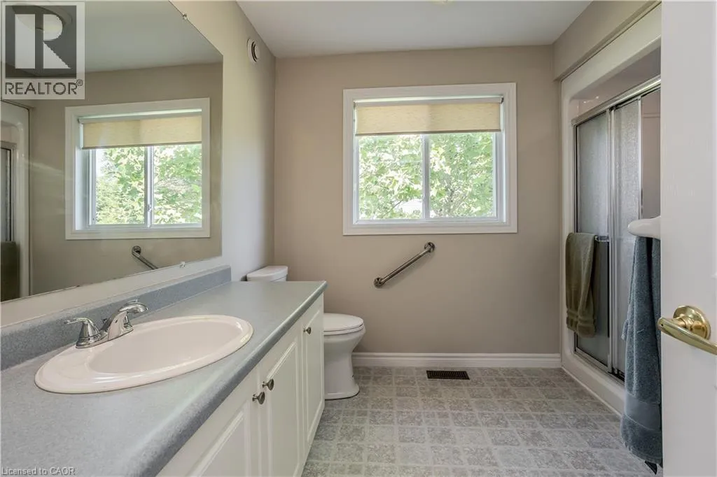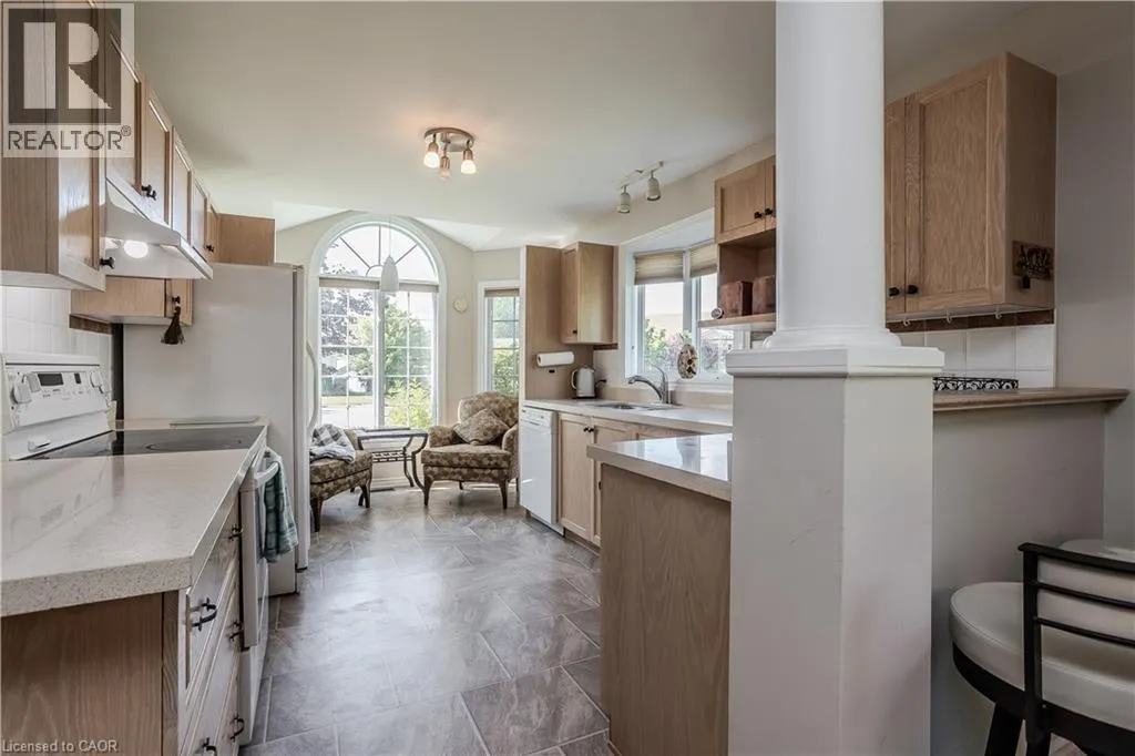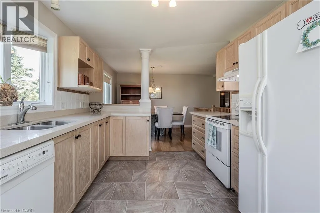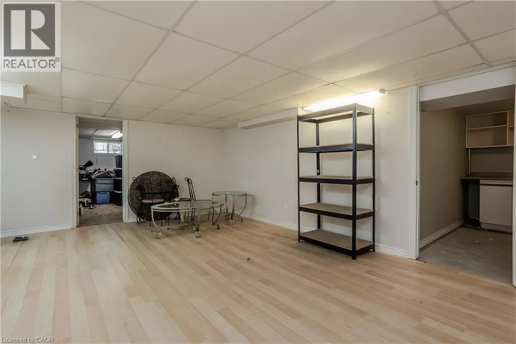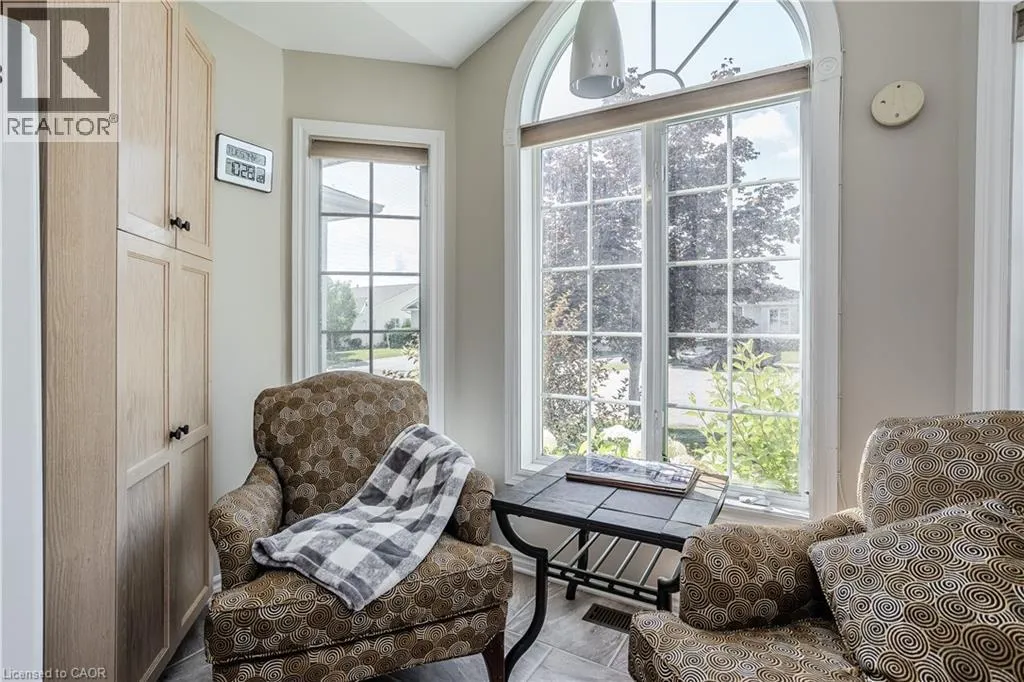 Hwy 6 to 8th Concession Rd W Welcome to this impeccably maintained bungalow nestled in the vibrant Antrim Glen 55+ community. Ideally situated on a quiet court with picturesque curb appeal. Featuring 2+1 beds 2 baths & a rare double car garage this true ground floor level bungalow is ideal for downsizers. Ideal open concept layout is flooded with natural light from the abundance of windows. The living room, adorned with a cozy fireplace (propane), invites relaxation with a versatile den/sitting area with walkout to the backyard patio. The open concept dining room is adjacent to the eat-in kitchen with ample counter and cabinet space. Main floor primary suite includes a 3pc ensuite & walk-in closet. Additional bedroom offers easy access to the 4pc bath with modified tub entry & convenient laundry on the main. Finished lower level boasts a recreation room, bedroom, workshop, and additional storage/utility spaces awaiting your personal touch. Embrace this opportunity for refined living in a supportive community with an inground pool, clubhouse, community events & more. Very reasonable Monthly Land lease of $950 + taxes of $217.38 (estimated). Don't delay on this turnkey gem! (id:27476)