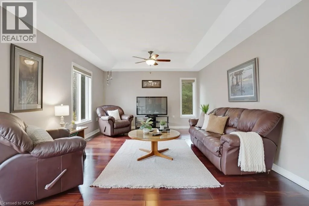 AG: 1264 Concession 8 W - Antrim Glen Looking for affordable luxury in an active adult community? Welcome to 117 Bushmill Circle located in in Antrim Glen - a Parkbridge Adult Lifestyle Community located in a peaceful rural setting, yet only 15 minutes to Cambridge or Waterdown. This custom designed home takes advantage of its private court setting and wooded backdrop with no rear neighhbour. The manicured gardens add curb appeal as you walk up to the front door and covered porch area finished in exposed aggregate cement. The 1667 Sq. Ft. main floor with an additional 1050 Sq. Ft of finished living space in the lower level ensures comfort along with spaciousness. The modern kitchen opens to the oversized family room with its vista views and access to the exposed aggregate patio taking advantage of privacy and the properties natural setting. The primary suite naturally has its own private bath and full walk in closet. The finished lower level offers lots of opportunity to entertain with its large open space, fireplace, spare bedroom or den and full bathroom. The double car garage and double wide drive way ensures convenient parking options. Antrim Glen is more than just a place to live; it's a lifestyle. Residents enjoy access to an array of amenities, including a community centre, heated saltwater pool, and various organized activities that foster a lively and engaging environment. Monthly fees of $1208.36 includes property taxes and unlimited access to these exceptional amenities. Antrim Glen provides a quiet and safe environment where neighbours become friends, creating a social and safe environment to call home. Whether you're looking to relax by the pool, socialize with fellow residents, or simply enjoy the tranquility of your own home don't miss this opportunity to experience the perfect blend of independence, community, and luxury. Schedule your private tour today! (id:27476)