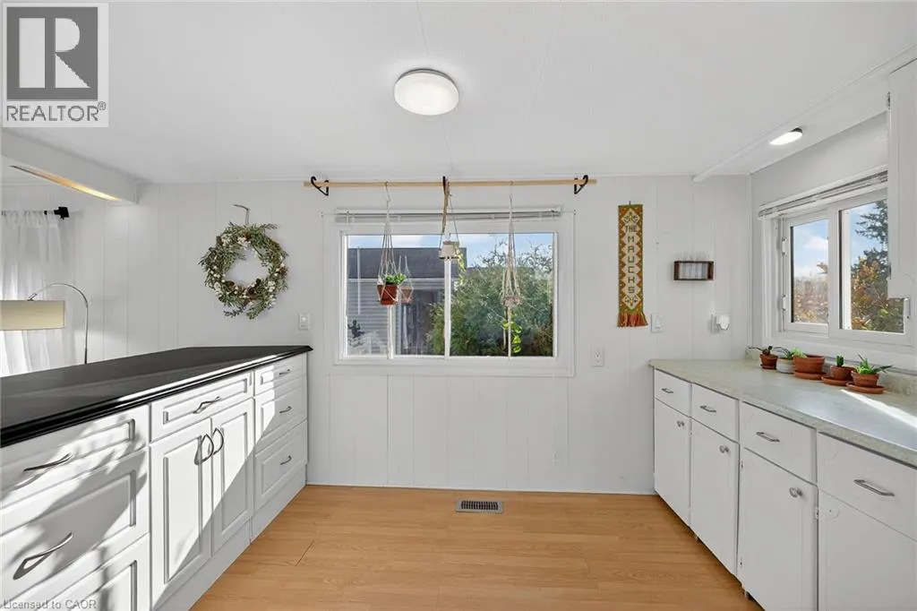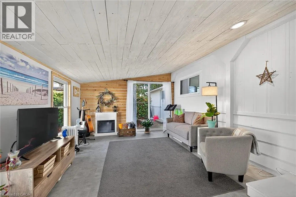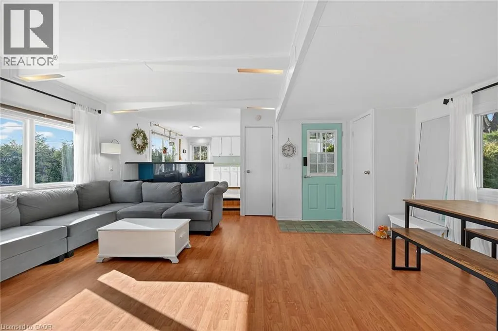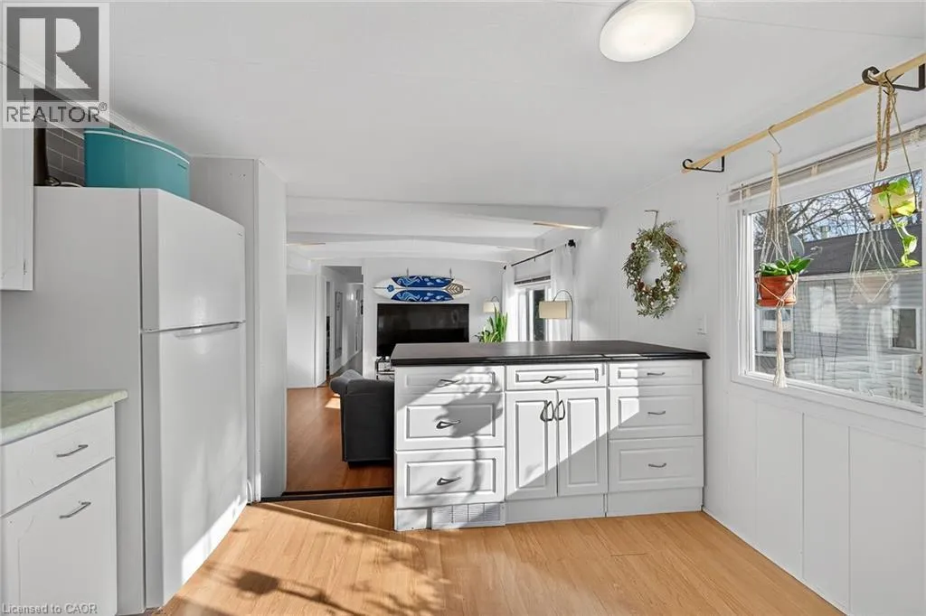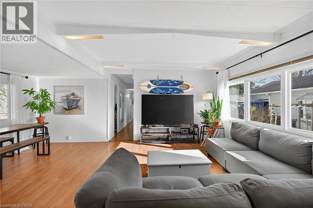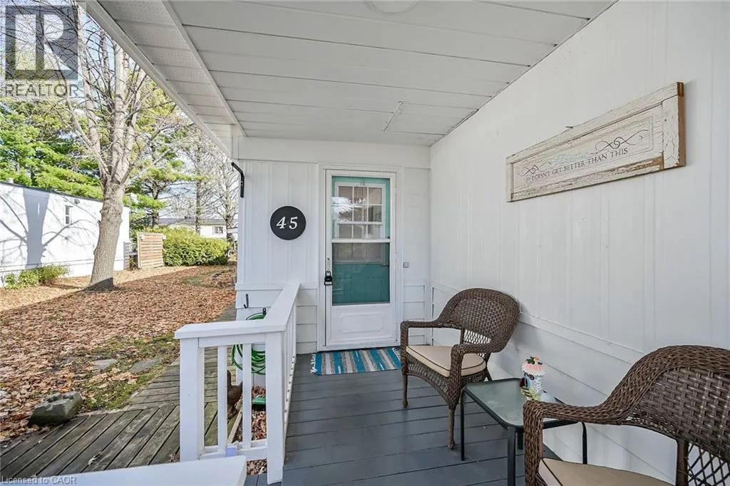 FOLLOW CONCESSION 8 ROAD WEST TO 1294 CONCESSION 8 (BEVERLY HILL ESTATES) TURN ONTO ENTRY ROAD - PARK LANE, FOLLOW TO UNIT 45 Enjoy worry free living at Beverly Hills Estate Park ideally located minutes west of Hwy 6 - central to Hamilton, Cambridge & Guelph plus easy access to the 401, 403 & QEW - less than 60 minutes to the GTA. This incredibly well priced package includes beautifully presented manufactured home situated on one the Parkâs prime lots offering 1,092sf of bright, freshly painted/redecorated living space highlighted with open concept kitchen sporting ample cabinetry, pantry, handy peninsula & modern pull-out drawer features - segues to comfortable living room / dining room area complimented with vaulted ceilings & recently installed low maintenance flooring. Floor plan continues to updated 3pc bath incorporating convenient laundry station- with hallway corridor leading to large primary bedroom, roomy guest bedroom, office or possible 3rd bedroom - completed with sought after all-seasons family room/sun room wing boasting wall to wall windows, vaulted ceilings, stylish feature wall showcasing fireplace & patio door rear yard walk-out. A row of mature street side cedars ensuring natural privacy extending to fenced rear yard allowing for outdoor family activities. The established, well managed Park complex includes walking/biking trails, play park, scenic pond area, community water & sewers. Notable upgrades - p/gas furnace/AC-2022 & all appliances. Reasonable $800.92 monthly fees include Land Lease Fee & Property Taxes (for Structure & Lot) - Buyer responsible for metered water/sewer, hydro, heat & building/content insurance costs. Prospective Buyers must be approved by Beverly Hills Estate Park Ownership (PARKBRIDGE LIFESTYLE COMMUNITIES INC.). Perfect venue for 1st Time Buyers, Retirees or Anyone searching for a Country Life-style at a price more affordable than renting! (id:27476)