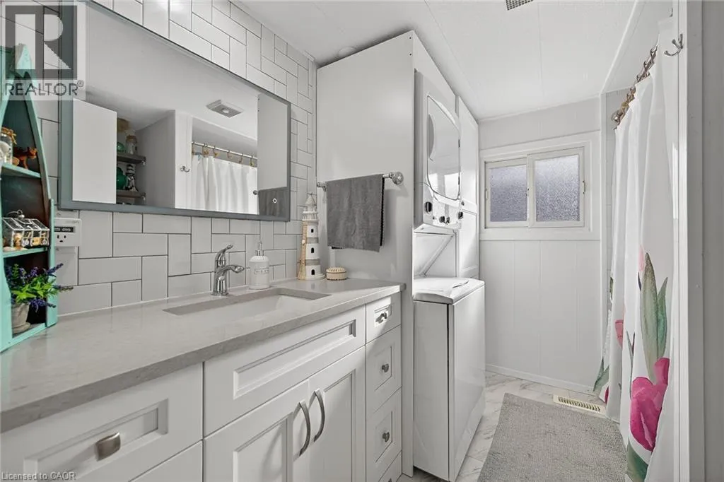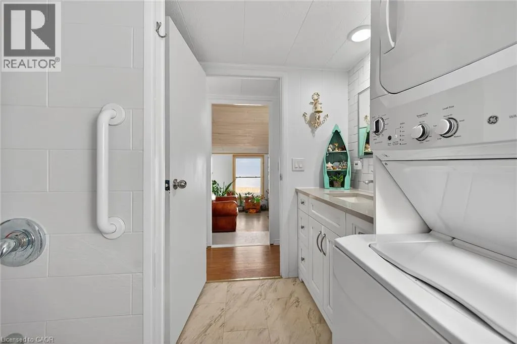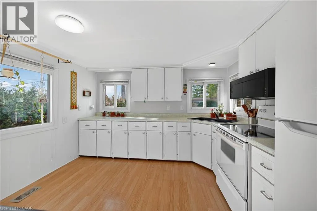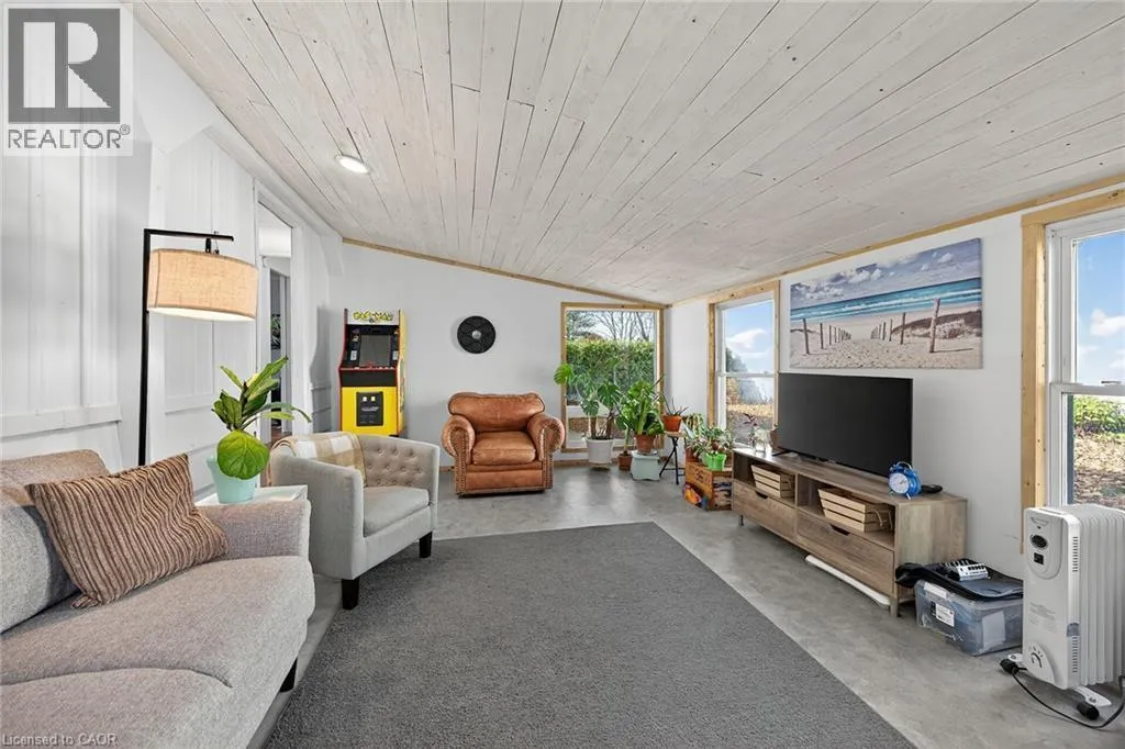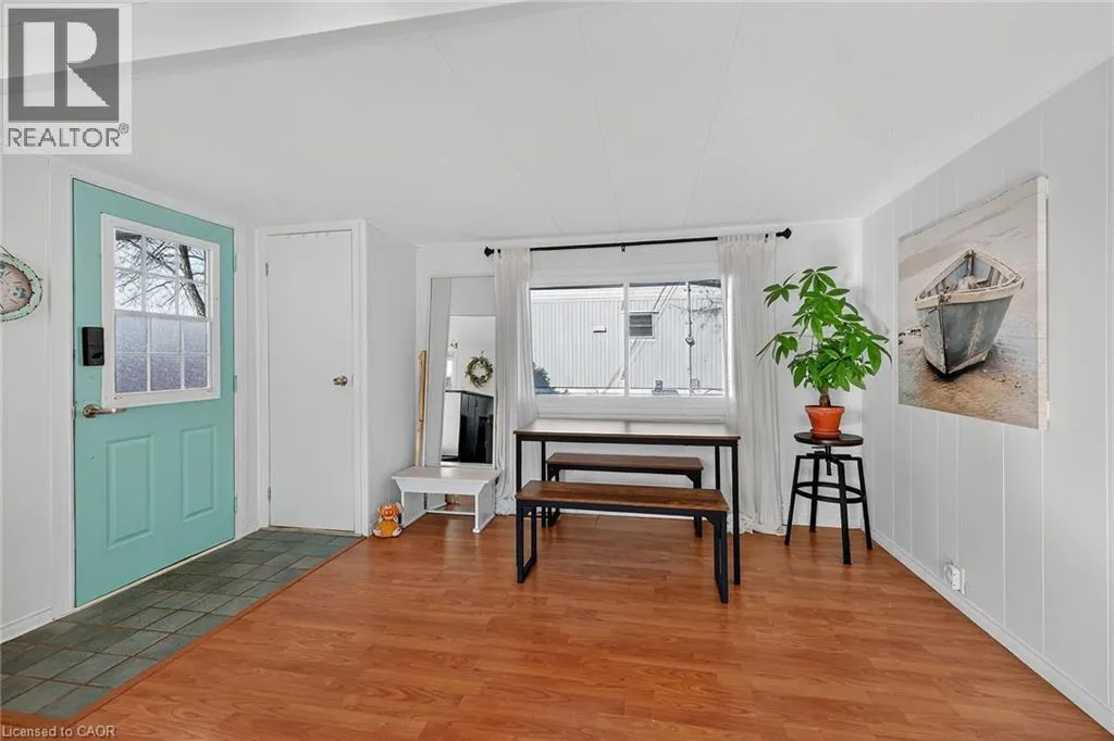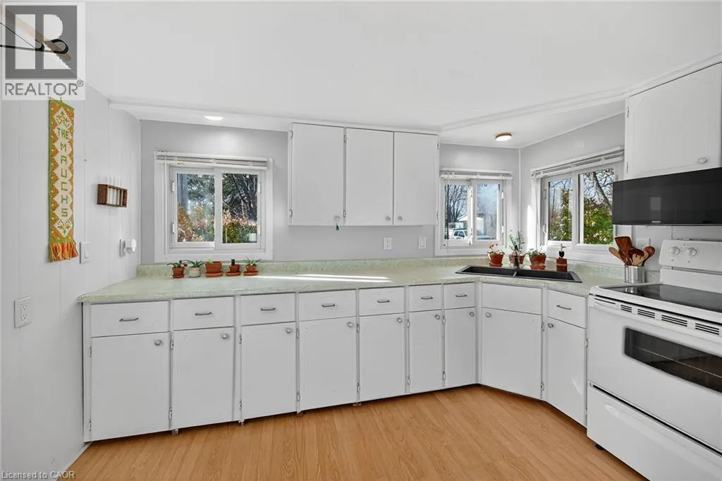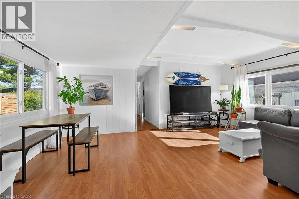 FOLLOW CONCESSION 8 ROAD WEST TO 1294 CONCESSION 8 (BEVERLY HILL ESTATES) TURN ONTO ENTRY ROAD - PARK LANE, FOLLOW TO UNIT 45 Enjoy worry free living at Beverly Hills Estate Park ideally located minutes west of Hwy 6 - central to Hamilton, Cambridge & Guelph plus easy access to the 401, 403 & QEW - less than 60 minutes to the GTA. This incredibly well priced package includes beautifully presented manufactured home situated on one the Parkâs prime lots offering 1,092sf of bright, freshly painted/redecorated living space highlighted with open concept kitchen sporting ample cabinetry, pantry, handy peninsula & modern pull-out drawer features - segues to comfortable living room / dining room area complimented with vaulted ceilings & recently installed low maintenance flooring. Floor plan continues to updated 3pc bath incorporating convenient laundry station- with hallway corridor leading to large primary bedroom, roomy guest bedroom, office or possible 3rd bedroom - completed with sought after all-seasons family room/sun room wing boasting wall to wall windows, vaulted ceilings, stylish feature wall showcasing fireplace & patio door rear yard walk-out. A row of mature street side cedars ensuring natural privacy extending to fenced rear yard allowing for outdoor family activities. The established, well managed Park complex includes walking/biking trails, play park, scenic pond area, community water & sewers. Notable upgrades - p/gas furnace/AC-2022 & all appliances. Reasonable $800.92 monthly fees include Land Lease Fee & Property Taxes (for Structure & Lot) - Buyer responsible for metered water/sewer, hydro, heat & building/content insurance costs. Prospective Buyers must be approved by Beverly Hills Estate Park Ownership (PARKBRIDGE LIFESTYLE COMMUNITIES INC.). Perfect venue for 1st Time Buyers, Retirees or Anyone searching for a Country Life-style at a price more affordable than renting! (id:27476)