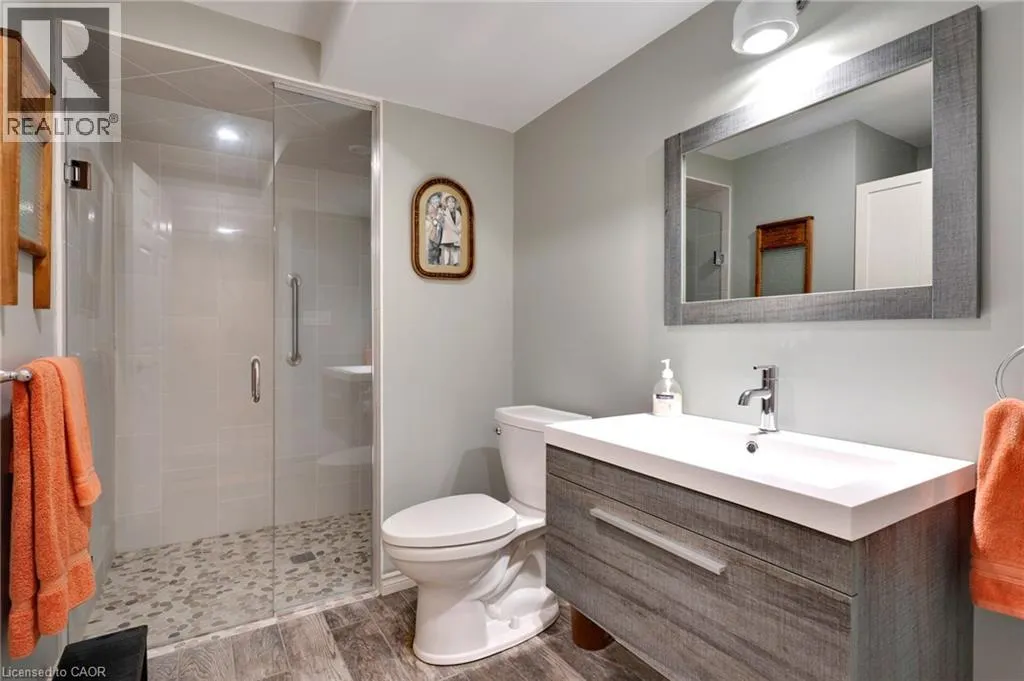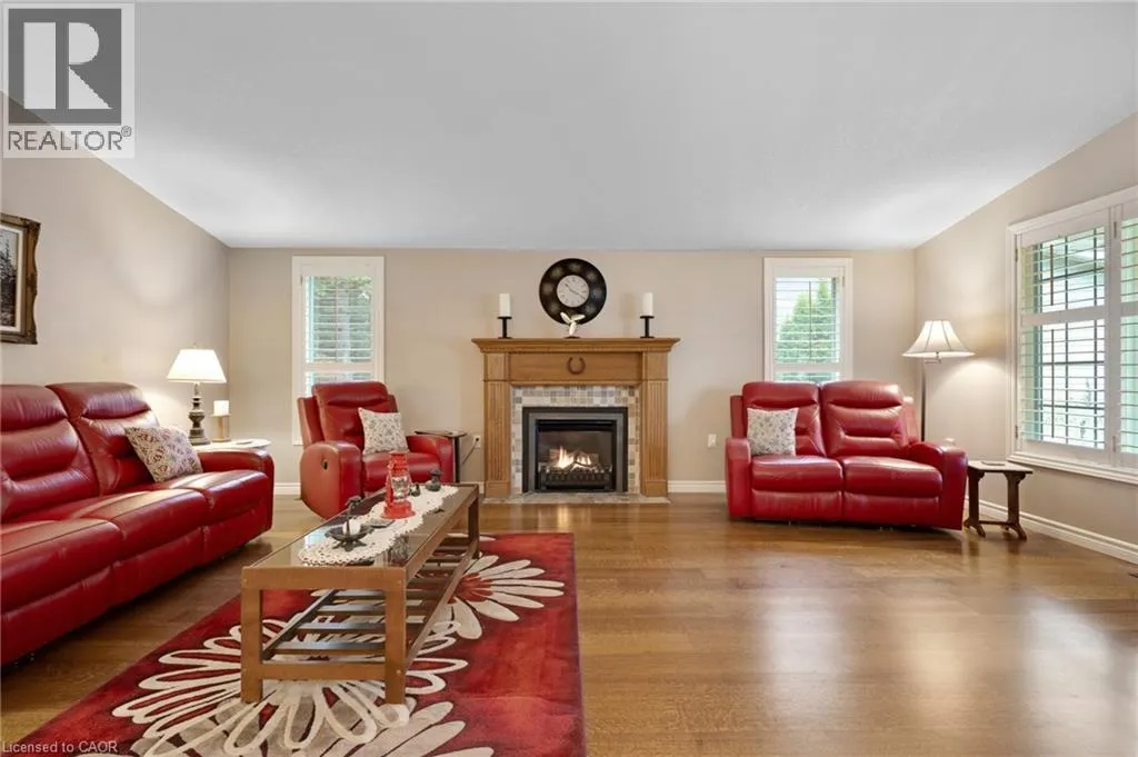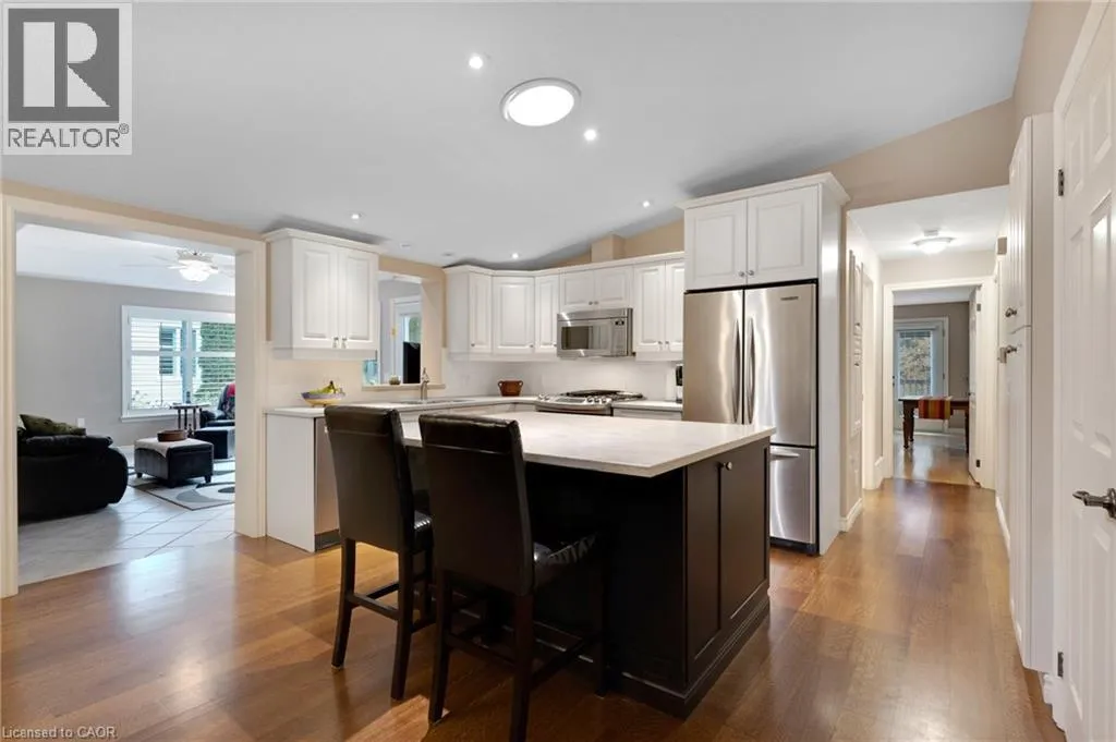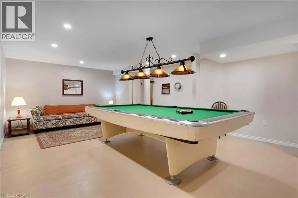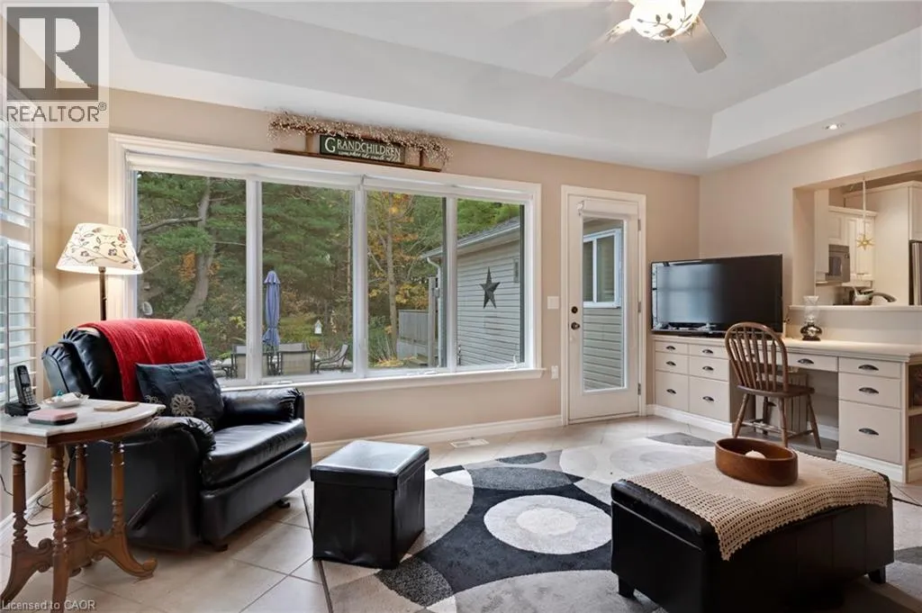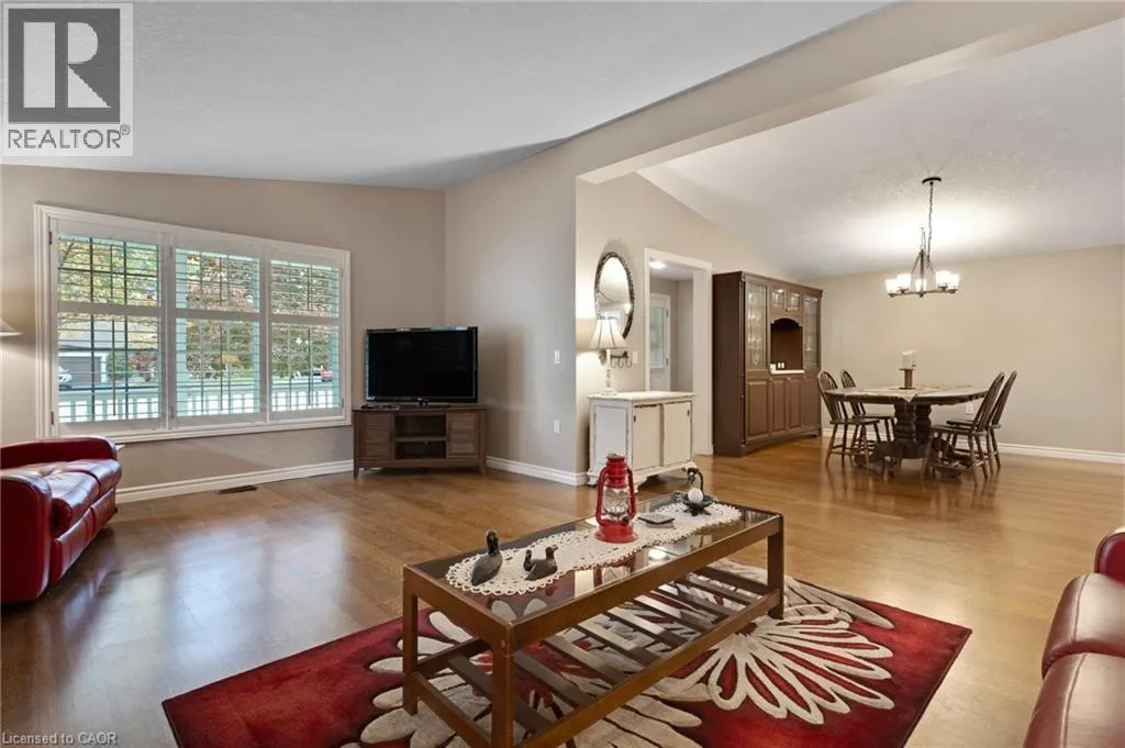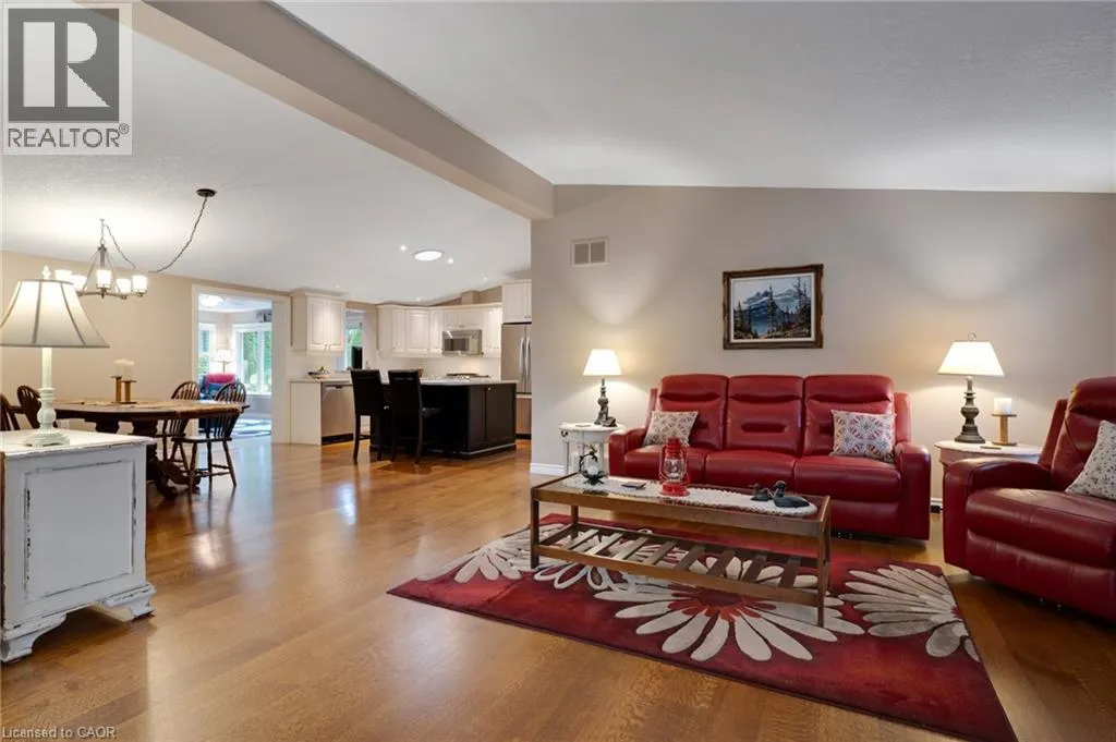 1264 Concession 8 W - Antrim Glen Elevated Adult Living Awaits! Discover what the popular adult lifestyle community of Antrim Glen has to offer. Situated in a tranquil rural setting, yet a scenic 15-minute drive to the conveniences of Cambridge or Waterdown, this location truly offers the best of both worlds. This well maintained custom home checks every box: a double-car garage, a fully finished basement, and a serene, unobstructed view of nature with no rear neighbours. Step inside to an inviting open-concept layout featuring vaulted ceilings & quality hardwood floors in the generous 1,670 Sq. Ft. main level. The heart of the home is the stylish, custom kitchen, which anchors the large living room & dining room plus provides an effortless flow into the bright, east-facing sunroom. Directly off the sunroom, a large private patio offers the ideal spot for morning coffee or evening entertaining, surrounded by the tranquility of the natural woodlot. The generous primary suite is designed as a true retreat, complete with a spacious walk-in closet and an updated luxury ensuite featuring a walk-in glass shower. The second bedroom is strategically positioned with access to a private deck overlooking nature. The trundle bed allows flexibility; guest suite or quiet home office. Spacious comfort is assured with an additional 1,040 Sq. Ft. of finished living space downstairs. The lower level offers incredible versatility, featuring a large family room for secondary entertaining, a dedicated games room, a three-piece bathroom, and an additional third bedroom, plus a dedicated workshop. As a resident of Antrim Glen, you gain access to an array of exceptional amenities designed to foster a lively & engaging social environment. Monthly land lease fees of $1,225.86 include property taxes and full access to facilities. Enjoy the community centre, the heated saltwater pool, & various organized activities where neighbours easily become friends. Schedule your private tour today! (id:27476)