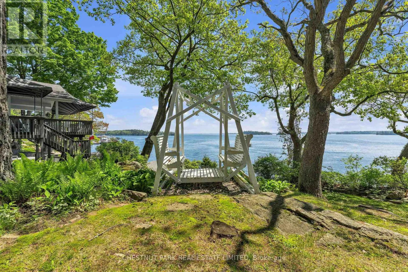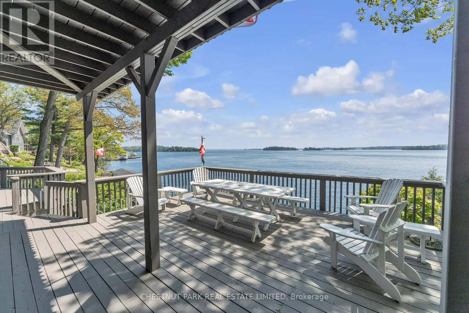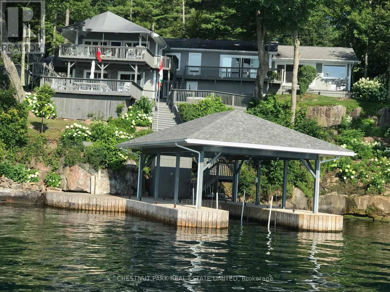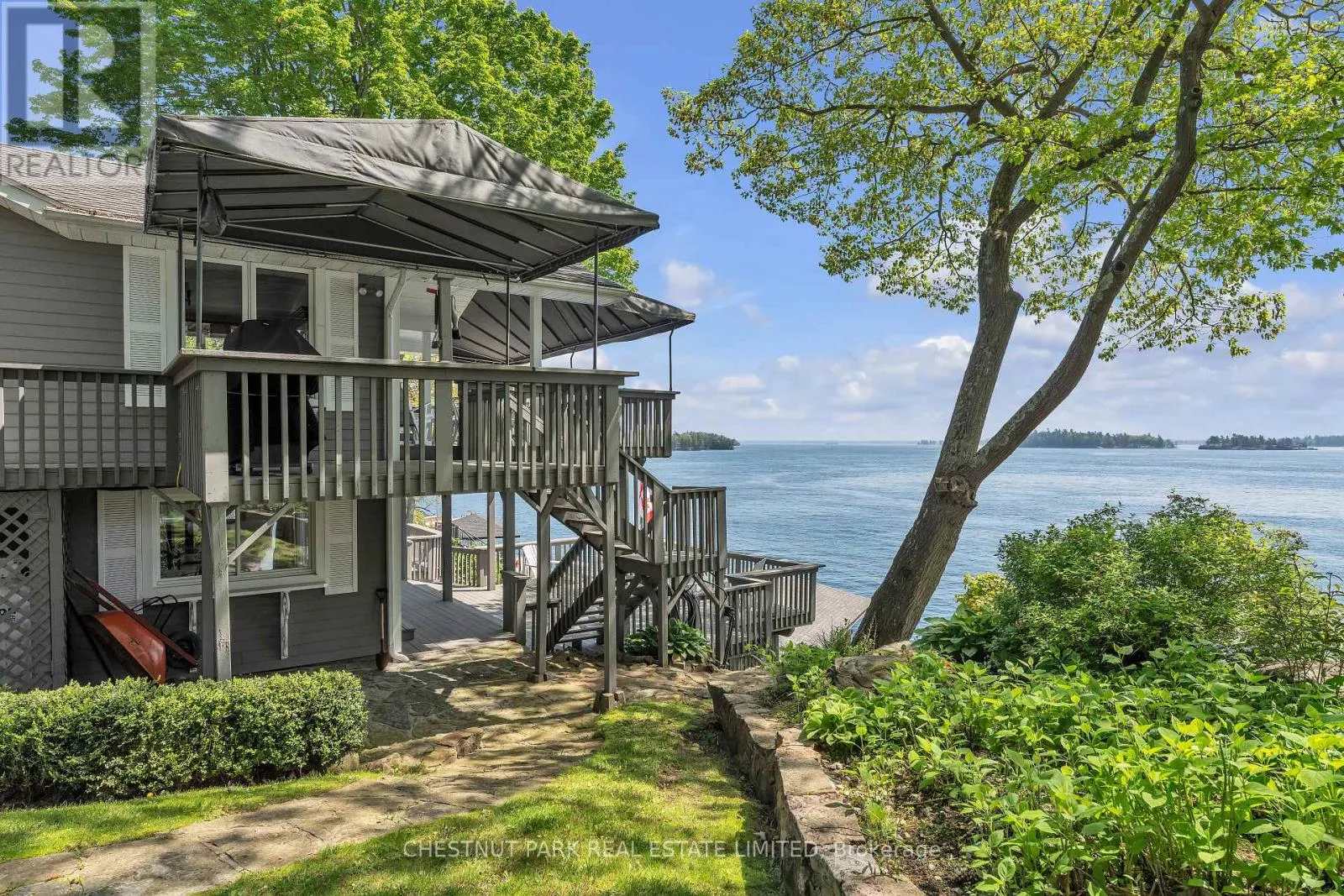 Cross Streets: 1000 Islands Pky/Riverview Dr. ** Directions: Close to Rockport. At the river's edge, this home offers a rare opportunity to own a beautifully maintained waterfront retreat with outstanding views of the Thousand Islands. This impeccably presented home features open-concept principal rooms that seamlessly flow toward the water, with expansive windows and a walkout to a fabulous entertaining deck, the perfect spot for relaxing or hosting. Inside, you'll find 2+1 bedrooms and 3.5 bathrooms, including a luxurious primary suite with a walk-in closet, fireplace, and it's own private deck access. A fabulous guest suite on the lower level includes a walkout to a secluded deck with a hot tub, offering guests both privacy and comfort. Ideal for boating and swimming enthusiasts, the property boasts deep water access, an impressive concrete boatport with boat lift, and excellent swimming off the dock. The professionally landscaped grounds are filled with stunning hydrangea beds. Located just 30 minutes from Kingston and Brockville, this exceptional waterfront home combines privacy, comfort, and convenience a perfect escape or year-round residence on the St. Lawrence. (id:27476)