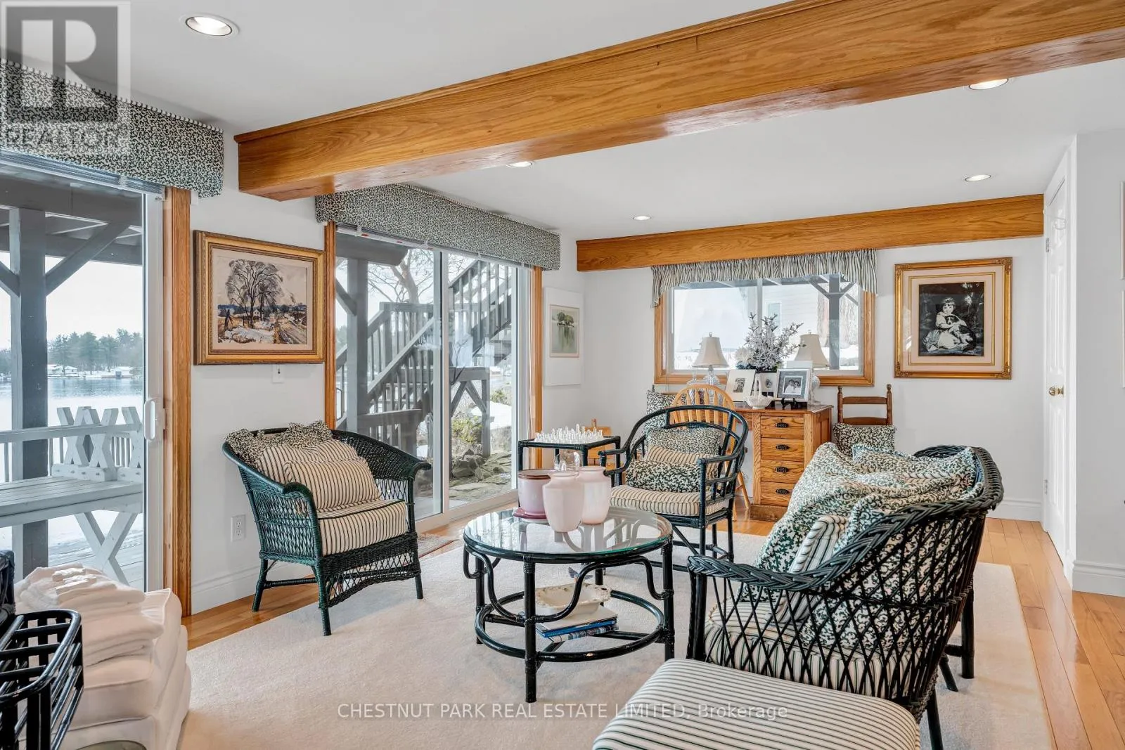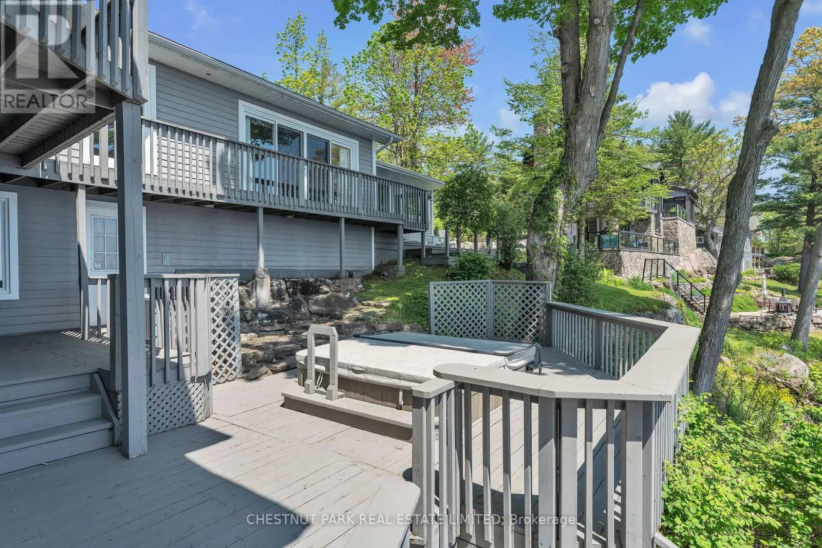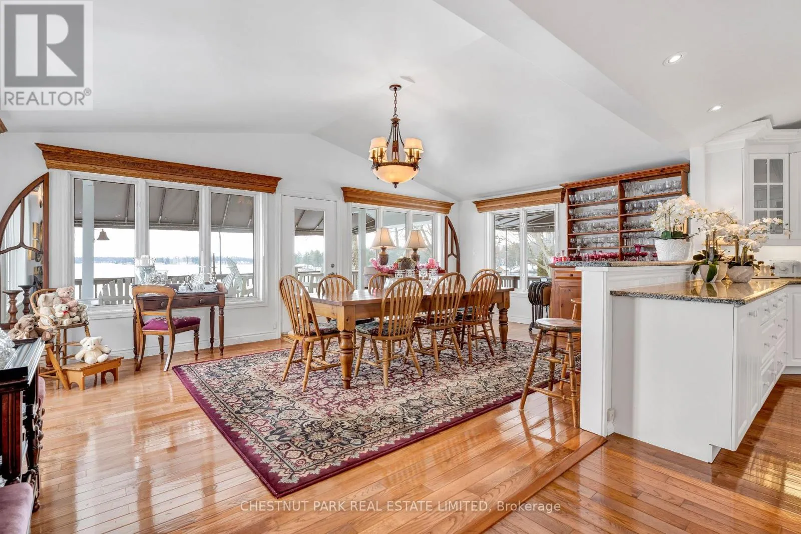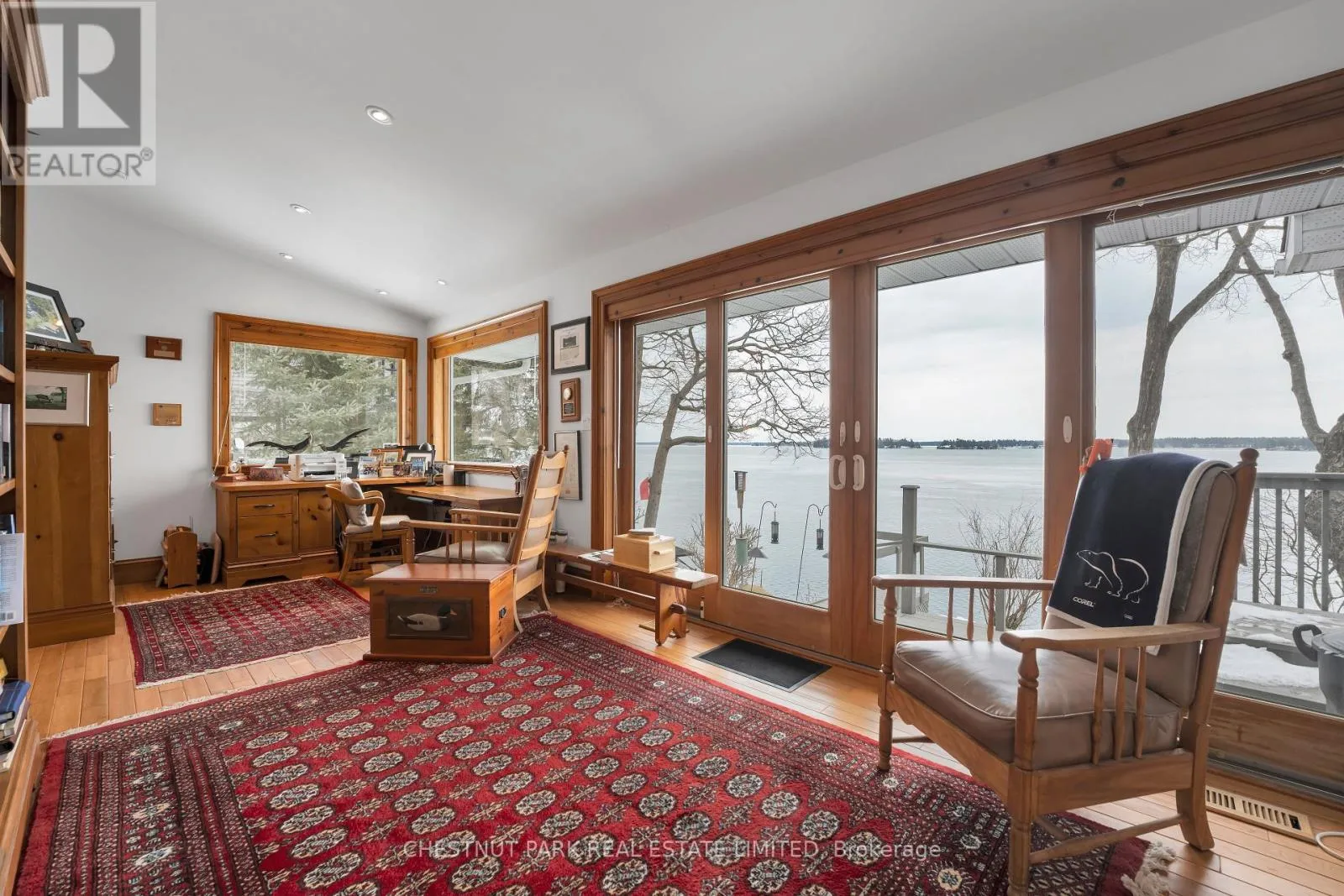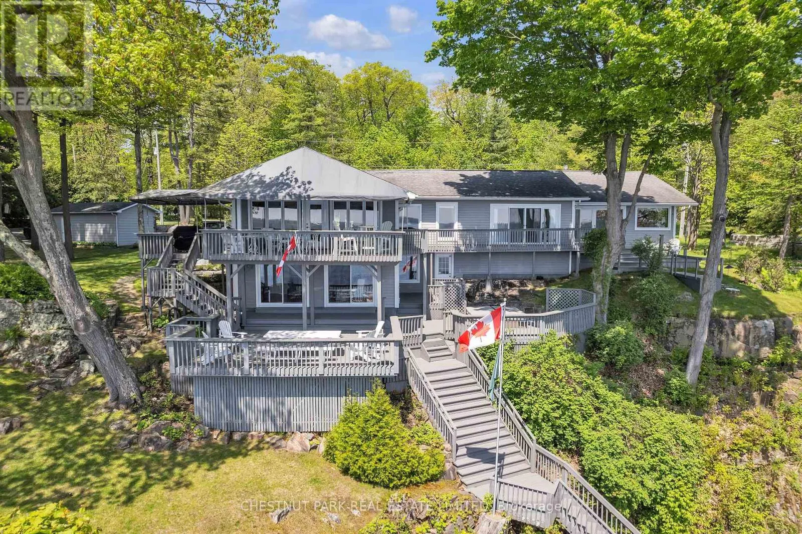 Cross Streets: 1000 Islands Pky/Riverview Dr. ** Directions: Close to Rockport. At the river's edge, this home offers a rare opportunity to own a beautifully maintained waterfront retreat with outstanding views of the Thousand Islands. This impeccably presented home features open-concept principal rooms that seamlessly flow toward the water, with expansive windows and a walkout to a fabulous entertaining deck, the perfect spot for relaxing or hosting. Inside, you'll find 2+1 bedrooms and 3.5 bathrooms, including a luxurious primary suite with a walk-in closet, fireplace, and it's own private deck access. A fabulous guest suite on the lower level includes a walkout to a secluded deck with a hot tub, offering guests both privacy and comfort. Ideal for boating and swimming enthusiasts, the property boasts deep water access, an impressive concrete boatport with boat lift, and excellent swimming off the dock. The professionally landscaped grounds are filled with stunning hydrangea beds. Located just 30 minutes from Kingston and Brockville, this exceptional waterfront home combines privacy, comfort, and convenience a perfect escape or year-round residence on the St. Lawrence. (id:27476)