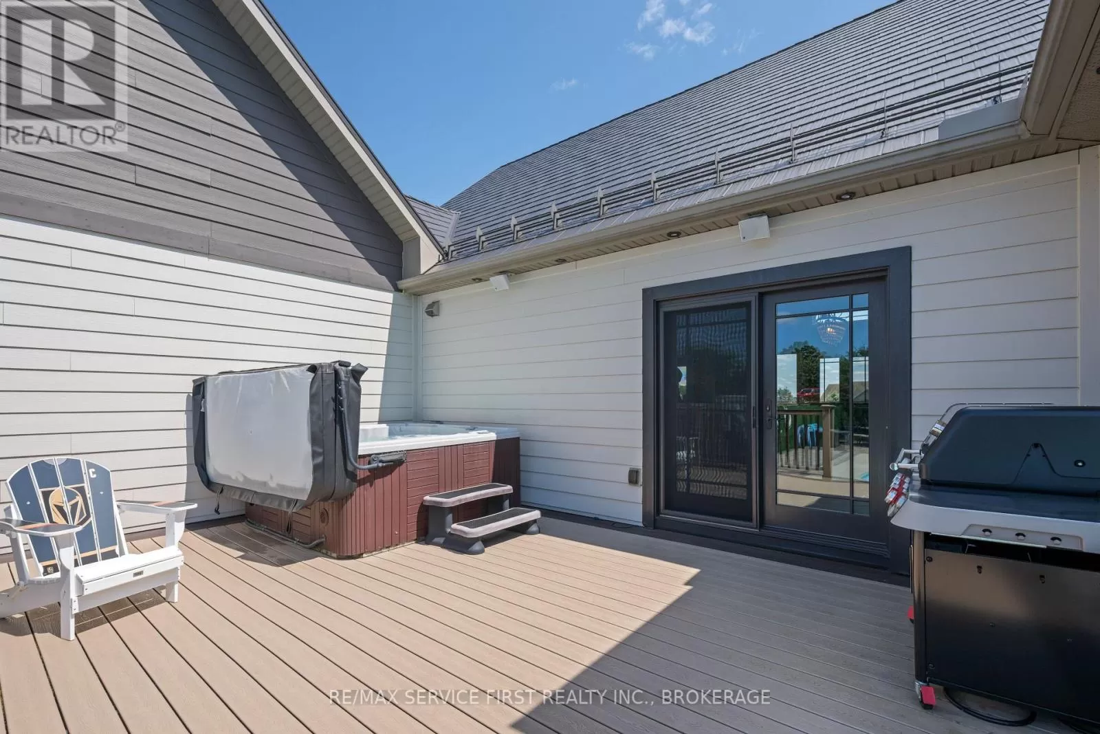Cross Streets: Island View Drive and Binnacle View Drive. ** Directions: Highway 2 to Island View Drive to Binnacle View Drive. Welcome to the Bay of St. Lawrence, a luxury waterfront community nestled between the City of Kingston and Gananoque. One of a kind subdivision that boasts beautiful views of the St. Lawrence River, including a private community dock with 28-foot boat slips offering effortless access to waterfront lifestyle and the majestic Thousand Islands. This stunning executive bungalow offers over 4000 sqft of finished living space, with every attention to detail. The open concept living space offers a great room with lots of natural light, hardwood floors, gas fireplace, vaulted ceilings and a private deck to watch the sun rise with beautiful views of the river. Complete with full dining area and a kitchen that has been thoughtfully designed with an island for entertaining and Viking range for the chef. The primary suite features views of the river, en-suite with glass shower, soaker tub and walk-in closet. The fully finished lower level offers the extra space for the family or guests. The impressive backyard oasis is the perfect place to relax and enjoy your downtime. The composite deck with private hot tub leads to the tastefully landscaped 20X40 inground saltwater pool and pool house with 2-piece bath and covered sitting area. Nothing left to do as this home includes a metal roof, extensive landscaping, Generac system and paved driveway with room for multiple cars. Nearby amenities include walking trails, golf courses, Bateau Channel Park, neighbouring horse farms, shopping and restaurants. (id:27476)