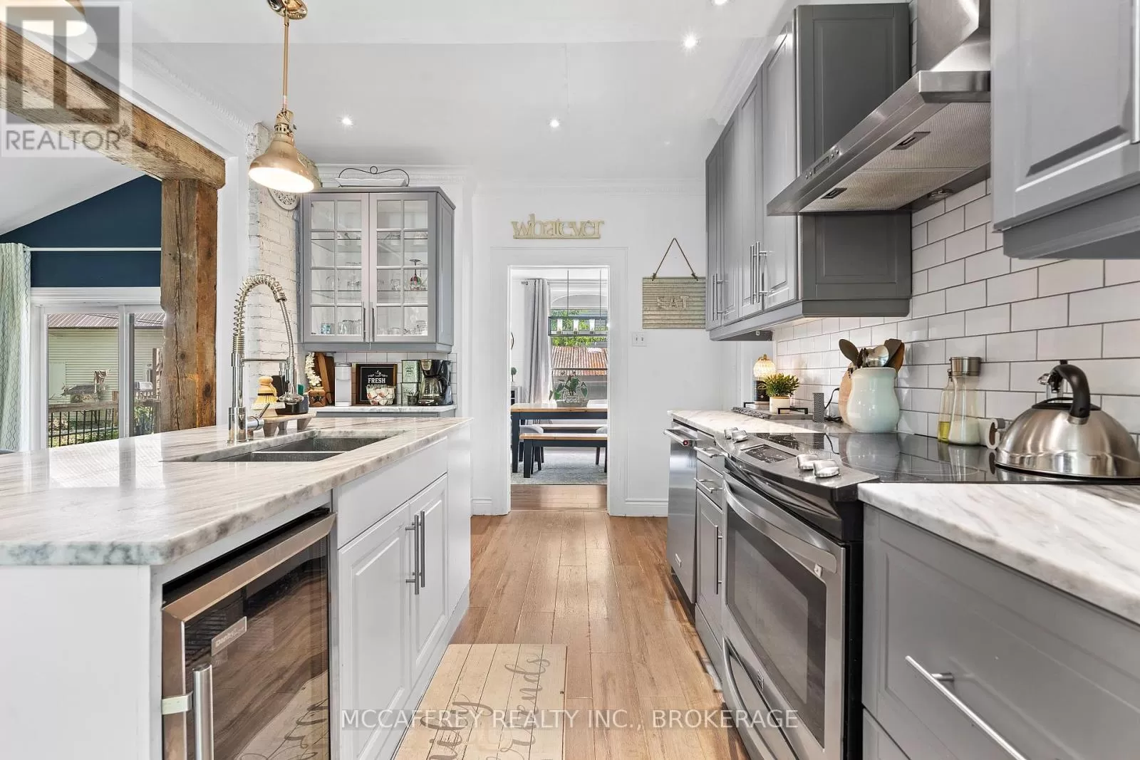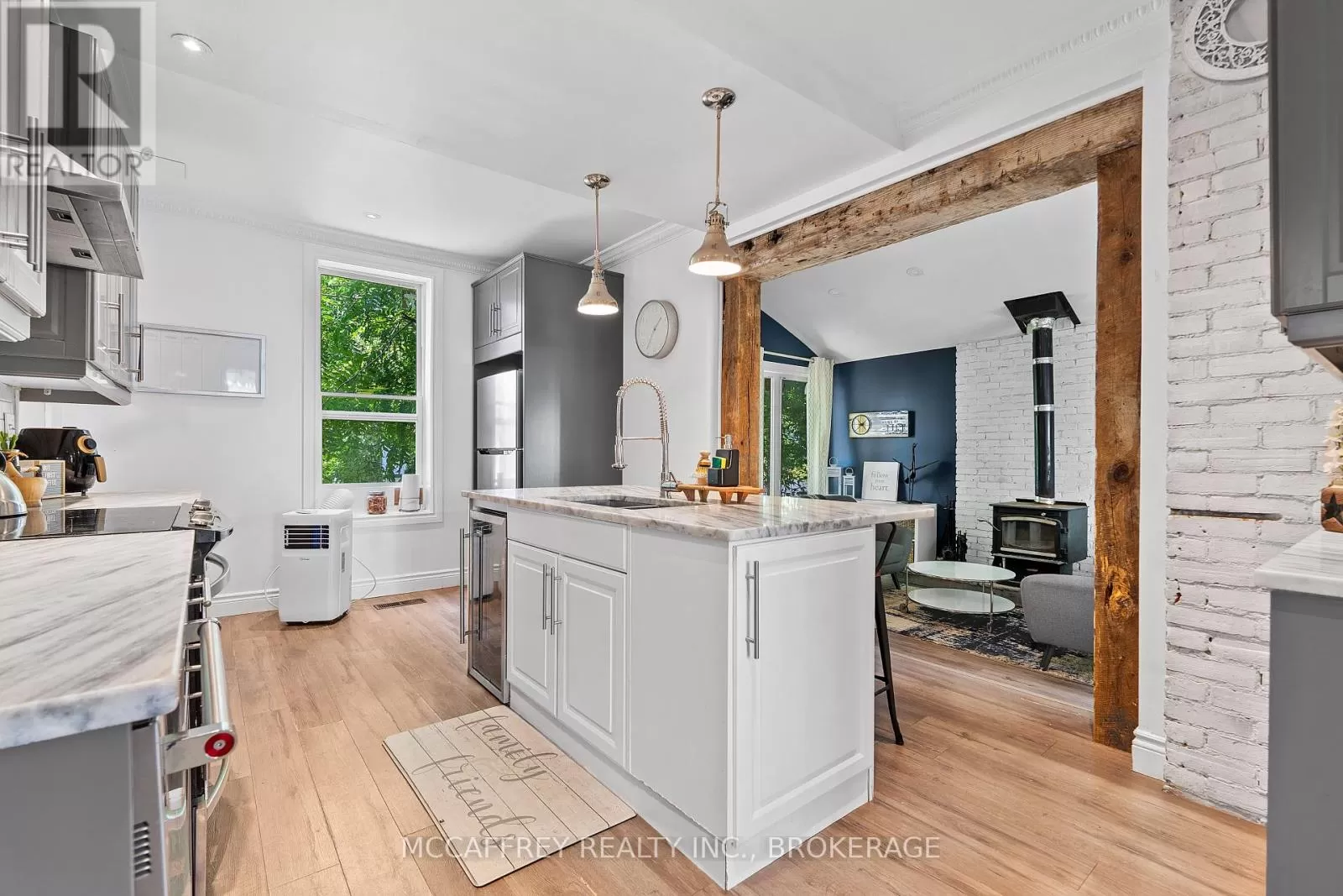 Cross Streets: Main st and Adeaide. ** Directions: Highway 15 to Main Street right on Adelaide. This beautifully updated 4-bedroom home in the heart of Seeleys Bay where small-town charm meets modern comfort. Set on a quiet street just moments from the Rideau Canal, this move-in-ready property delivers bright, functional living spaces, stylish finishes, and a private, tree-lined backyard made for everyday enjoyment.Step inside to a sun-filled living room with generous windows and fresh, contemporary flooring that flows through the main level. The renovated, eat-in kitchen is the hub of the home crisp cabinetry, ample prep space, and stainless-steel appliances. Three comfortable bedrooms and an updated bath provide flexibility for family, guests, and work-from-home needs. The show stopper is the private third-floor primary retreatset on its own level for exceptional peace and quiet. Spacious and serene, it offers room for a king bed and abundant storage, creating a true end-of-day escape. Outside the detached garage adds serious value ideal as a workshop, gear storage, or secure parking for your boat and toys. Lifestyle is the star here: stroll to village amenities, the public boat launch, and the marina; kayak at sunrise, fish at dusk, and savour a community known for festivals, farmers markets, and year-round outdoor fun. Commuting is easy with quick access to Hwy 15 Kingston and Gananoque are a short drive, and Ottawa is within weekend reach. The UNESCO-designated Rideau Canal network is your extended backyard. Thoughtfully refreshed with updated flooring, lighting, paint, trim, and a modern kitchen this home blends character and comfort in a location thats hard to beat. (id:27476)