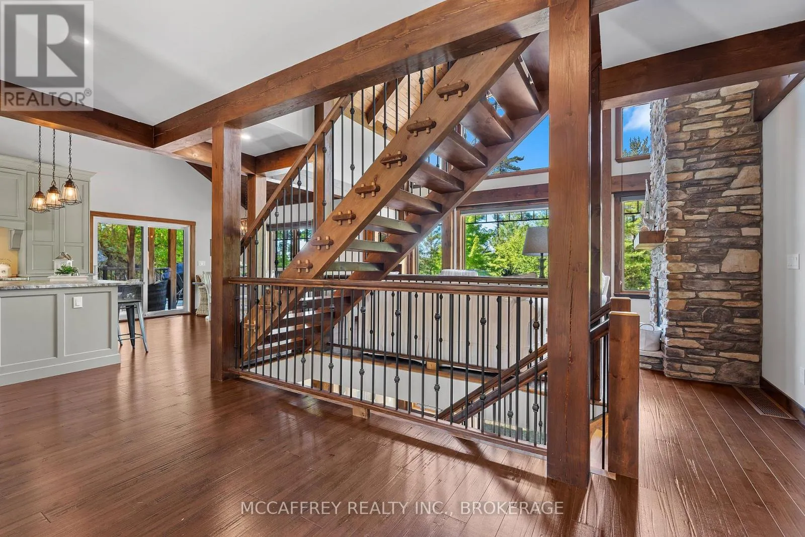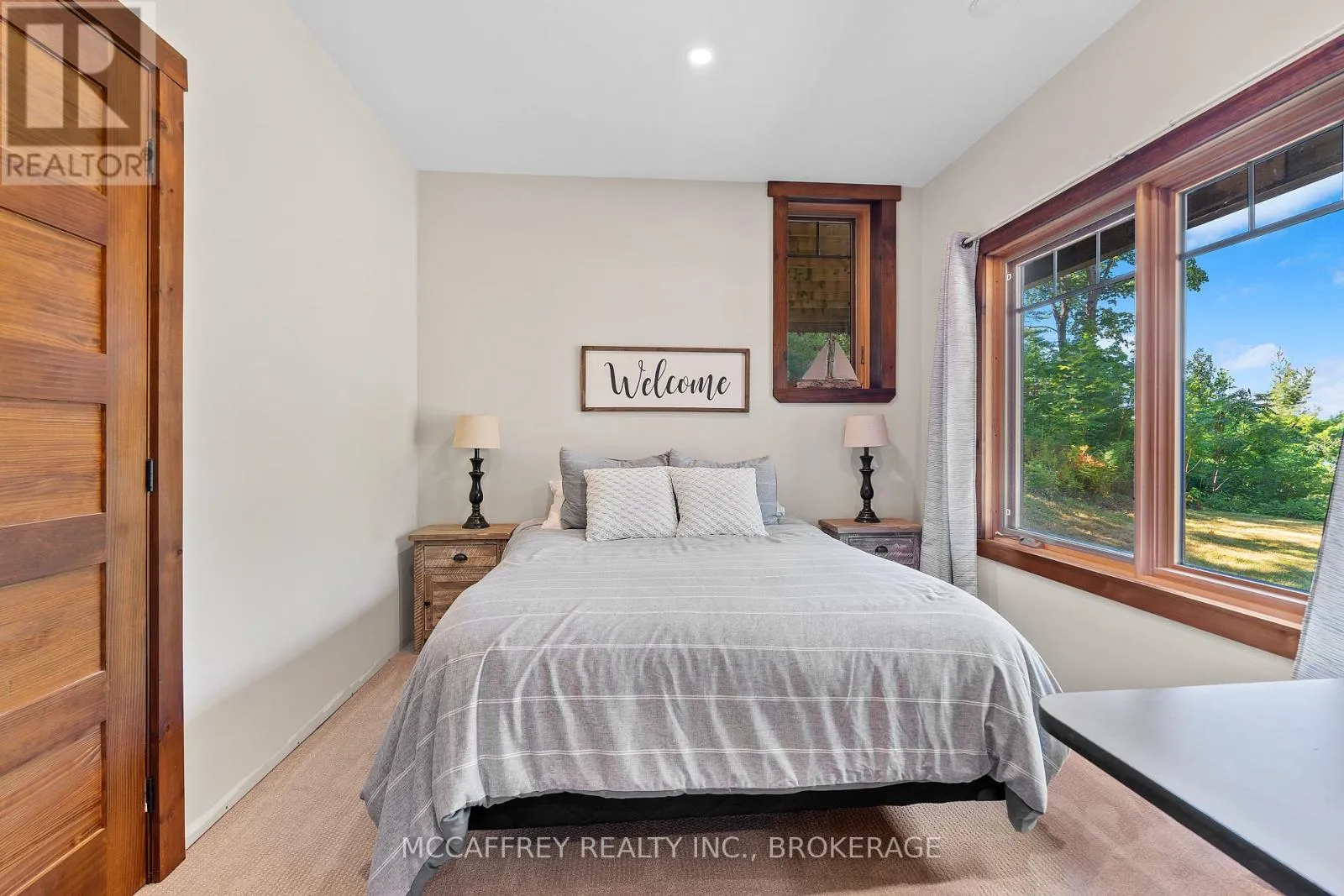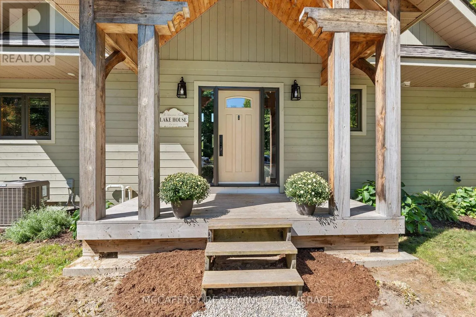 Cross Streets: Longs Ln and Deans Ln. ** Directions: Highway 15 to Main Street right on Deans Ln, right on Longs Ln. Welcome to this gorgeous timberframe waterfront retreat in Seeleys Bay, custom built in 2017. Tucked into a peaceful, 3+ acre country setting located directly on the Rideau Canal, this two storey Discovery Dream Home blends classic character with elevated finishes, beginning with soaring tongue and groove cathedral ceilings that crown the light filled main living area. Warm natural wood, expansive windows, and an airy, open concept create an inviting backdrop for everyday life and effortless entertaining. At the heart of the home is a magazine worthy kitchen by Hickory Lane Kitchen. Custom cabinetry provides exceptional storage and organization, while leathered granite countertops bring texture, durability, and understated luxury. A generous prep and serving area invites family and friends to gather, and the seamless flow to the dining and living spaces keeps the conversation going from breakfast to late night board games. Thoughtful design continues throughout with flexible main floor spaces that adapt to your lifestyle ideal for a home office, playroom, or quiet guest room. Upstairs, the Cape Cod charm continues with dormer accents and a lofted feel, offering a bedroom and a bright landing that can double as a reading nook or creative studio. Every detail reflects quality craftsmanship and a focus on comfort, from the solid finishes to the practical storage solutions you'll appreciate daily. Outdoors, enjoy tranquil views and room to relax, garden, fish, swim and entertain whether you're hosting summer barbecues or unwinding with a coffee on a crisp morning. Boat through the channel into Whitefish, minutes from marinas, parks and recreation on the Rideau. Convenient, easy commute to Kingston and Gananoque. Move In ready and impeccably maintained, this home delivers the best of waterfront country living: character without compromise in a setting that feels like home the moment you arrive. Discover your next chapter in a home that's as functional as it is beautiful. (id:27476)