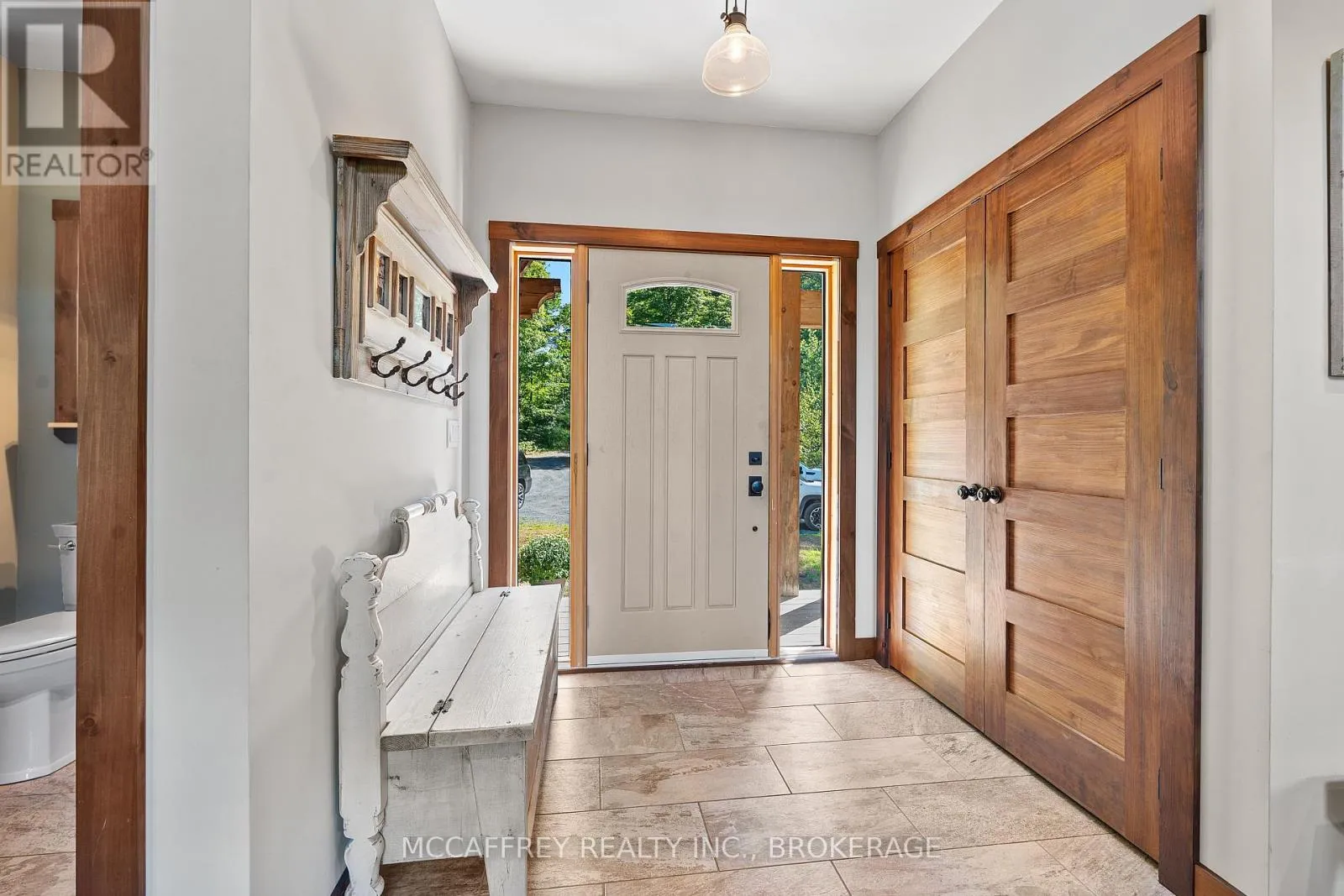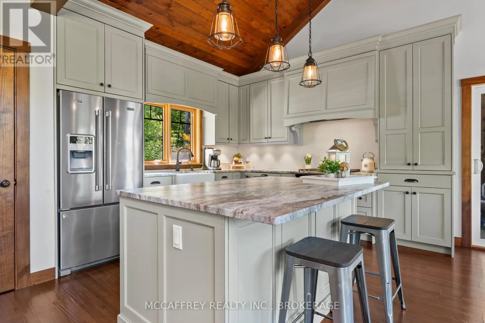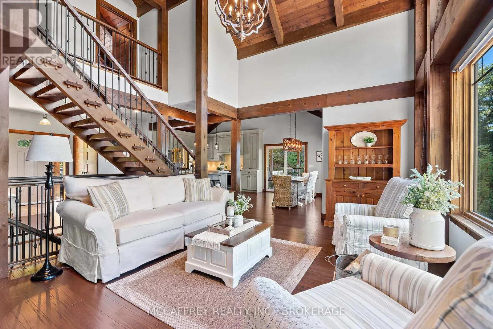 Cross Streets: Longs Ln and Deans Ln. ** Directions: Highway 15 to Main Street right on Deans Ln, right on Longs Ln. Welcome to this gorgeous timberframe waterfront retreat in Seeleys Bay, custom built in 2017. Tucked into a peaceful, 3+ acre country setting located directly on the Rideau Canal, this two storey Discovery Dream Home blends classic character with elevated finishes, beginning with soaring tongue and groove cathedral ceilings that crown the light filled main living area. Warm natural wood, expansive windows, and an airy, open concept create an inviting backdrop for everyday life and effortless entertaining. At the heart of the home is a magazine worthy kitchen by Hickory Lane Kitchen. Custom cabinetry provides exceptional storage and organization, while leathered granite countertops bring texture, durability, and understated luxury. A generous prep and serving area invites family and friends to gather, and the seamless flow to the dining and living spaces keeps the conversation going from breakfast to late night board games. Thoughtful design continues throughout with flexible main floor spaces that adapt to your lifestyle ideal for a home office, playroom, or quiet guest room. Upstairs, the Cape Cod charm continues with dormer accents and a lofted feel, offering a bedroom and a bright landing that can double as a reading nook or creative studio. Every detail reflects quality craftsmanship and a focus on comfort, from the solid finishes to the practical storage solutions you'll appreciate daily. Outdoors, enjoy tranquil views and room to relax, garden, fish, swim and entertain whether you're hosting summer barbecues or unwinding with a coffee on a crisp morning. Boat through the channel into Whitefish, minutes from marinas, parks and recreation on the Rideau. Convenient, easy commute to Kingston and Gananoque. Move In ready and impeccably maintained, this home delivers the best of waterfront country living: character without compromise in a setting that feels like home the moment you arrive. Discover your next chapter in a home that's as functional as it is beautiful. (id:27476)