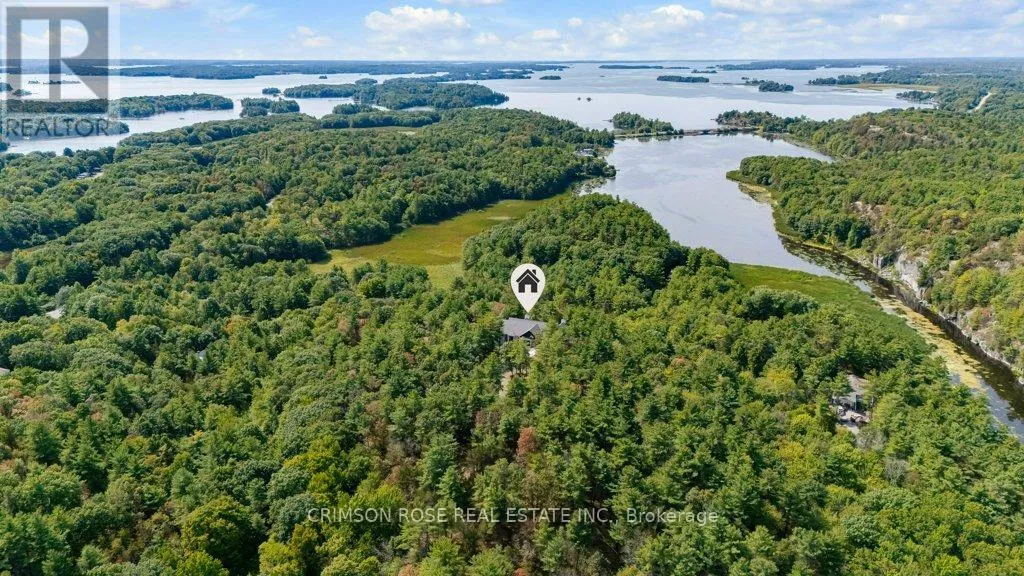 Cross Streets: Thousand Islands Pkwy and Tumbledown. ** Directions: 401 to Thousand Islands Pkwy to Tumbledown. Luxury Hilltop Bungalow with Panoramic Water Views Thousand Islands, Ontario Perched atop a scenic hill in the heart of the Thousand Islands, this custom-built ICF bungalow offers over 5,800 sq ft of refined living space, blending timeless craftsmanship with modern luxury. Designed for comfort and elegance, the home features five private bedroom suites, each with its own ensuite bath, ideal for hosting guests or multi-generational living. The centerpiece of the home is a spacious great room with soaring ceilings and two wood fireplaces, creating a warm and inviting atmosphere year-round. The chefs kitchen is a culinary dream, equipped with premium appliances, a dedicated walk-in pantry, and ample space for entertaining. Enjoy radiant in-floor heating throughout the home, complemented by central air conditioning for year-round comfort. Expansive windows and elevated positioning provide breathtaking views, making every sunrise and sunset a spectacle. Whether you're seeking a luxurious retreat or a full-time residence, this property offers unmatched privacy, sophistication, and access to the natural beauty of the Thousand Islands. (id:27476)