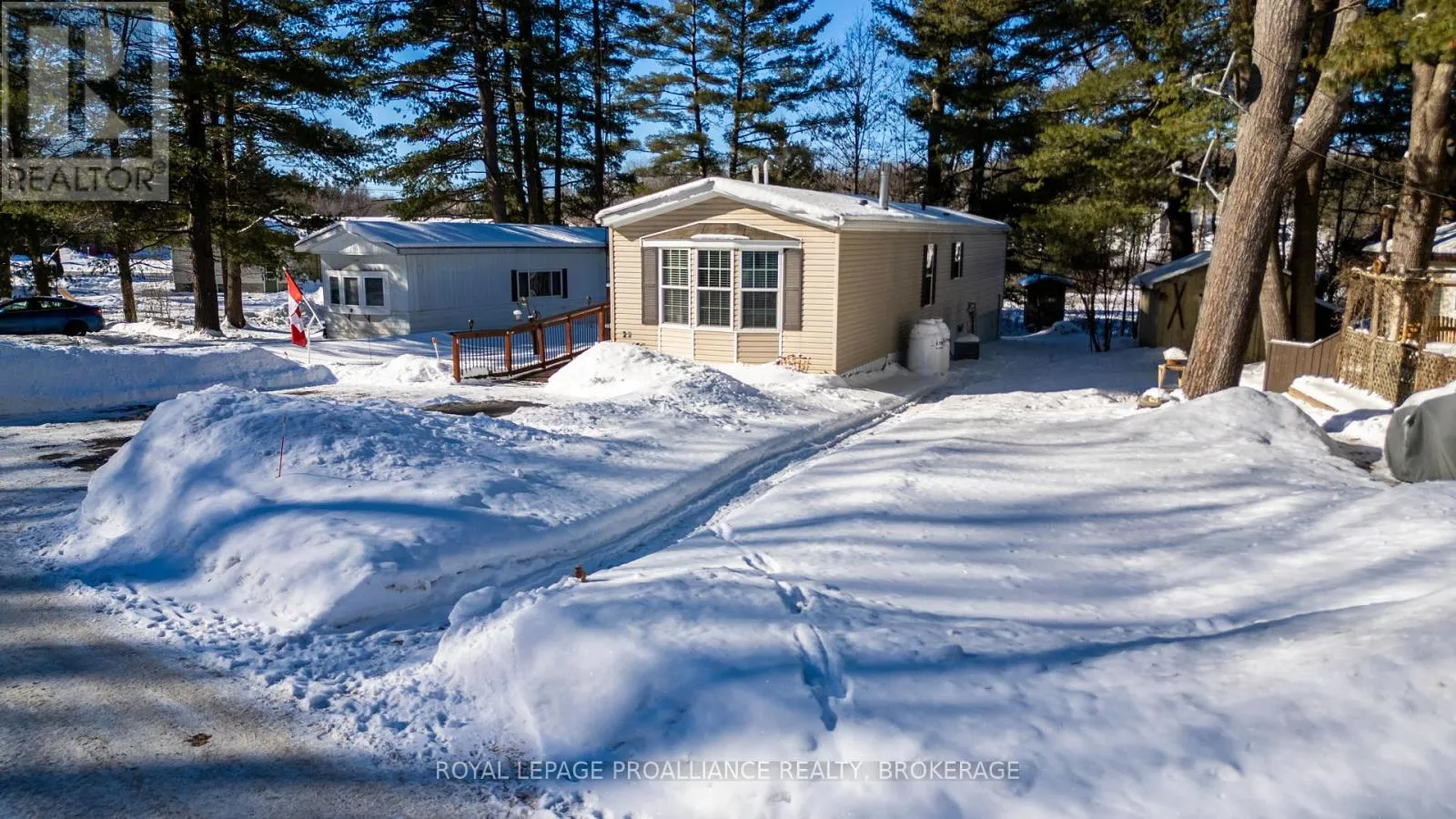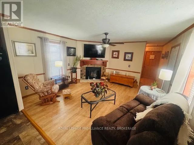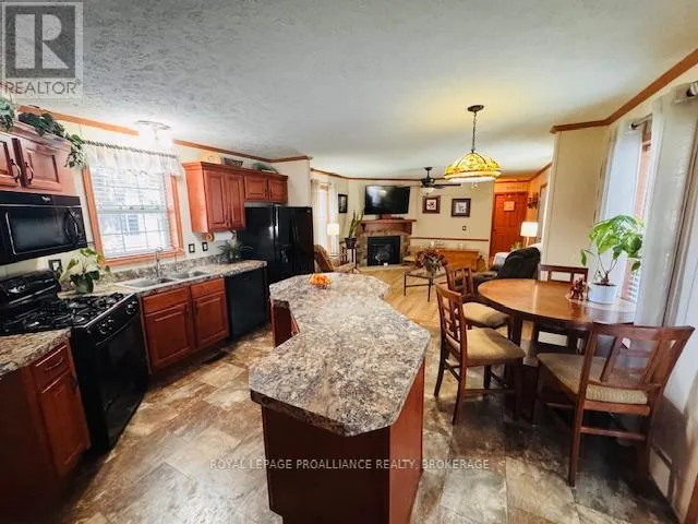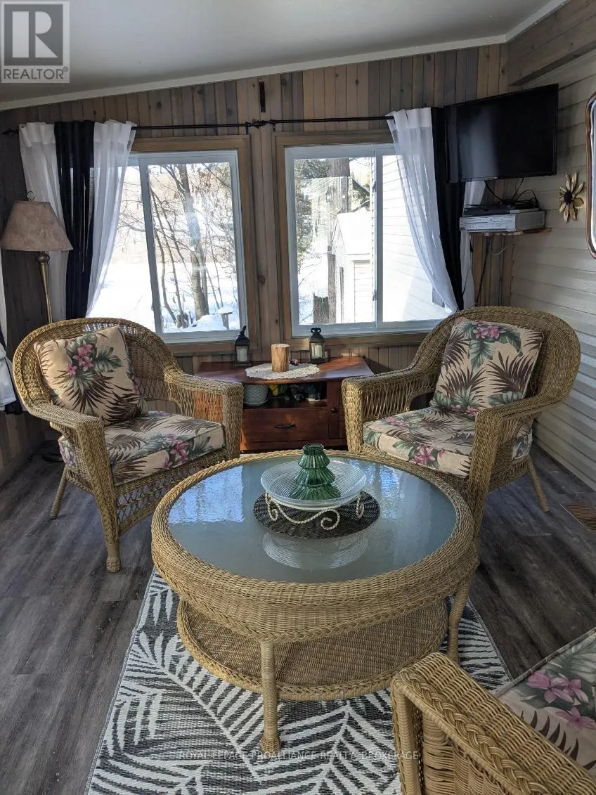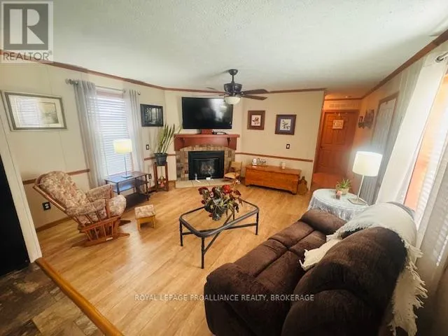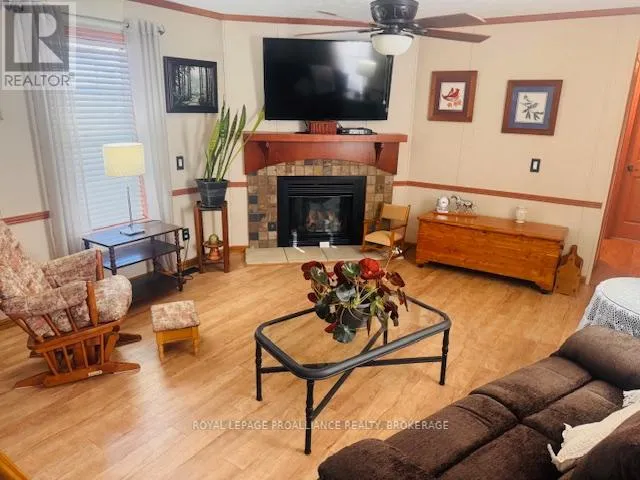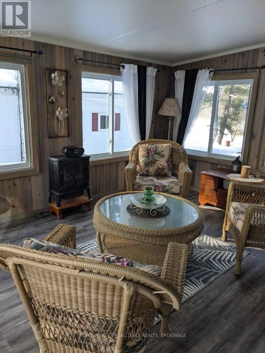 Cross Streets: HIGHWAY #15 & HIGHWAY #32. ** Directions: HIGHWAY #15 NORTH PAST SEELEY'S BAY TO HIGHWAY#32 JUNCTION TURN RIGHT GO TO 3303 HIGHWAY #32. Welcome to easy, comfortable living in desirable Pine Ridge retirement community. This thoughtfully designed mobile home offers an open-concept layout with a spacious kitchen flowing seamlessly into the living room - perfect for everyday living and entertaining. The kitchen features ample cabinetry, room for a dedicated coffee station, gas stove, dishwasher, refrigerator and convenient centre island. The primary bedroom includes a spacious walk-in closet and a private 4-piece ensuite complete with a relaxing soaker tub. A second bedroom offers flexibility as a guest room or home office, complemented by a main 4-piecebath and convenient main-floor laundry. Cozy up by the gas fireplace or enjoy warmer days in the 3season sunroom overlooking the yard. A garden shed provides additional storage for outdoor tools and seasonal items. Ideally located close to Seeley's Bay, with Kingston just 30 minutes away and Gananoque within 15minutes, this home is affordable living at its best! (id:27476)